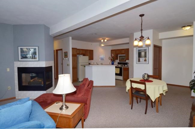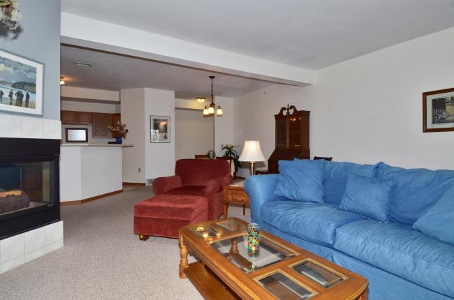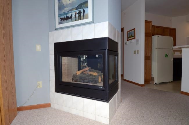 Spacious & bright one level condo. Adorable private entry front porch,new composite decking. 9 foot ceilings,open floor plan & lots of windows. Big living room has 2 sided gas fireplace. Breakfast bar & dining area. Lots of closet space. Laundry w/storage area in unit,additional large storage unit in parking area. Master suite w/large bathroom,double sinks & large walk in closet. Underground heated garage with two parking spaces,next to elevator. Near bus,parks,& shopping. Two small pets or one dog allowed.