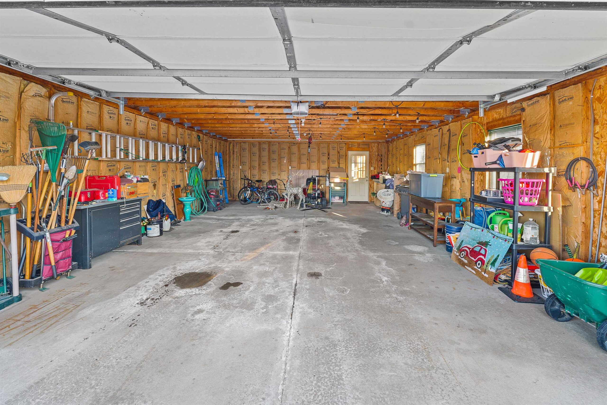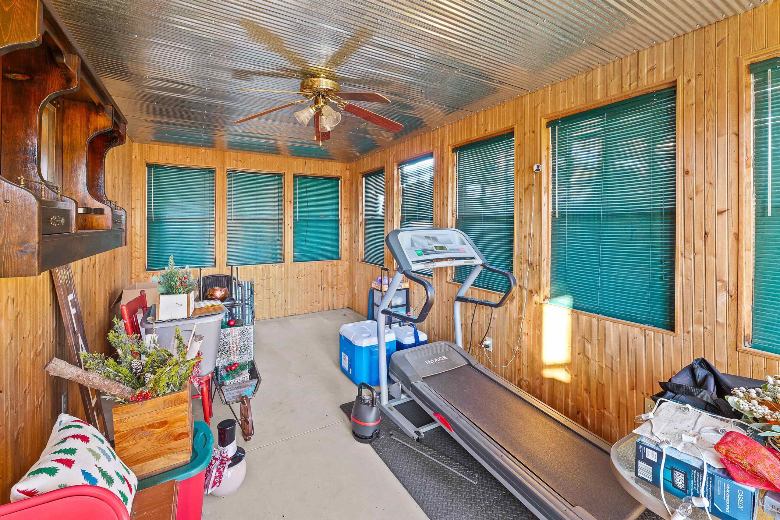 Stove, refrigerator, washer, dryer, gazebo, microwave, mirror w/ shelving in garage room in back.