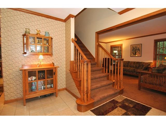 Beautiful 2-story colonial located at the end of a cul-de-sac in Country Wood. Very private mature-wooded lot with fenced backyard and deck. This home has it all: main level office with built-in bookcases, vaulted 4-season sun room, formal dining room, exercise room, crown molding, 6-panel doors, 2 gas fireplaces, finished LL rec/media and craft rooms, and 4 bedrooms upstairs, including master suite w/walk-in-closet and private full bath w/jetted tub and stall shower. A great value!
