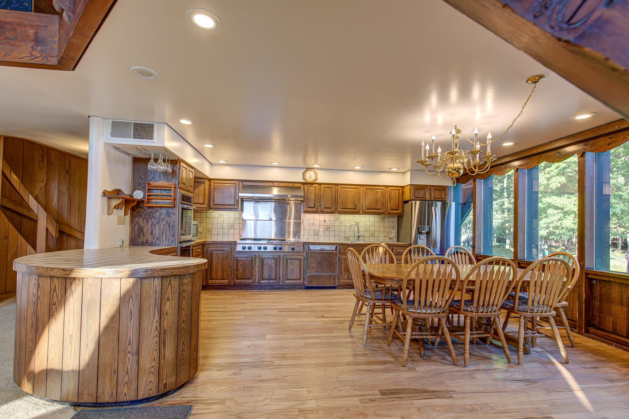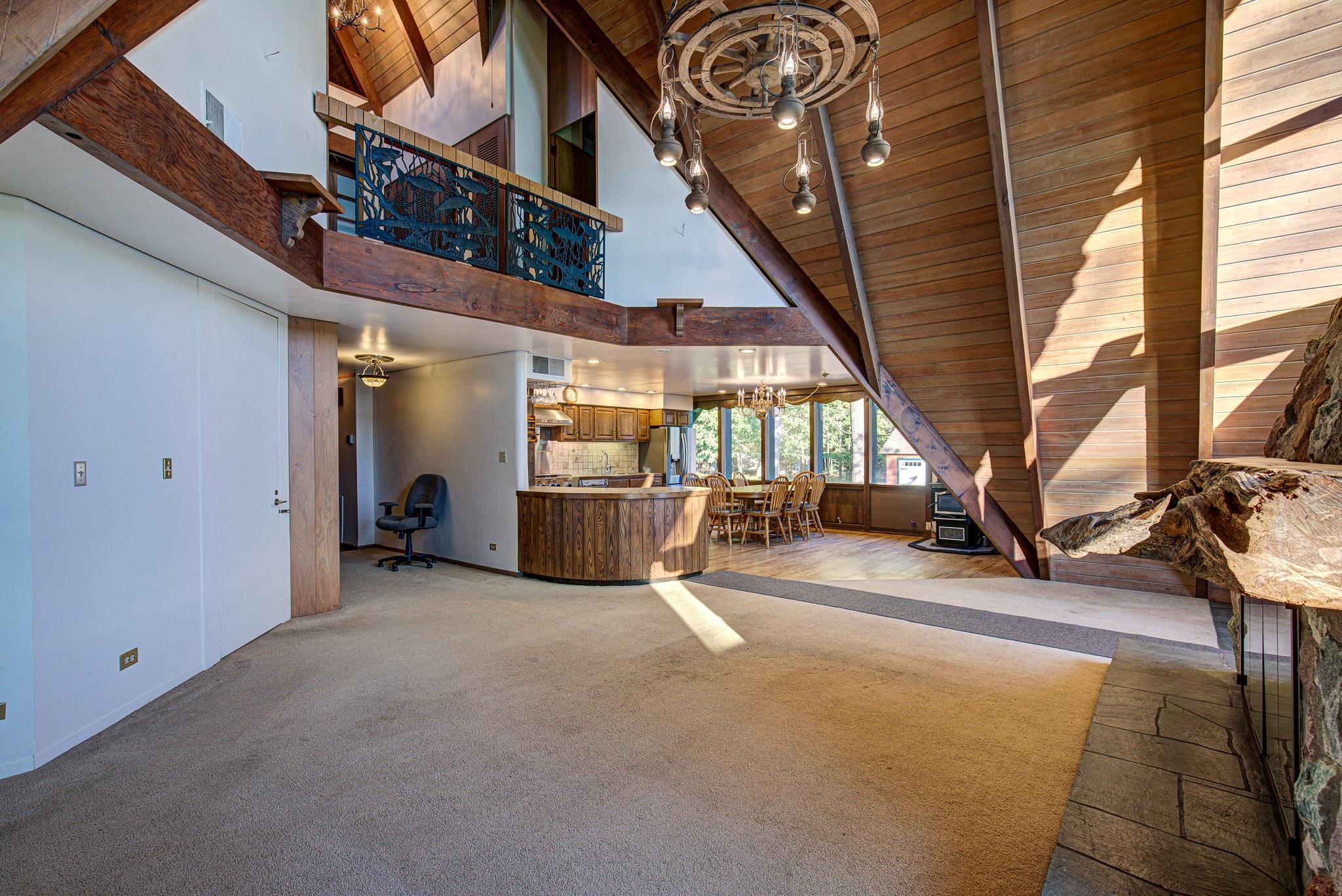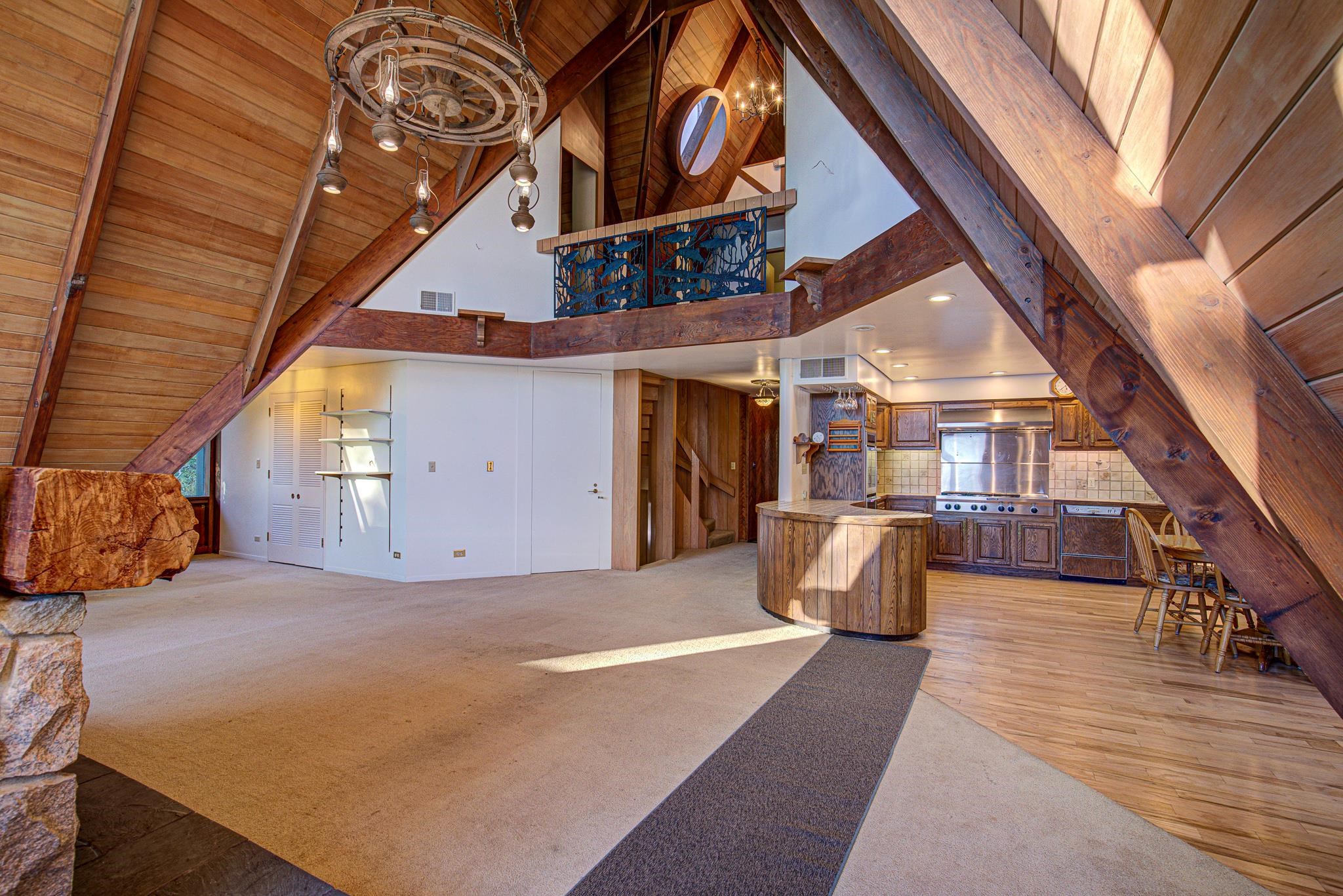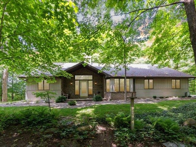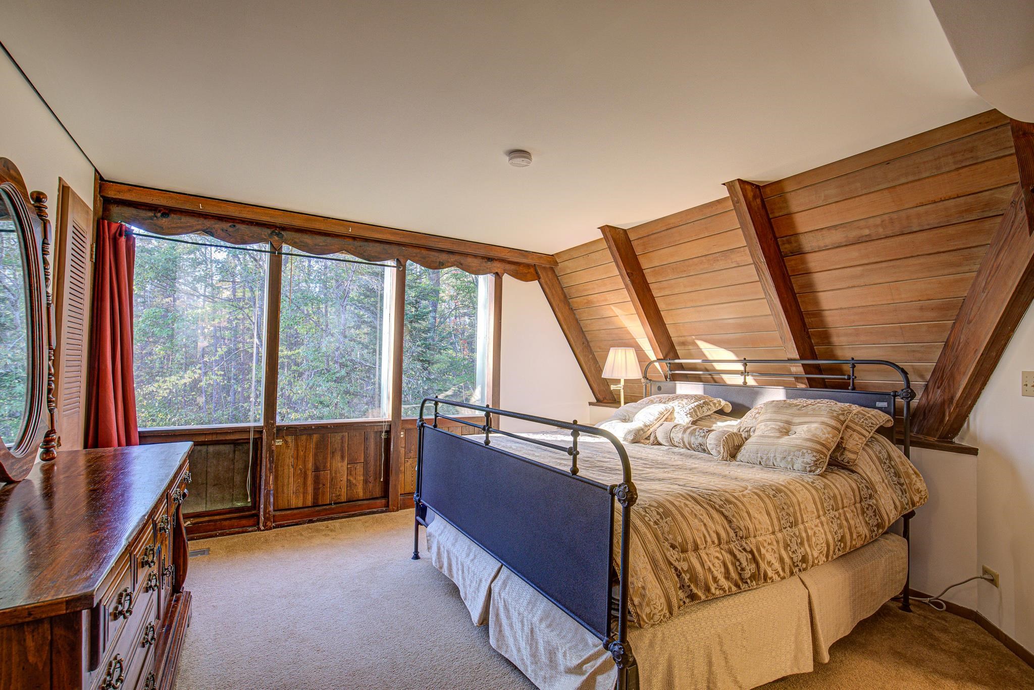 Discover your lakeside paradise with this breathtaking custom-built, double A-frame home on stunning Kildare Lake. This 1-of-a-kind retreat is the perfect blend of luxury and nature. From the eye-catching curved staircases to 2 cozy wood-burning fireplaces, every detail impresses. Relax on the expansive deck with jaw-dropping views or unwind in the private sauna. The main level offers a serene primary suite, a gourmet kitchen, and a half bath. Upstairs, two charming bedrooms and a full bath await. The walkout basement features 2 bedrooms, a hot tub, sauna, and a unique round fireplace, bringing lakeside living to new heights. Just steps from the water, this oasis includes an 8-car garage, private boat landing, and another 5-acre lake lot. Buyer to confirm measurements.