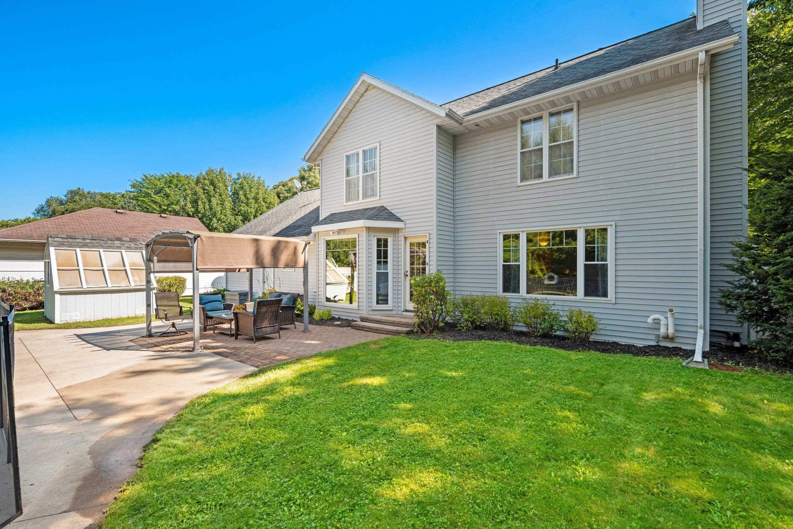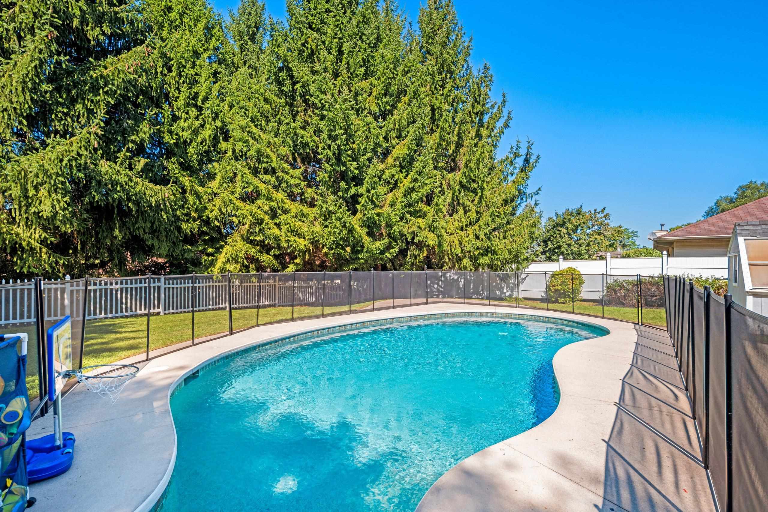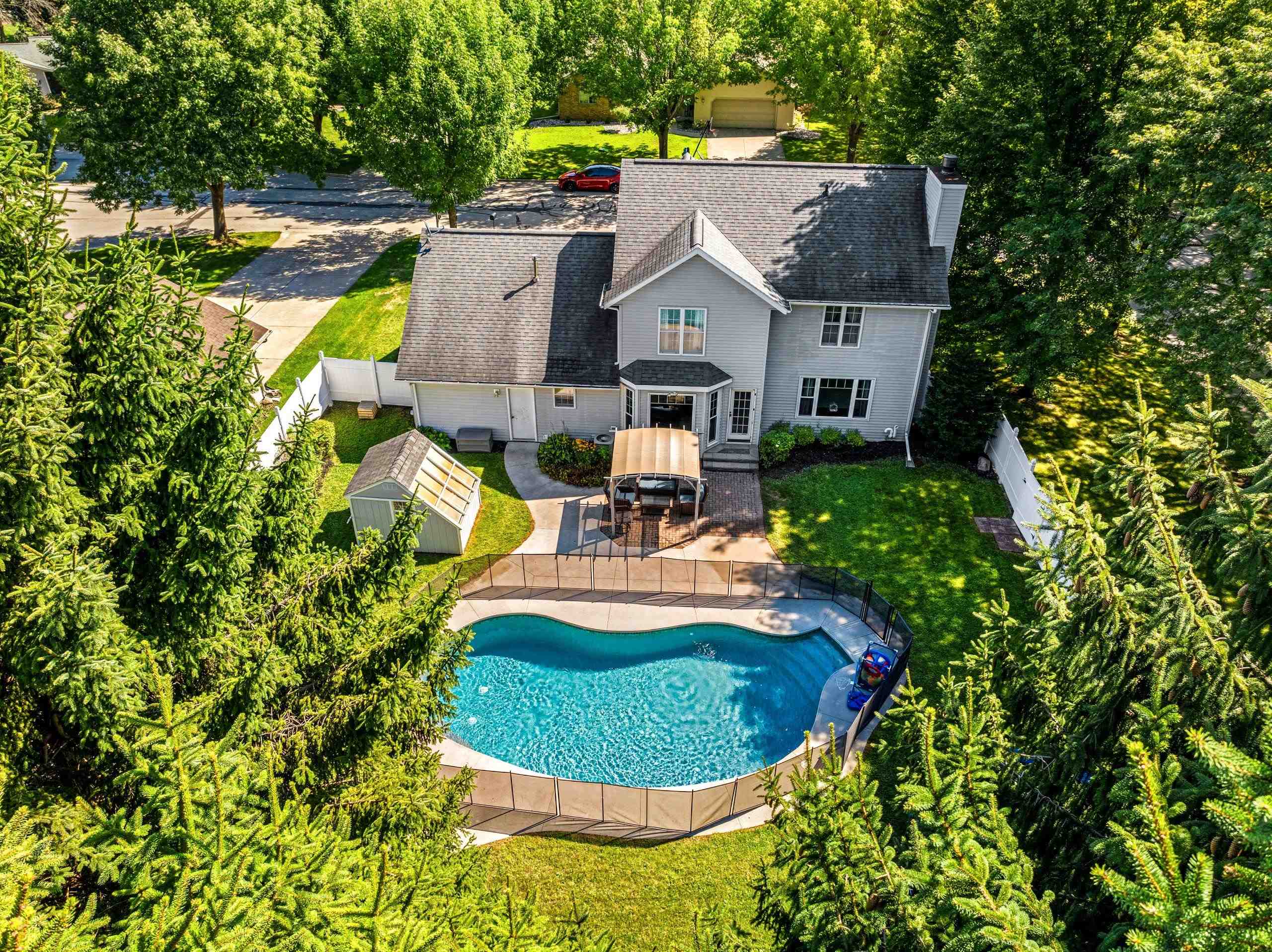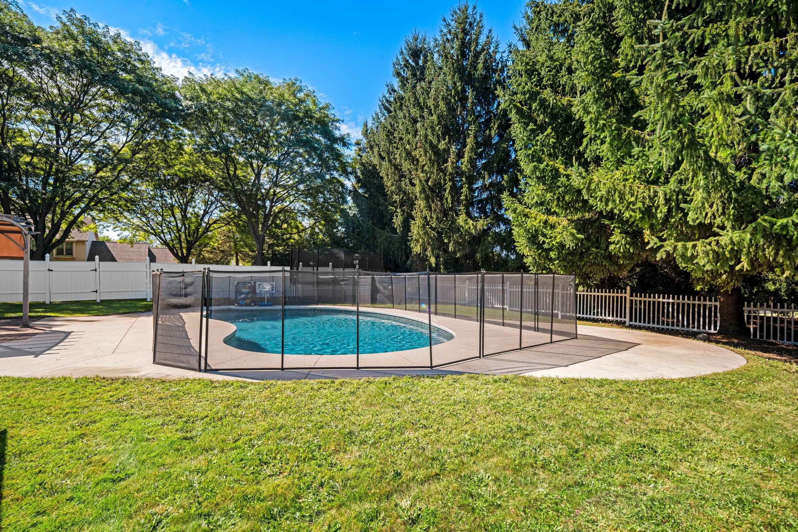 Quiet Green Bay setting. Corner lot on a dead end and cul-de-sac. This 3-bedroom 2 1/2 bath home features the possibility of another bedroom or use as an office. Primary bedroom features an on suite and two walk-in closets. Kitchen has Cherry cabinets, breakfast bar and tile floors. The fenced in yard encompasses an inground pool which has a removeable fence surrounding it. The full basement could be finished if you need even more space and is stubbed for another bathroom. The garage is extra deep on one side for that long truck or use as workspace.