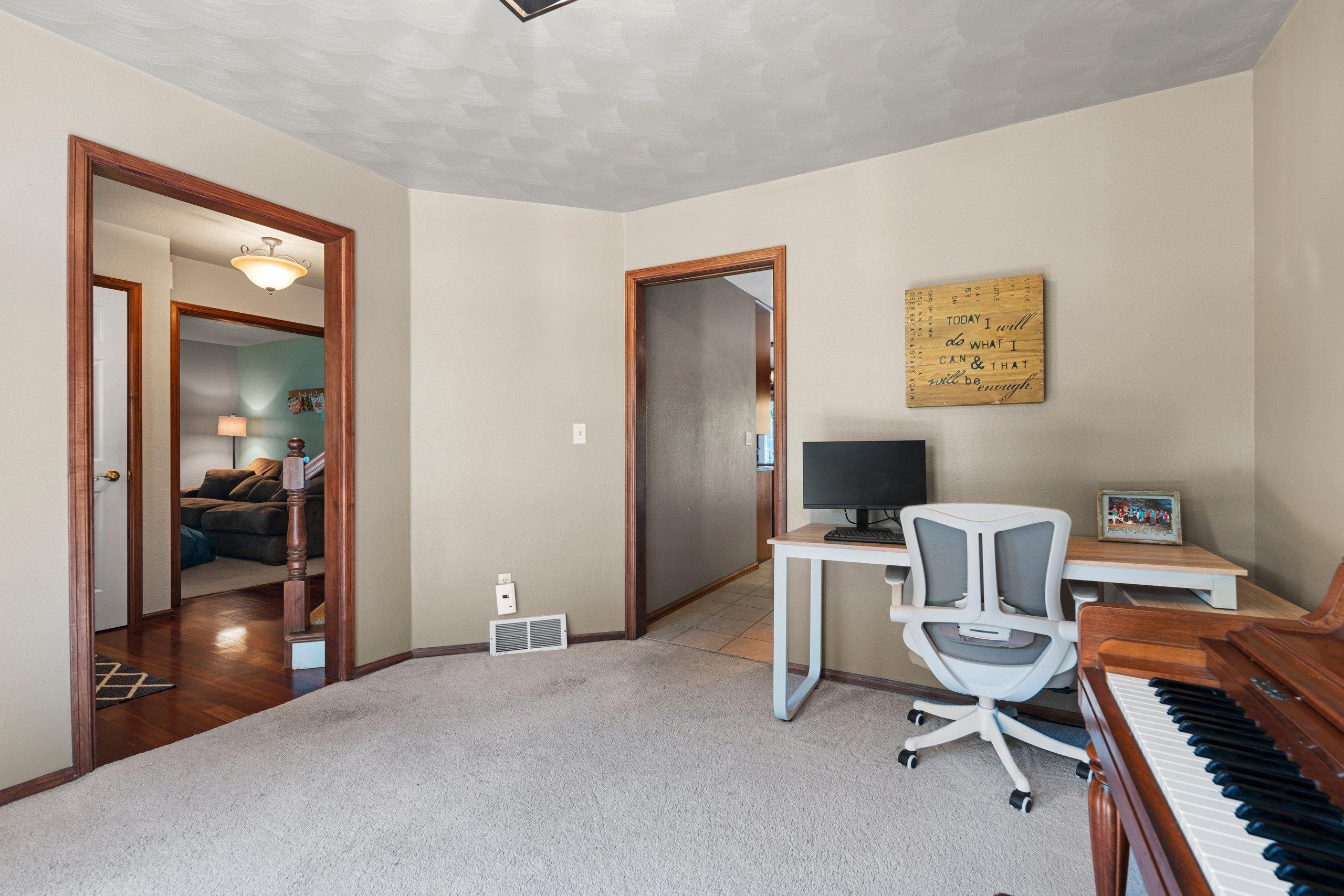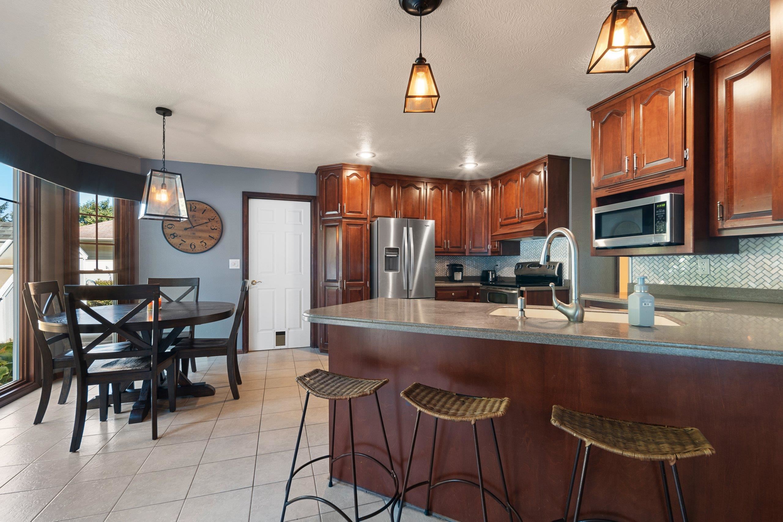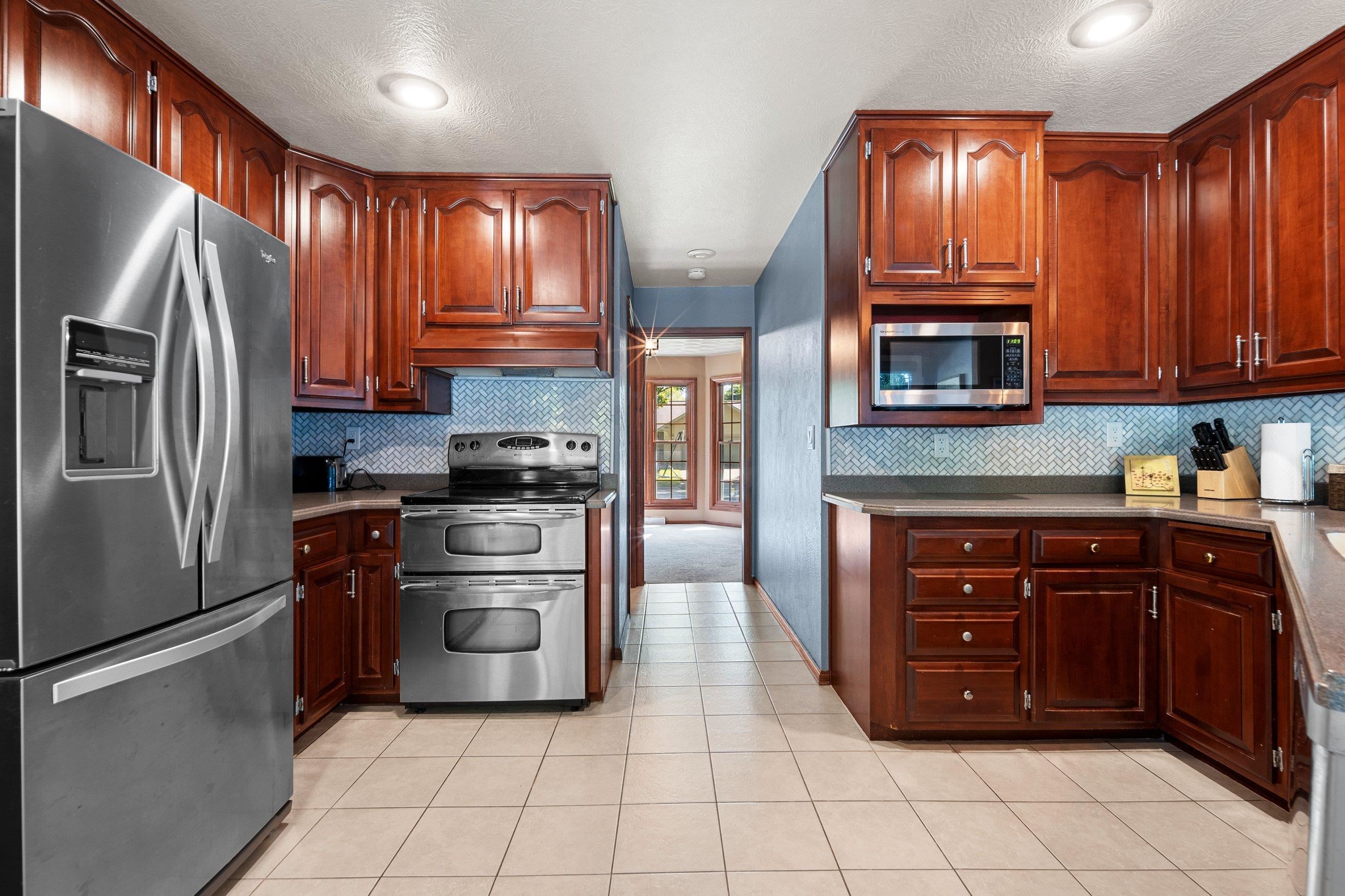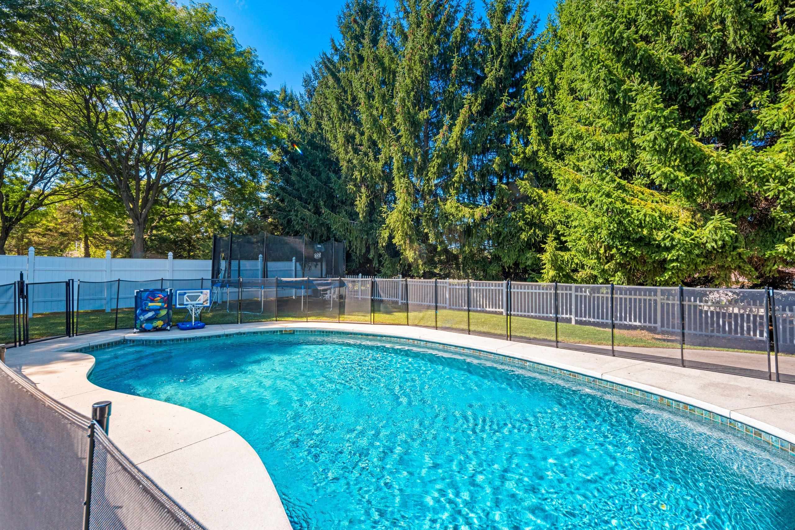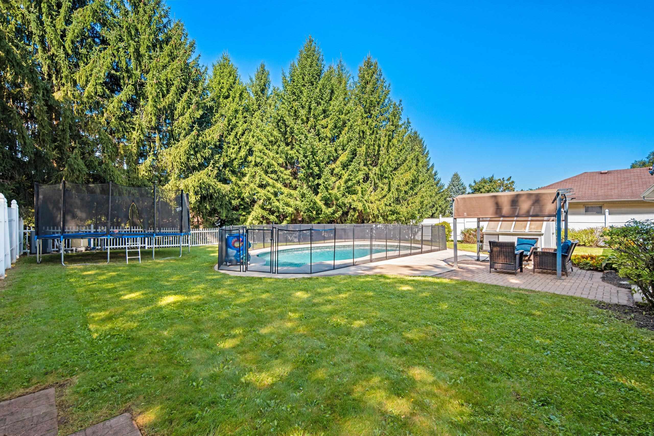 Quiet Green Bay setting. Corner lot on a dead end and cul-de-sac. This 3-bedroom 2 1/2 bath home features the possibility of another bedroom or use as an office. Primary bedroom features an on suite and two walk-in closets. Kitchen has Cherry cabinets, breakfast bar and tile floors. The fenced in yard encompasses an inground pool which has a removeable fence surrounding it. The full basement could be finished if you need even more space and is stubbed for another bathroom. The garage is extra deep on one side for that long truck or use as workspace.