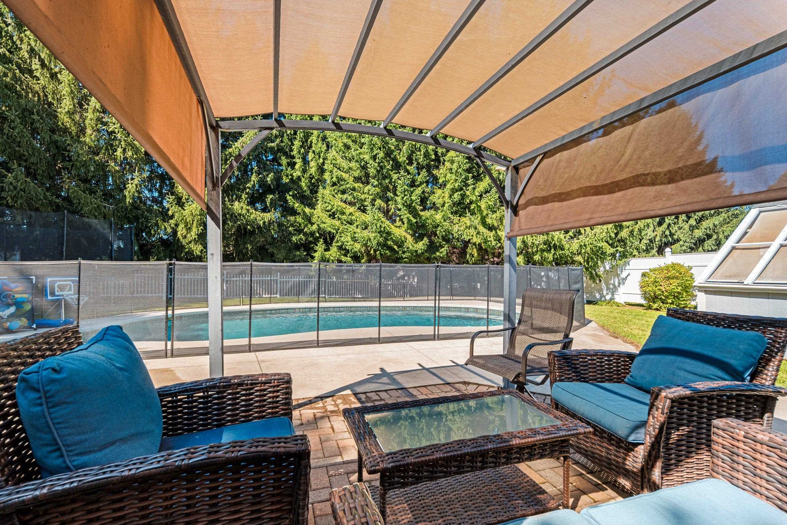 Kitchen refrigerator, stove, dishwasher, microwave, garage refrigerator, pool equipment, pergola,