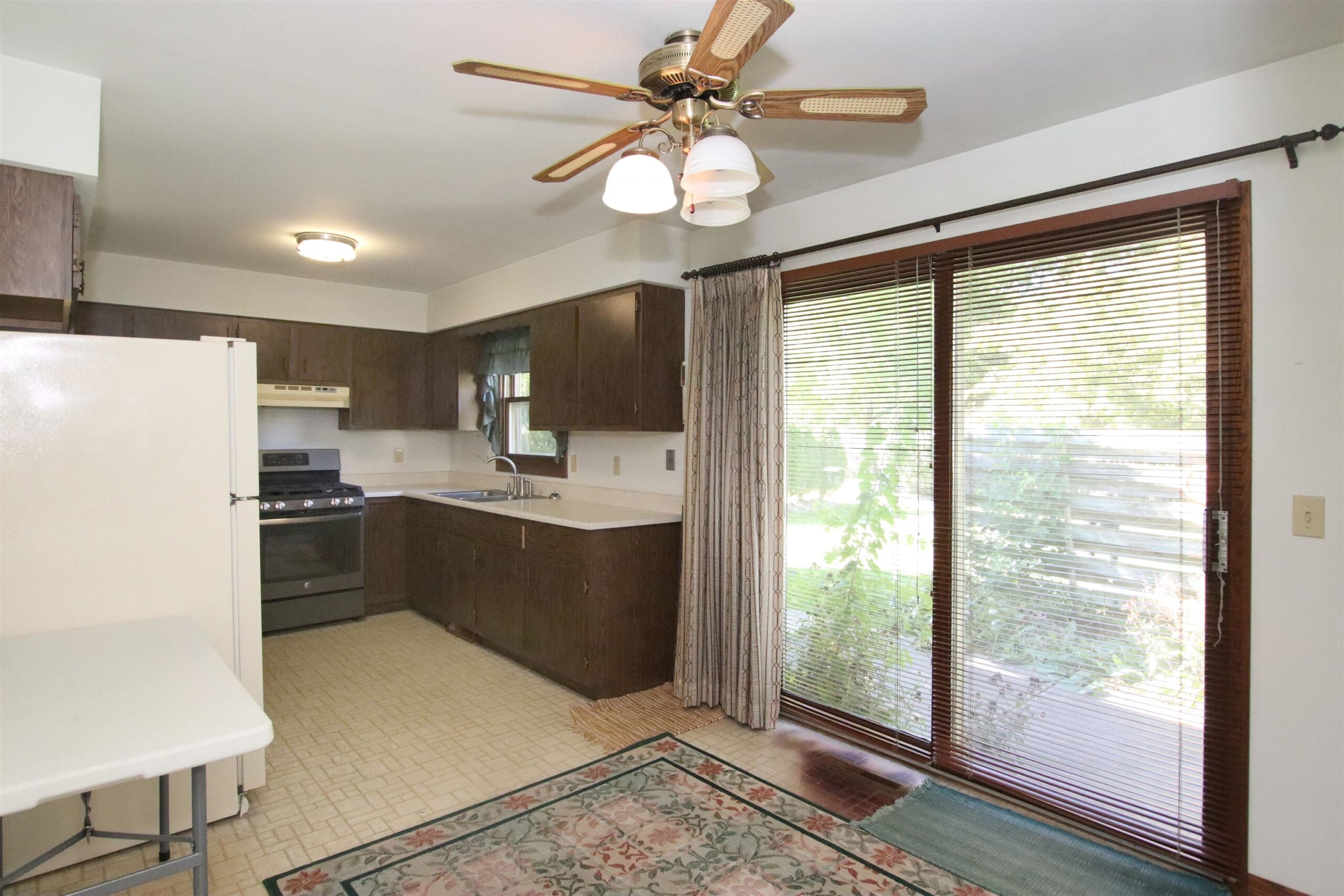Stove, refrigerator, washer, dryer, window treatments
