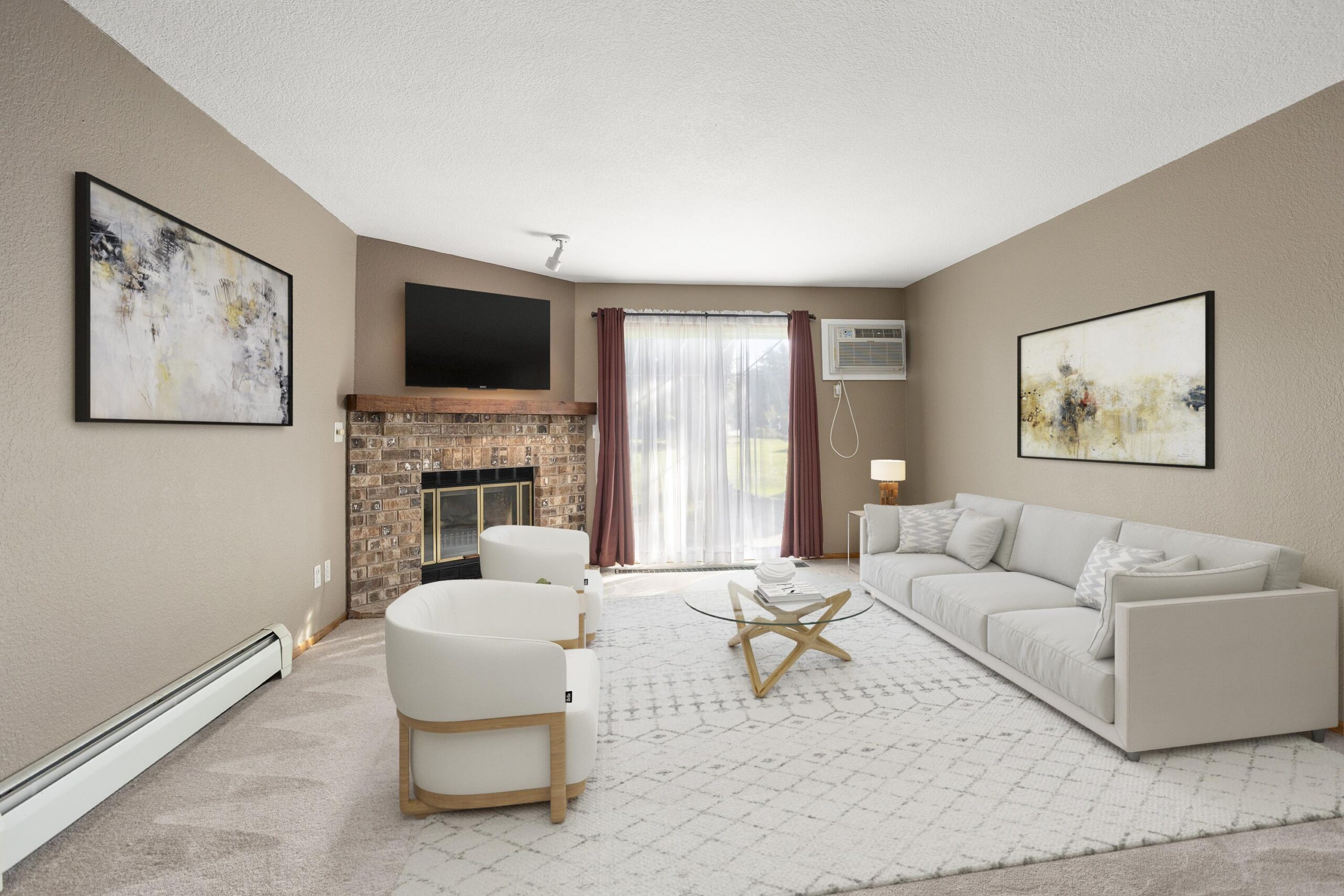 refrig, stove, dishwasher, washer, dryer, wall AC unit, electric fireplace insert, awning & metal frame on patio. Fees incl. Spectrum Cable & Internet
