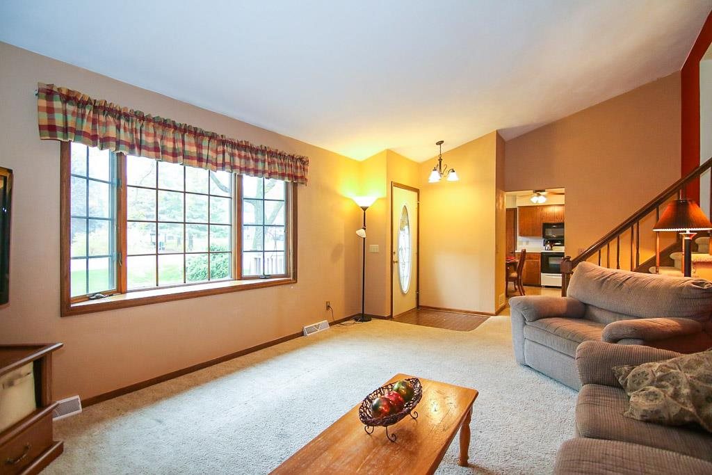 This 3 bedrm, 2 bath tri-level is a fantastic find! An idyllic lot: set in a quiet neighborhood, nearly a 1/2 acre, corner, wooded, AND your own apple trees! Plus only minutes to Madison! Inside the home bay windows, a vaulted ceiling, large family & living rms, & a finished lower level w/ built in cabinets allow for truly comfortable living. Kitchen has closet pantry + abundant counter & cabinet space. Outside enjoy the large deck & front porch. Extra storage above garage. New roof '09. Come fall in love!