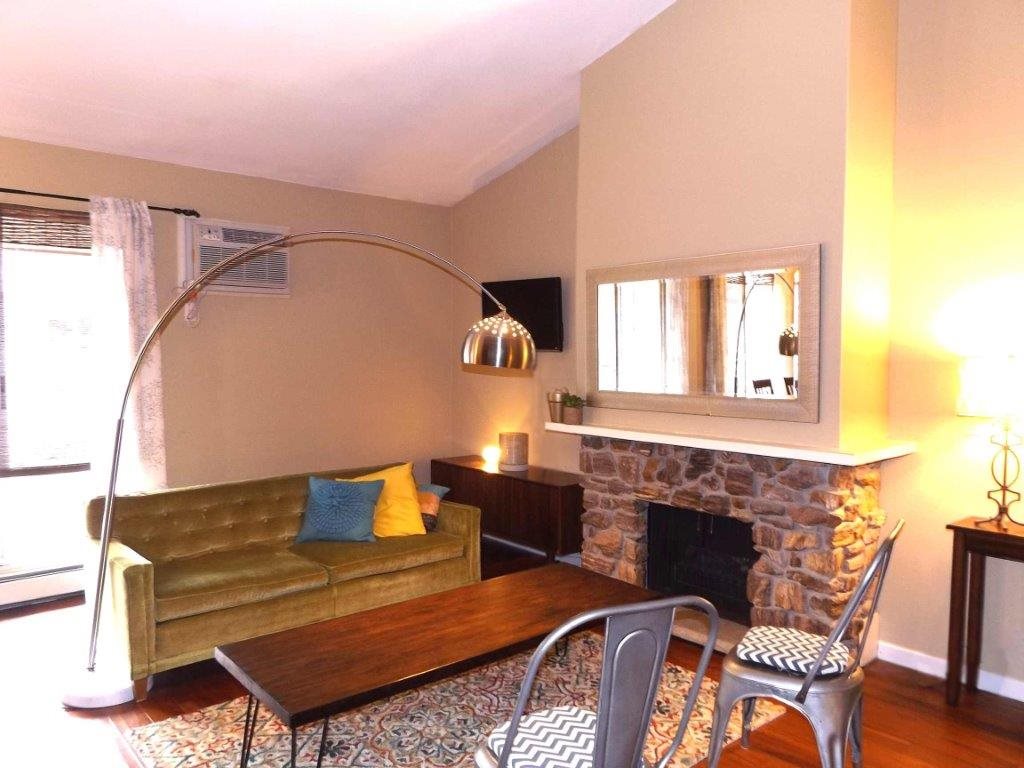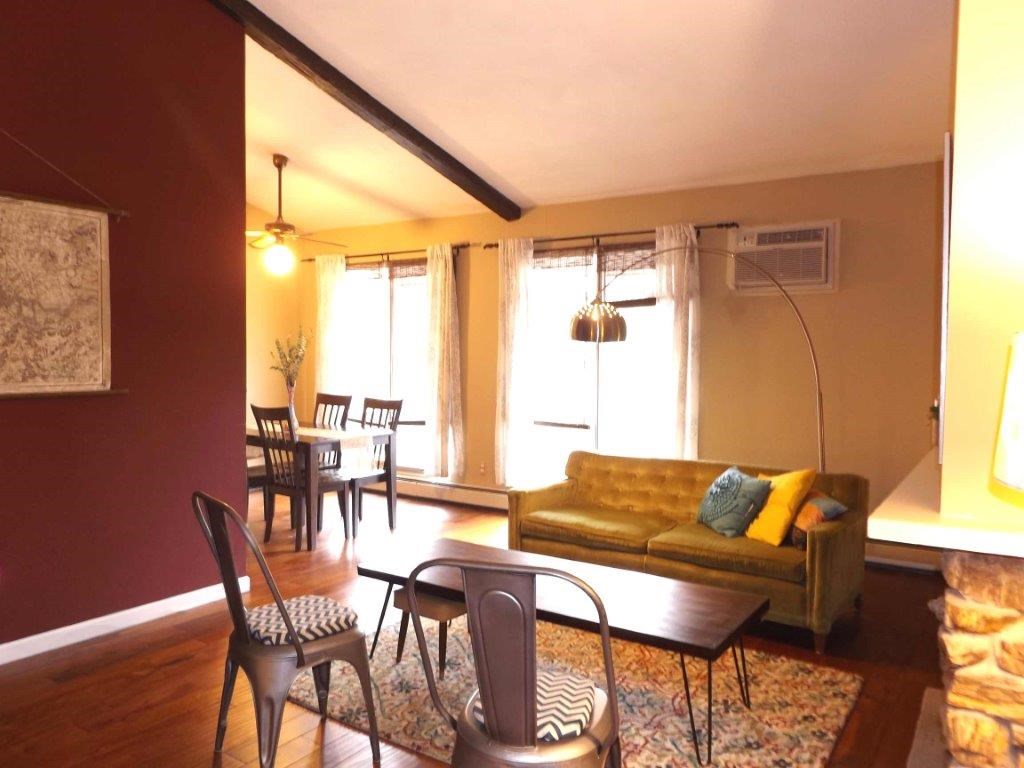 Stylish condo w/airy vaulted ceilings, modern kitchen, wood floors & more! Charming fireplace w/gorgeous stonework (electric). Large priv. deck for relaxing. HEAT & hot water included! 2 big bedrms w/high ceilings & wooded views. Nice sized bath & priv. master half bath. End unit. W/d just steps away shared w/only 3 others. 1 heated undgrd parking space & 1 spot in lot. 4x6 storage locker. Great location! Walk or bike to parks, shops or the beach - or hop on either bus line - direct to downtown in minutes!