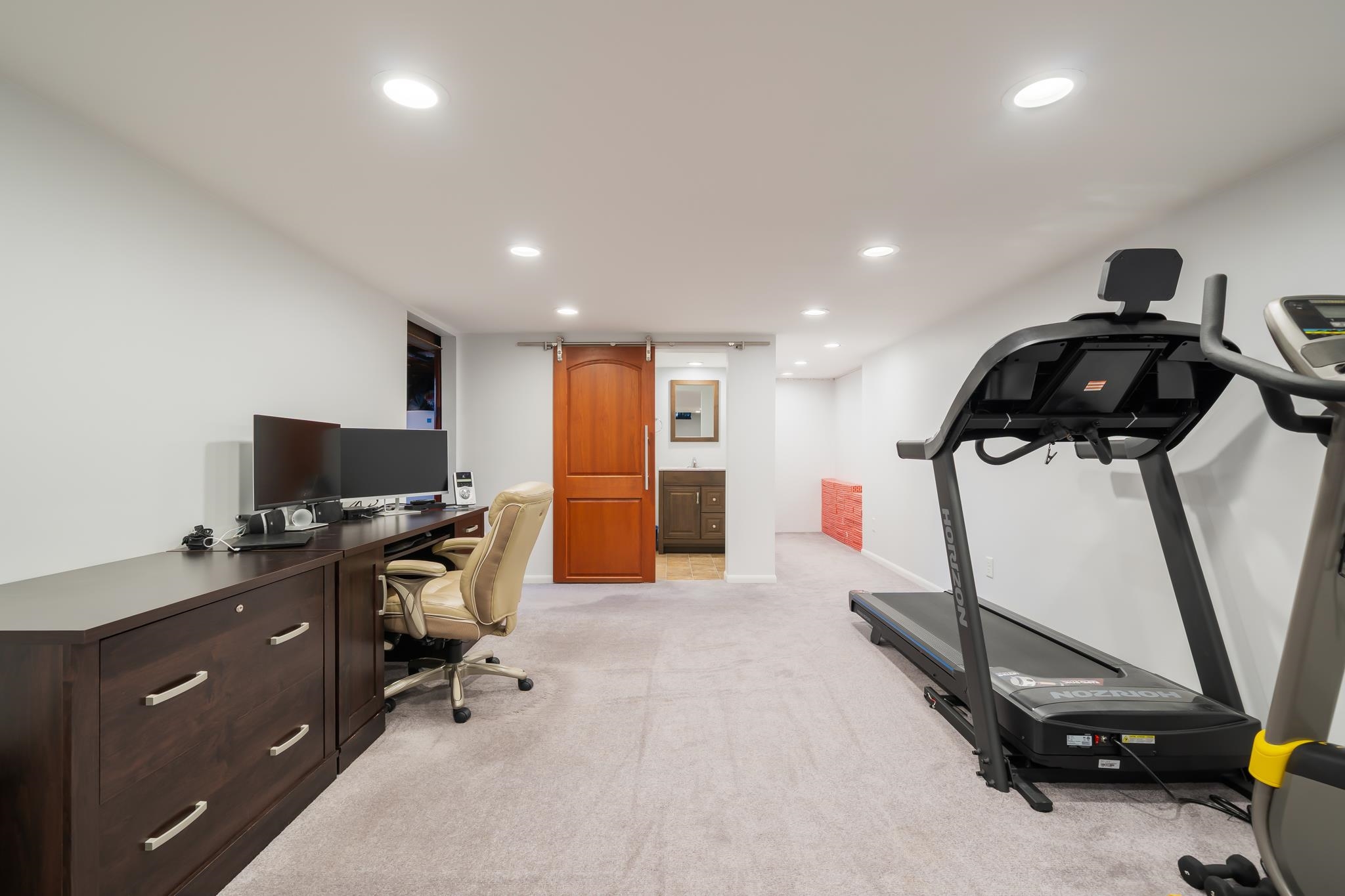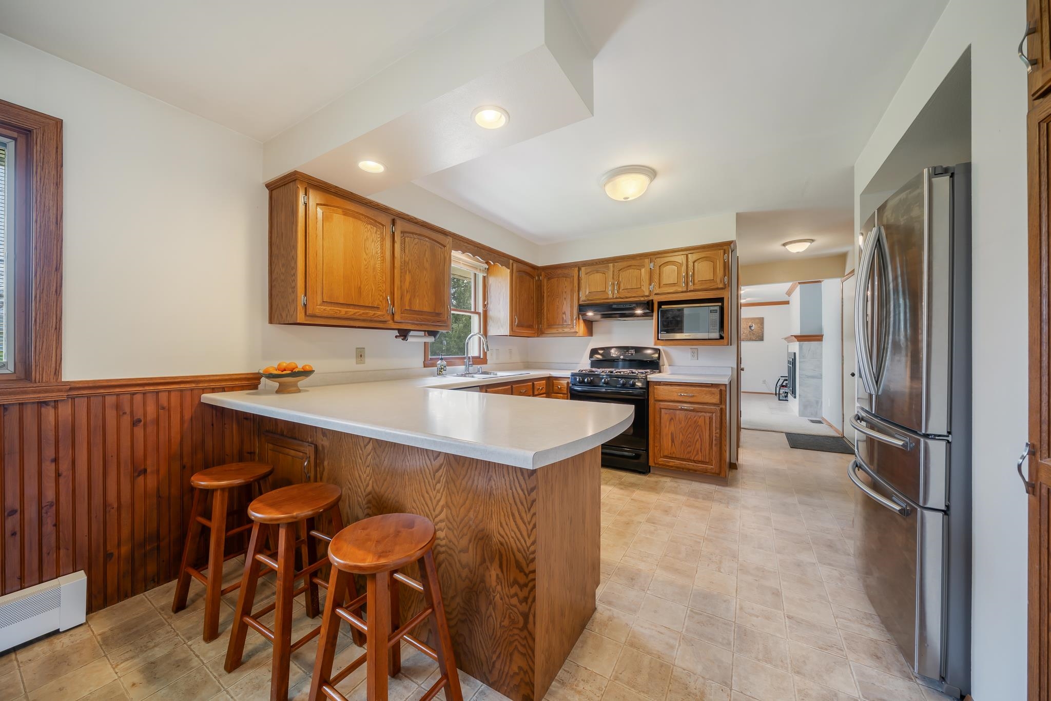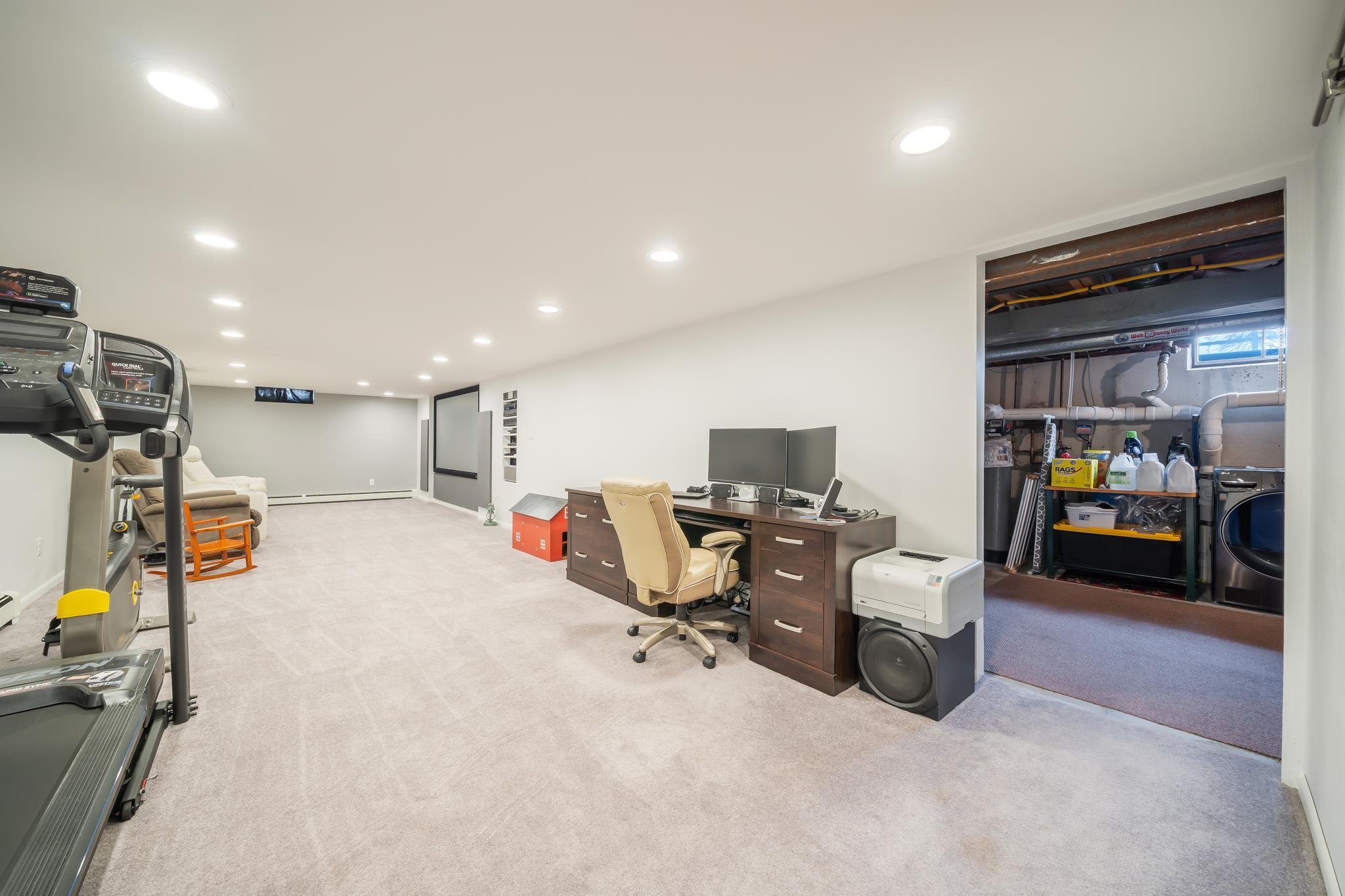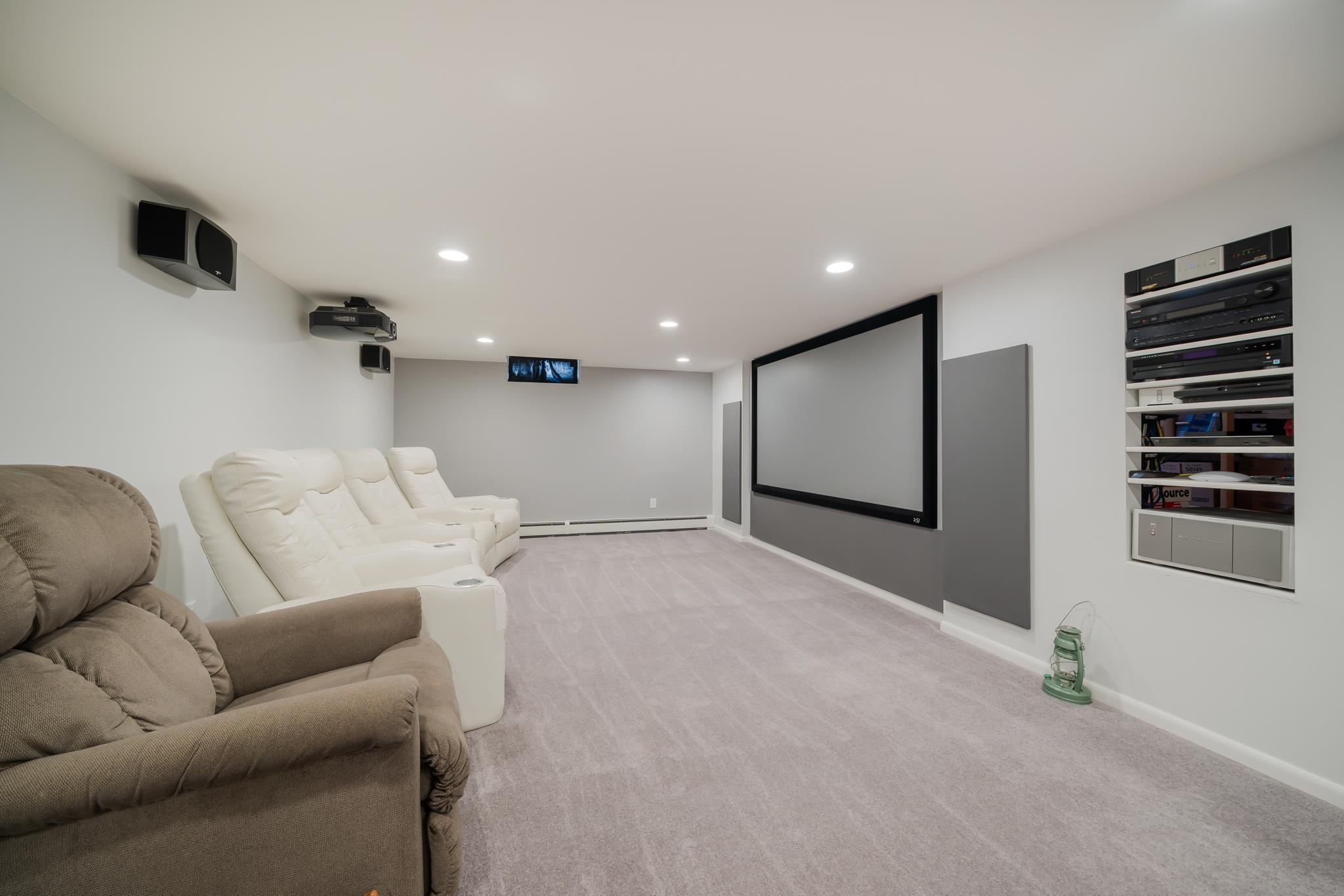Refrigerator and microwave in kitchen, firepit, washer, dryer, security cameras and security system, car charging station in garage, projector/movie
