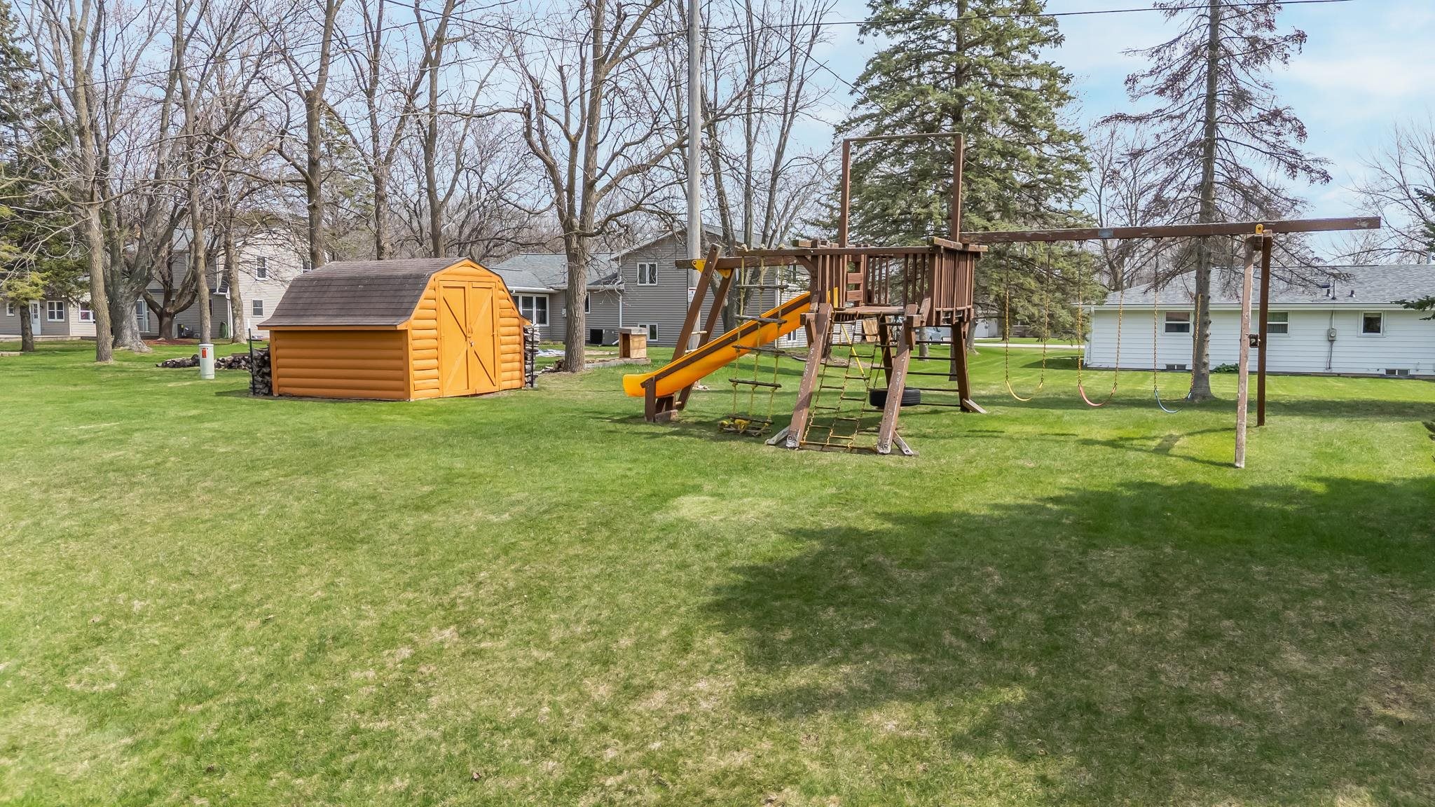 oven/range, dw, water softener, storage shed, all window blinds/shades, wall mounted tv bracket in LR, window seat cushion, backyard playset/swingset