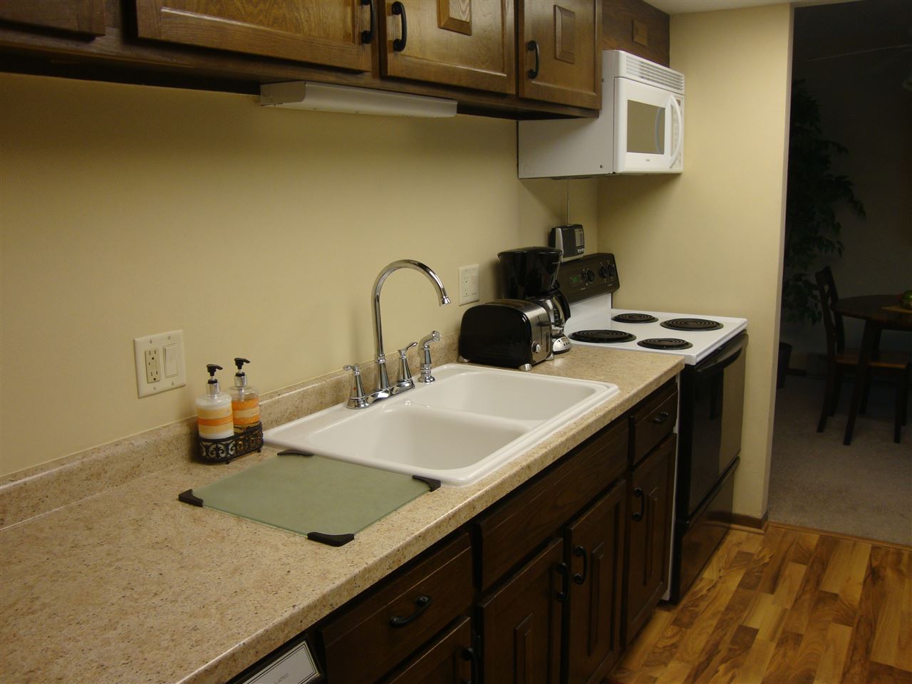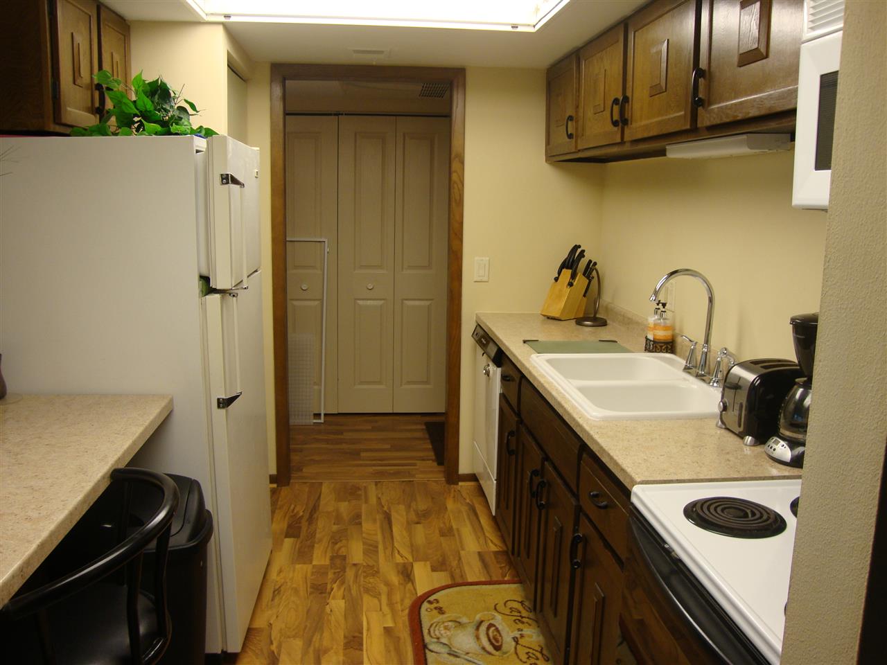 This unit, located close to shopping, restaurants and entertainment is ready for move in. Lightly lived in by snow birds who used the unit 5 months out of the year. Featuring new laminate wood flooring, new counter tops, gas fireplace & double closets. Private Patio looking out over pool area. Unit has separate storage off patio and additional storage in basement. The Association offers a beautiful pool, clubhouse, tennis courts & exercise room. 1 car underground parking. NO PETS.