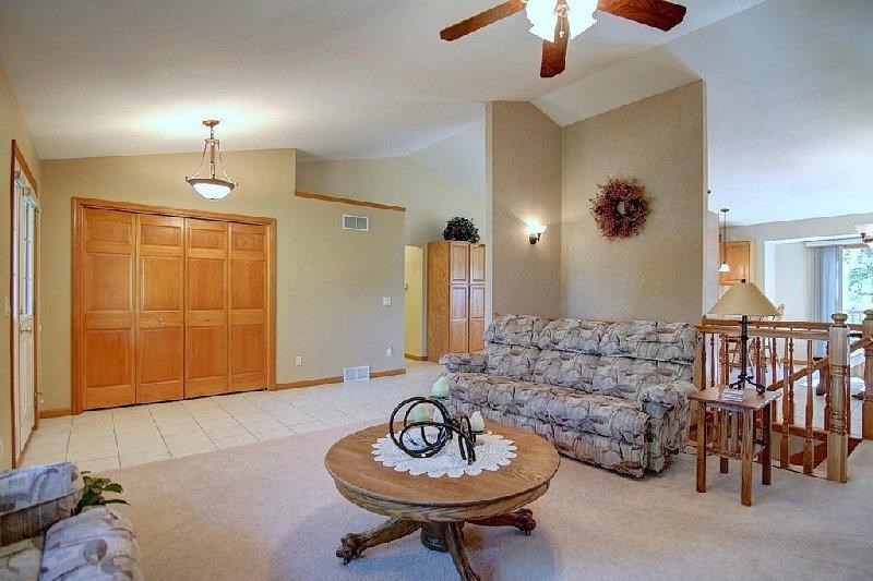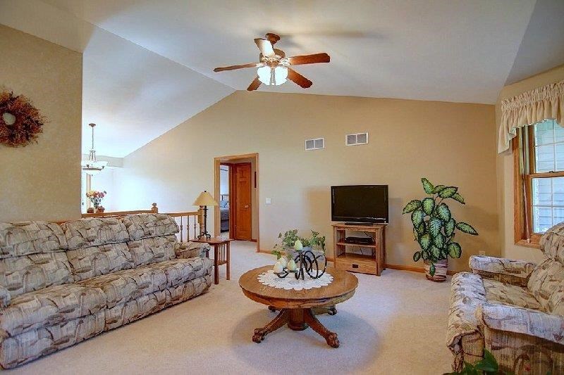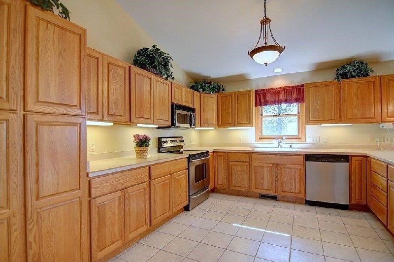 Meticulously maintained, bright, open ranch plan on large tree lined lot minutes to conveniences! Vaulted ceiling in master w/ whirlpool tub & HUGE walk in closet. Cathedral ceilings, 6 panel doors, massive # kitchen cabinets, stainless appliances, washer & dryer incl, 9 ft ceilings, split BR layout, exp LL w/ AMAZING tiled rec room, wet bar & gas frplc w/ remote PLUS two addit rms for den/office/workout & Xtra staircase to garage from basement. Beautiful yard, decorative concrete & maintenance free deck.