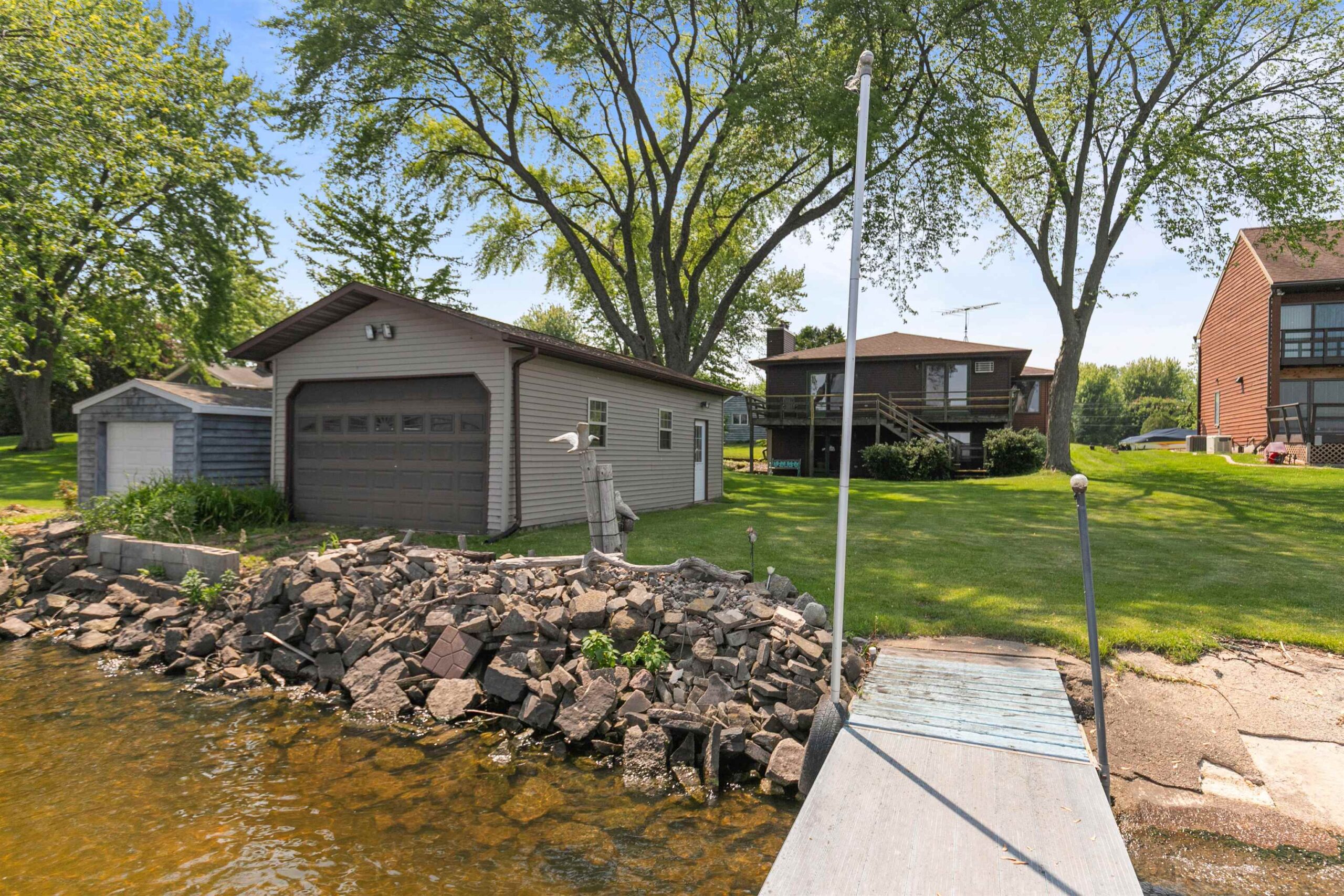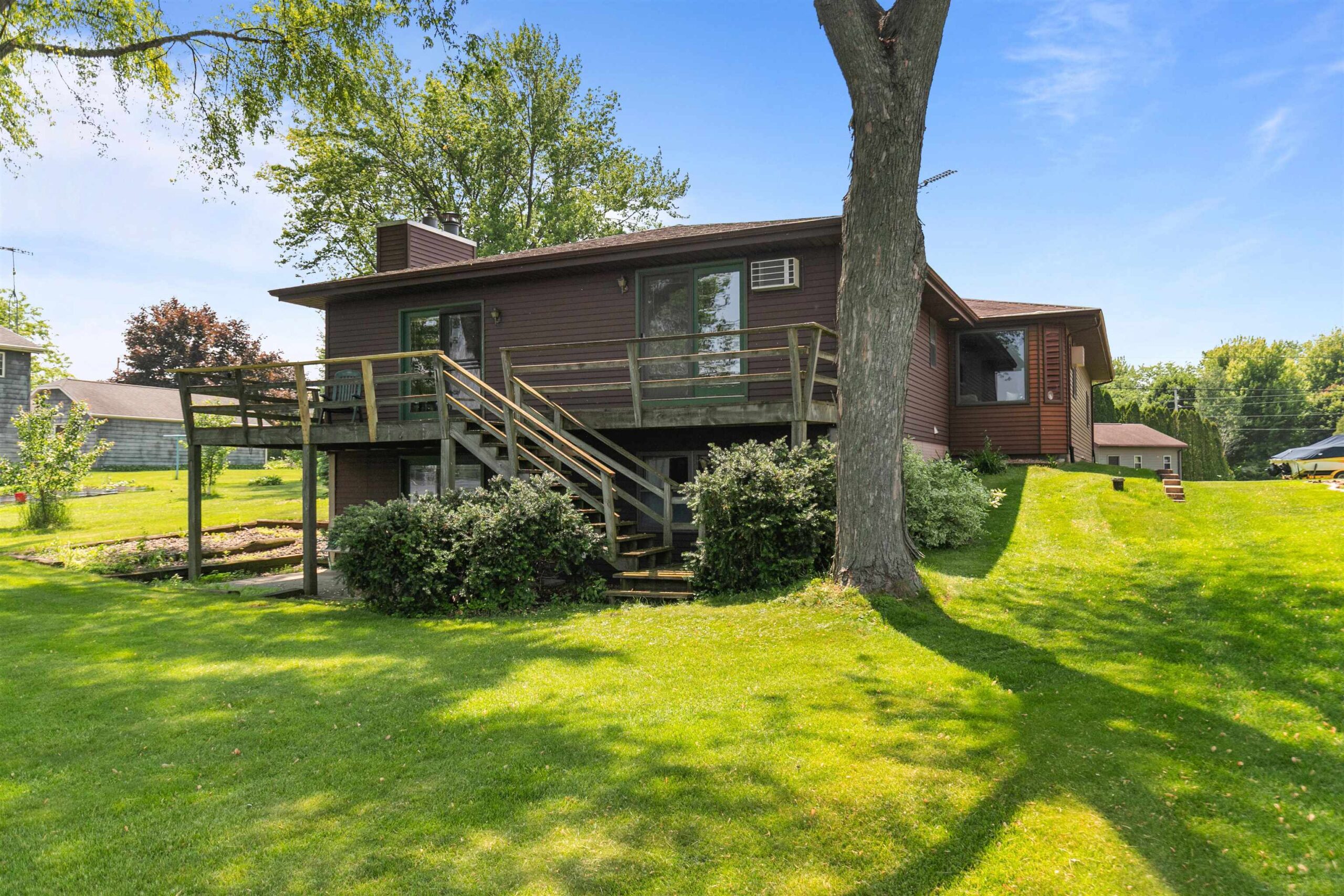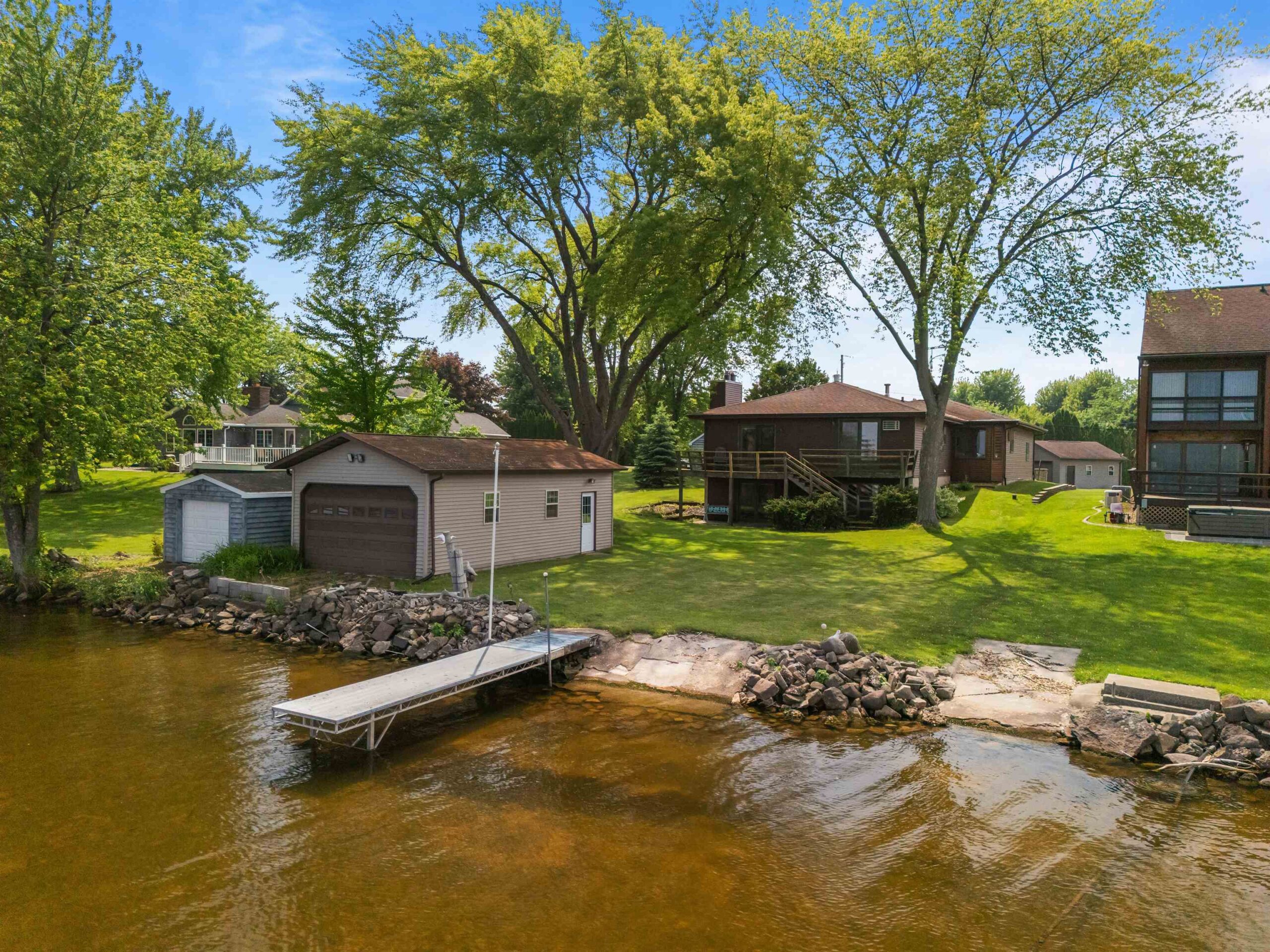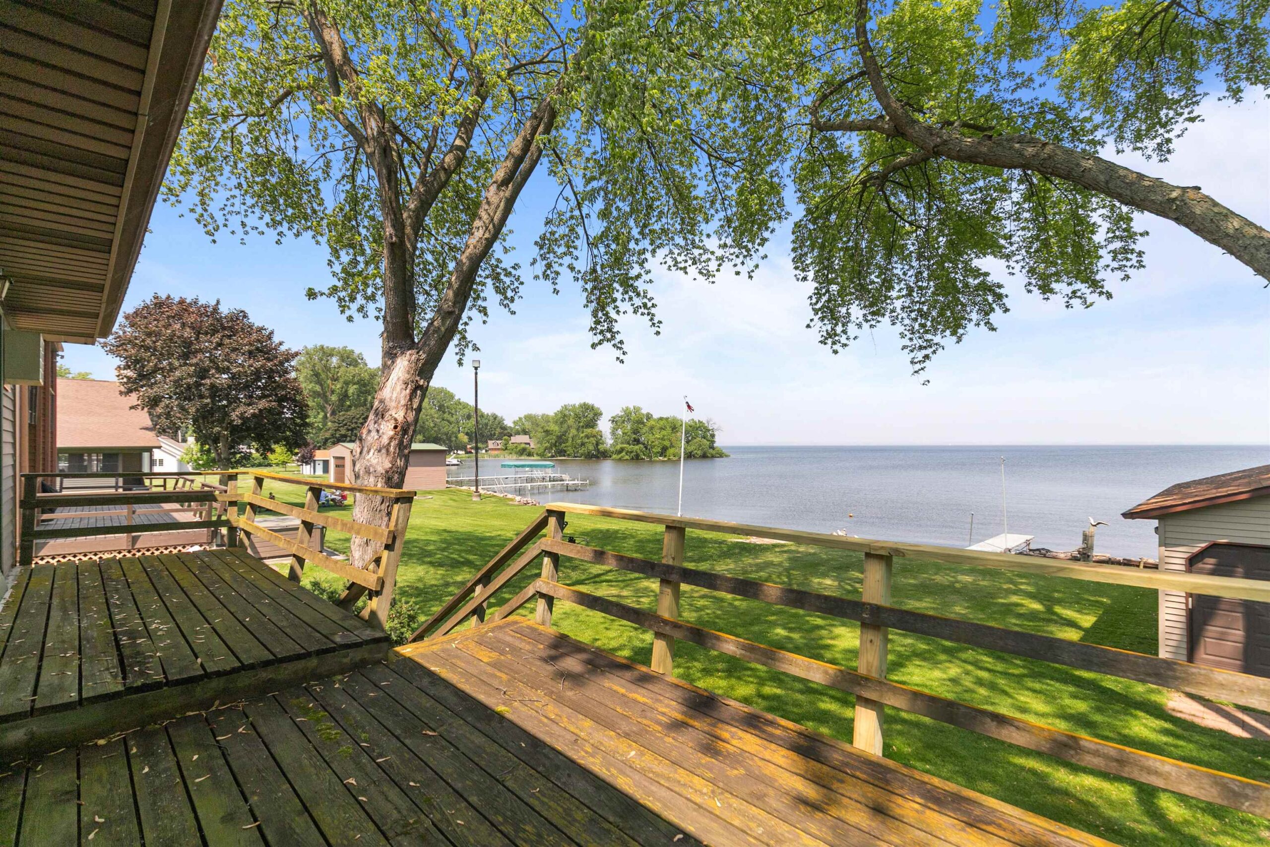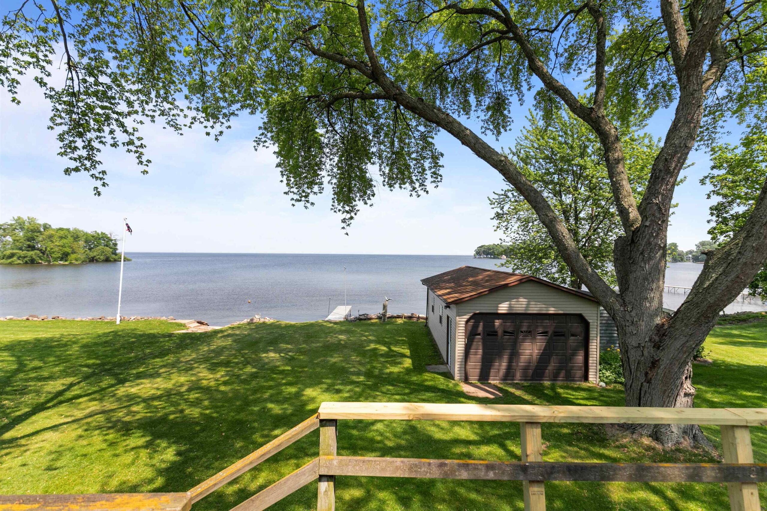 Welcome to this exceptional Lake Winnebago retreat, nestled in a quiet bay at the end of a peaceful dead-end road—offering stunning views and serene lake living. This spacious 4-bedroom ranch features many updates including a new roof on home and boathouse, updated electrical and a home warranty. Enjoy generously sized rooms, and a walk-out lower level for easy lake access and entertaining. The 31x16 boat house with removable aluminum piers makes lake life convenient and fun. An optional .92-acre parcel across the street on the channel includes a basketball court, additional piers, and lake access—great for a recreational area or future home build. Rare opportunity for year-round waterfront living with unmatched flexibility, space, and recreation.