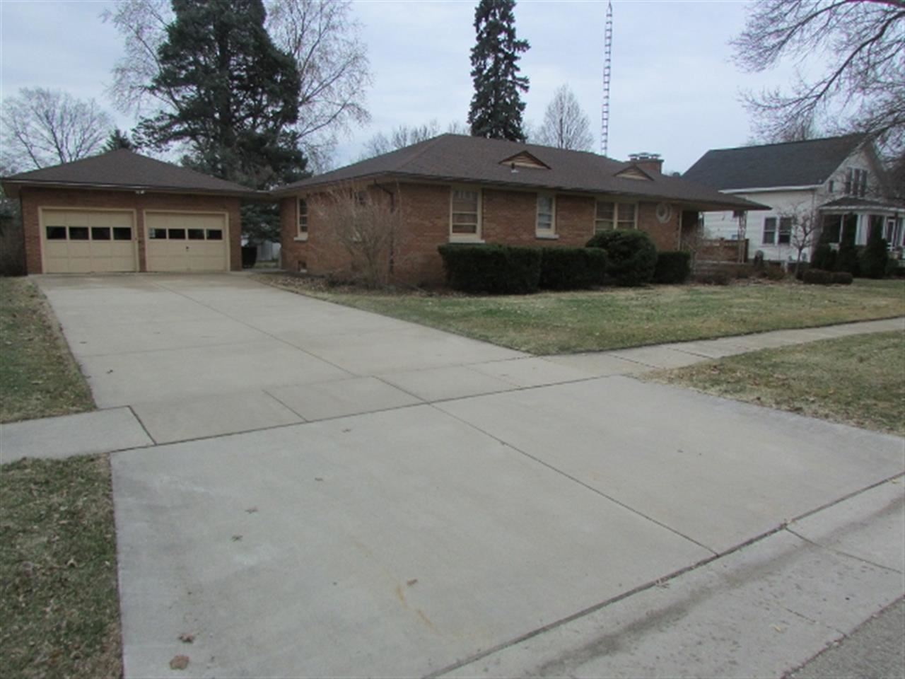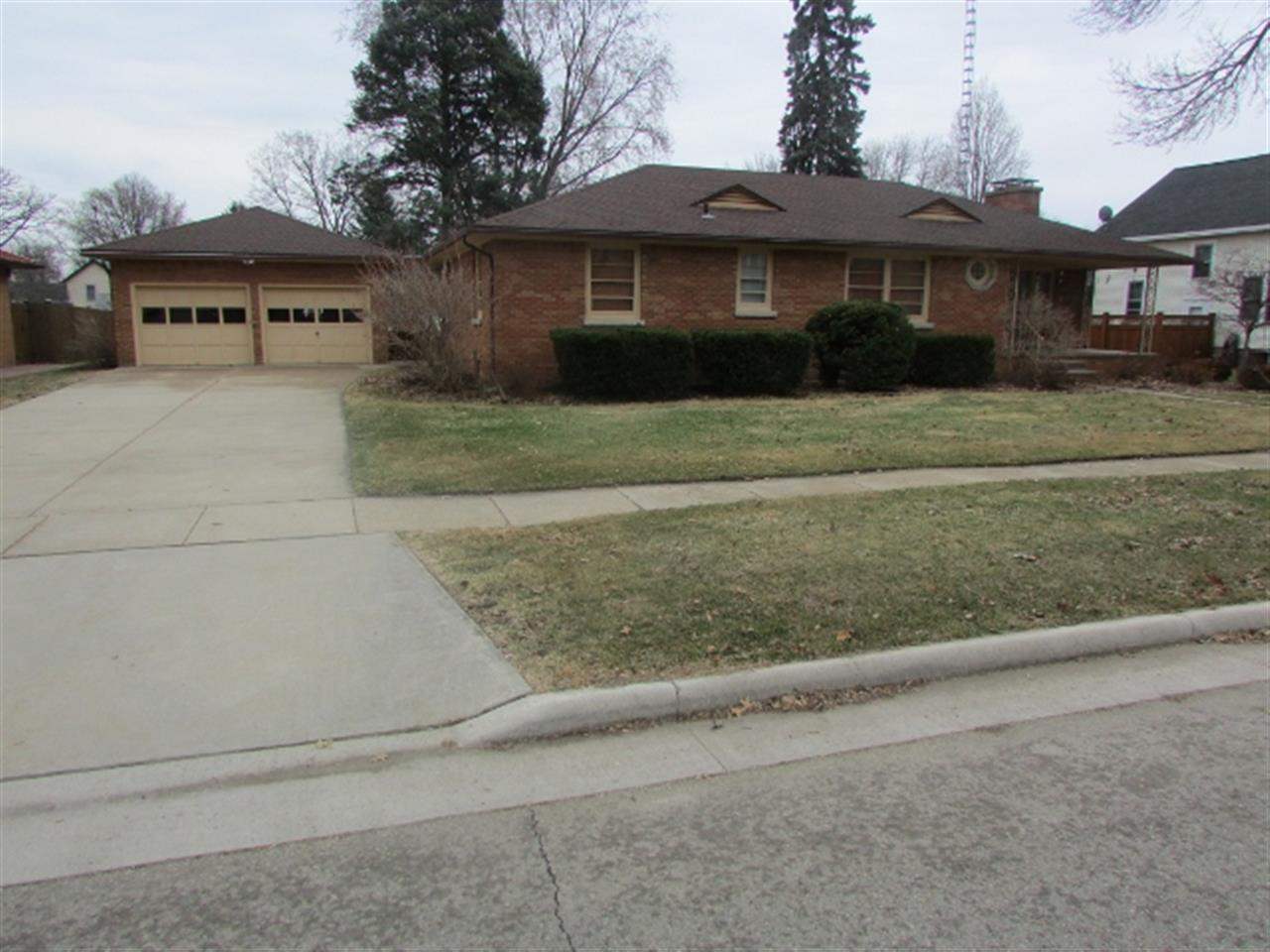 Classic ranch home located in quiet residential section of Columbus. Brick exterior, 2 car brick garage with new concrete driveway and open breezeway. Large living room with natural fireplace, 3 season room, kitchen/dining combination, finished basement with 2nd kitchen, 2nd natural fireplace, 9X15 shop area, large office and craft room. Hot water heat. 2 refrigerators and stoves and freezer. Lots of closets and storage. Garden shed behind garage.