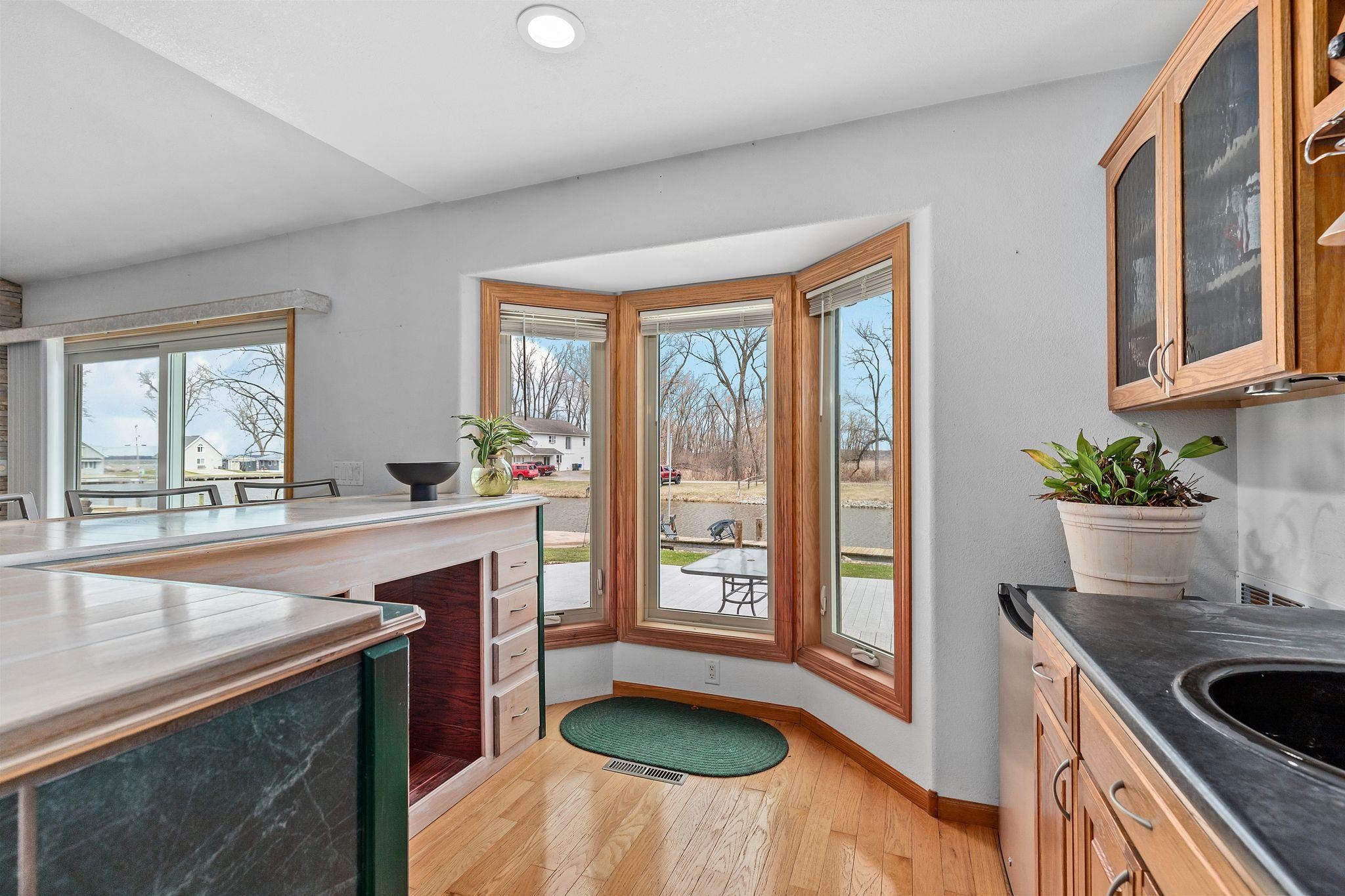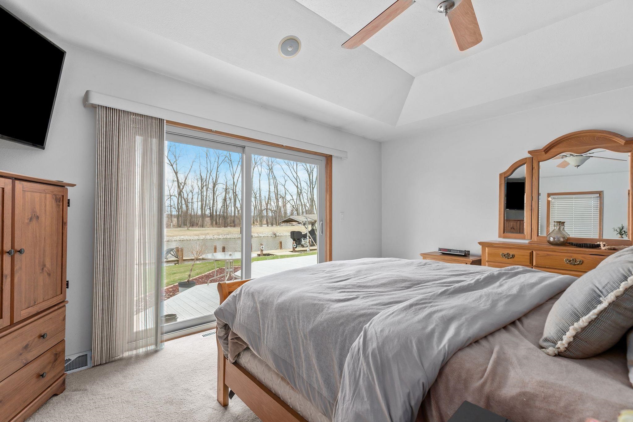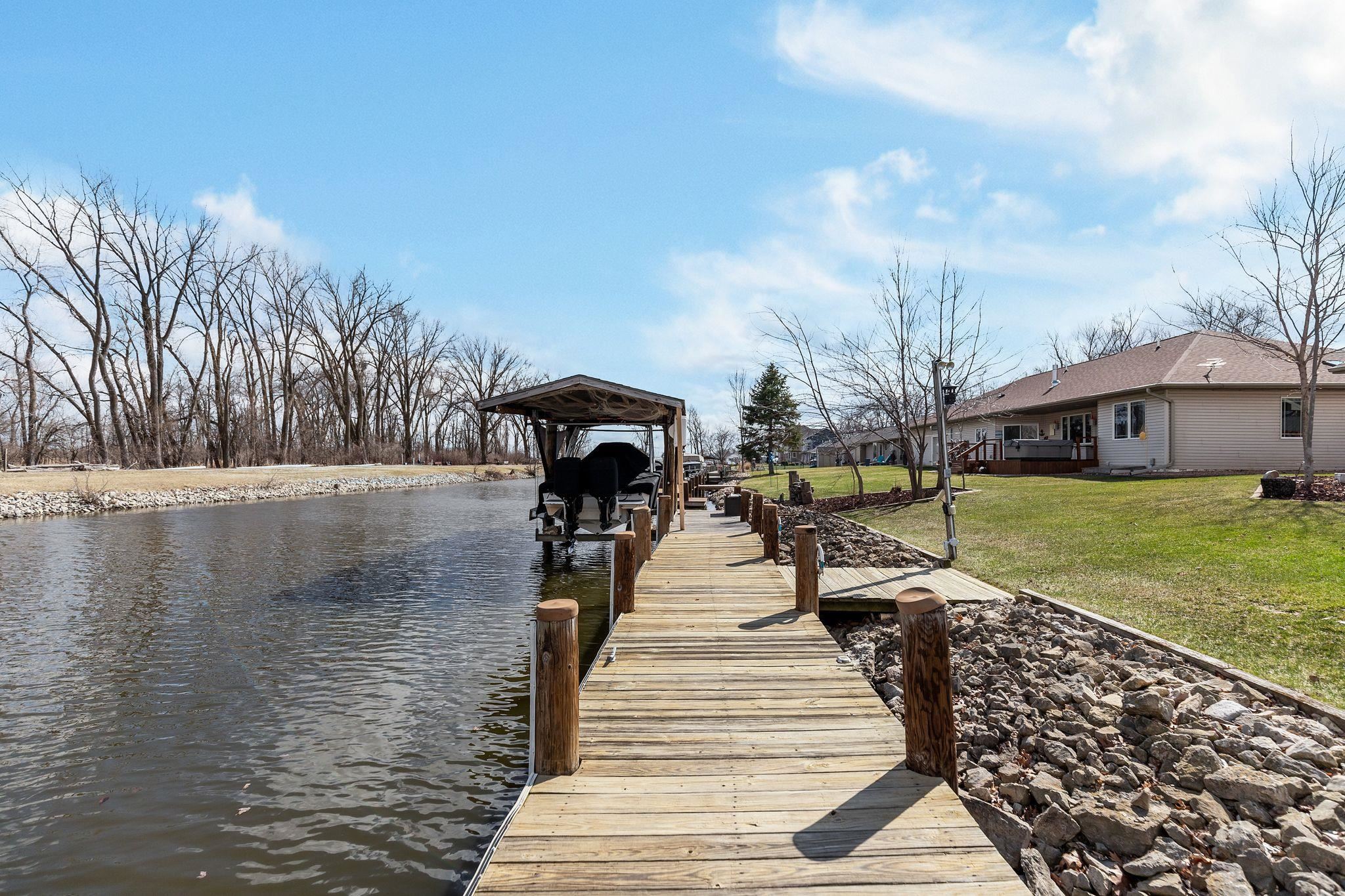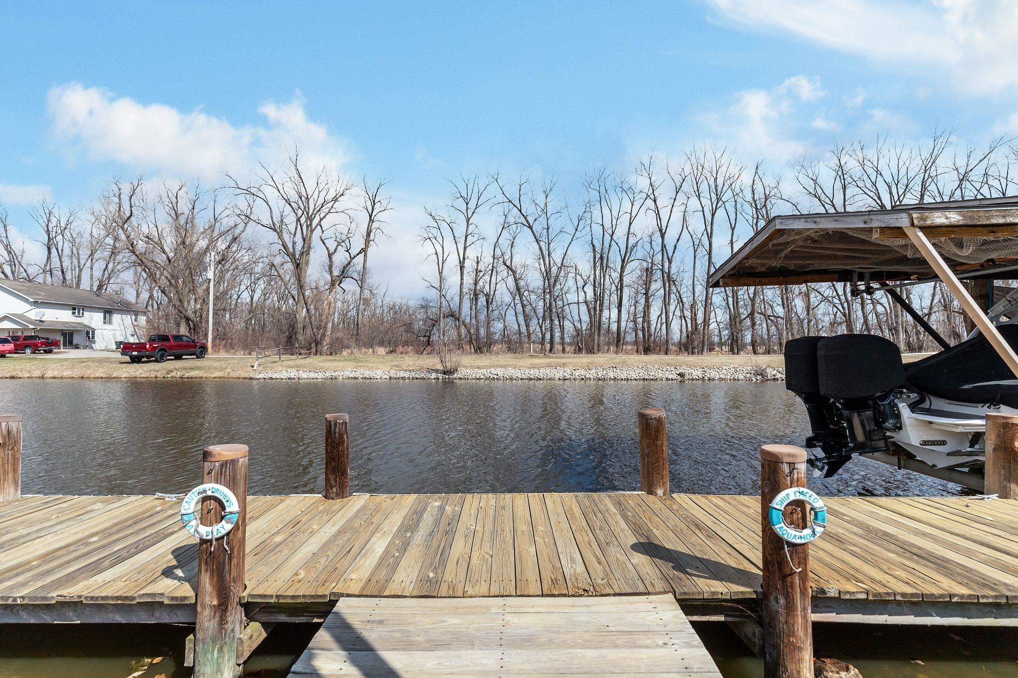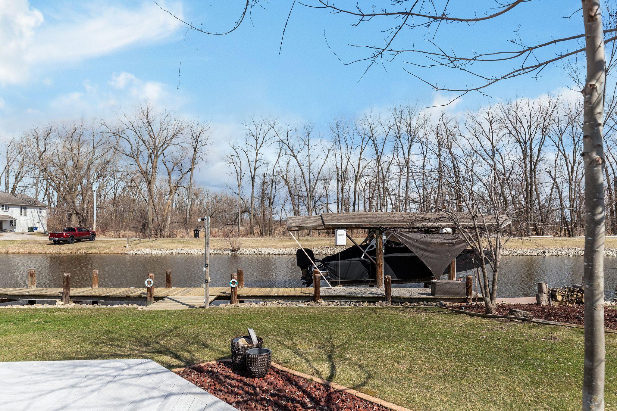 Why buy a place up north when you can live the lake lifestyle every day? This waterfront home offers 94 ft of frontage and over 2,000 sq ft of living space. The open concept kitchen, LR, and super unique bar area that practically begs you to host family and friends. The wood burning fire place keeps you cozy all year round. Primary suite features oversized patio doors so you can fall asleep and wake up to water views. Outside, the expansive two-tier deck overlooks the backyard and water, creating the perfect setting for cookouts, relaxing evenings, water side camp fires, and weekends on the lake. Attached heated 2-car garage and access by boat to multiple lakes and rivers complete the package. LL includes private office with unfinished ceiling. Per Seller, no showings until 4/10/26.