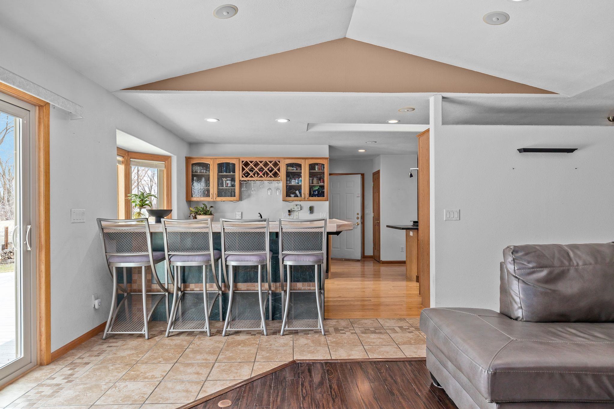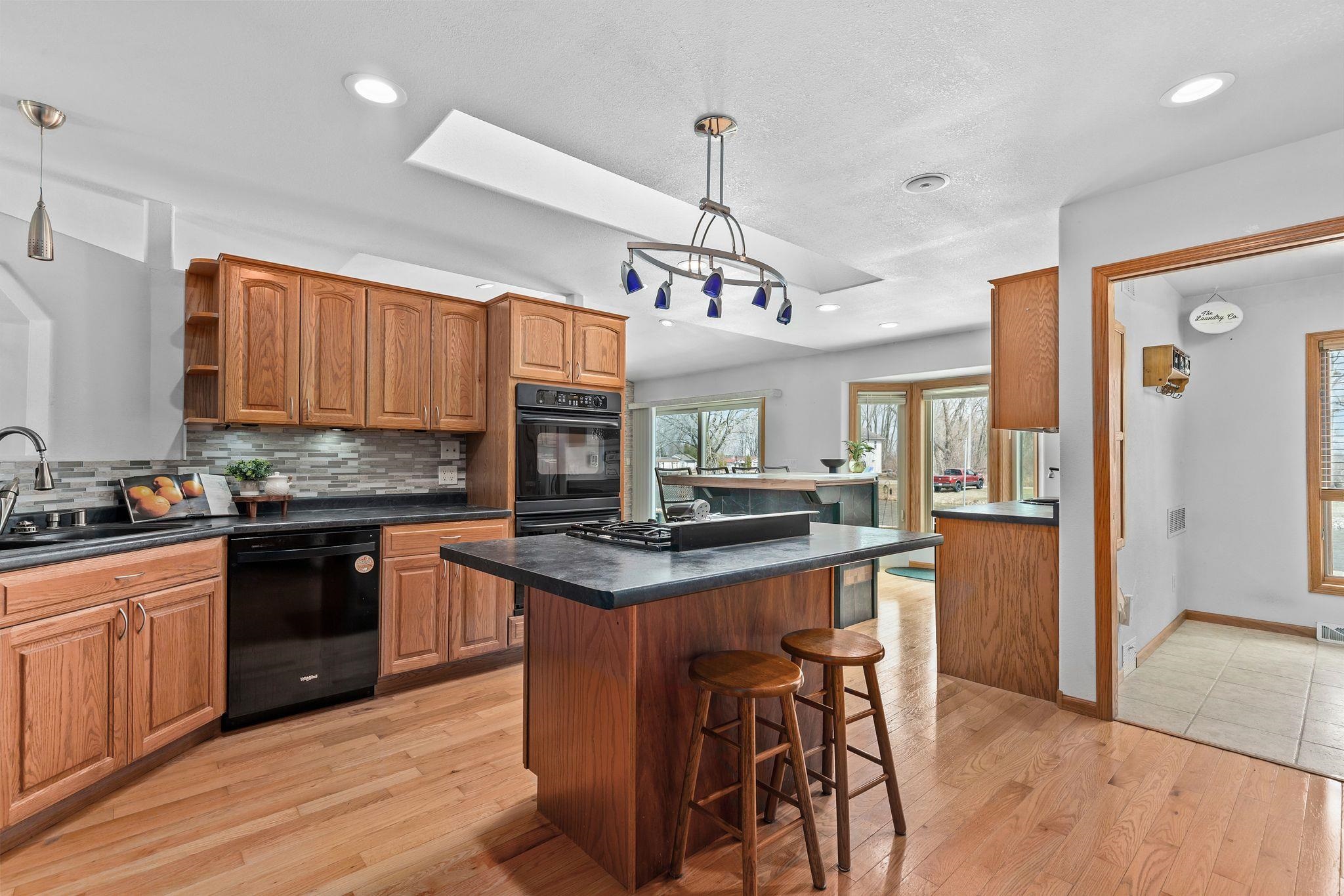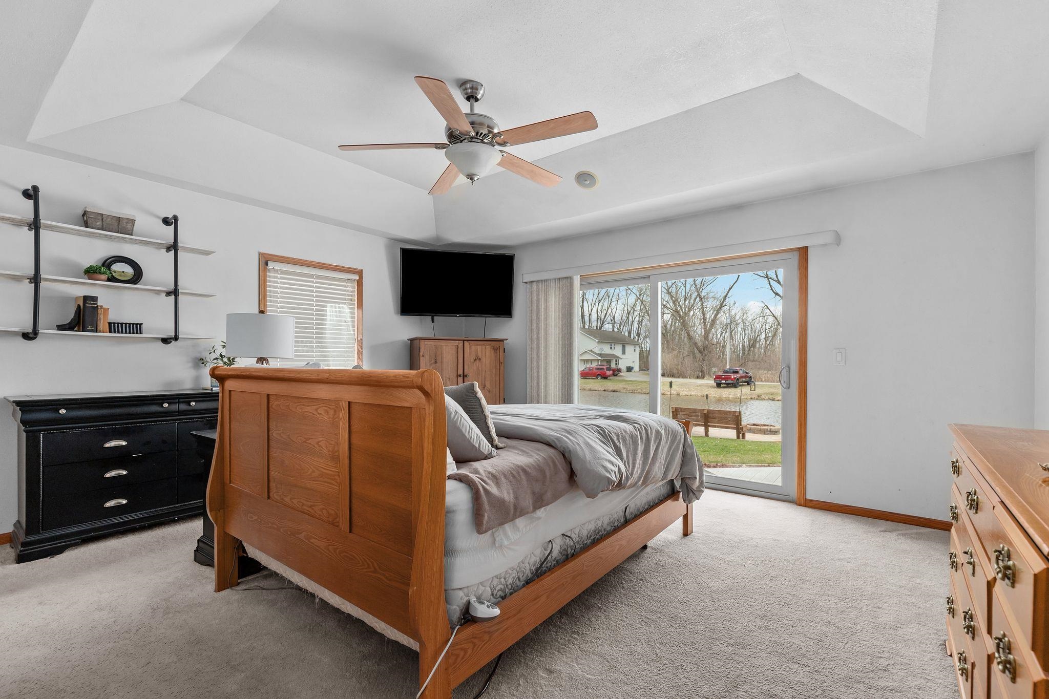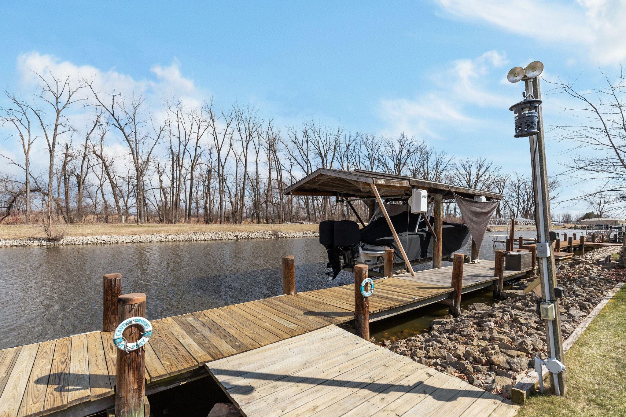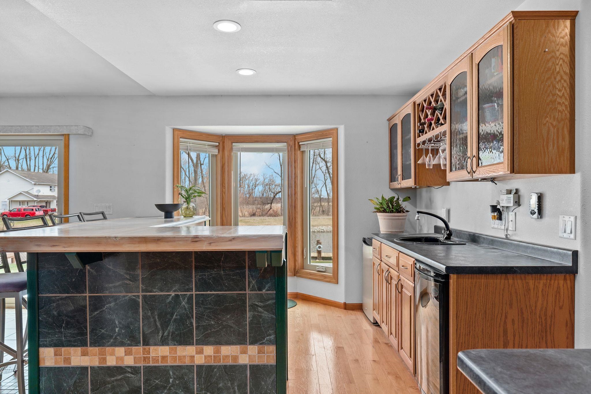 Why buy a place up north when you can live the lake lifestyle every day? This waterfront home offers 94 ft of frontage and over 2,000 sq ft of living space. The open concept kitchen, LR, and super unique bar area that practically begs you to host family and friends. The wood burning fire place keeps you cozy all year round. Primary suite features oversized patio doors so you can fall asleep and wake up to water views. Outside, the expansive two-tier deck overlooks the backyard and water, creating the perfect setting for cookouts, relaxing evenings, water side camp fires, and weekends on the lake. Attached heated 2-car garage and access by boat to multiple lakes and rivers complete the package. LL includes private office with unfinished ceiling. Per Seller, no showings until 4/10/26.