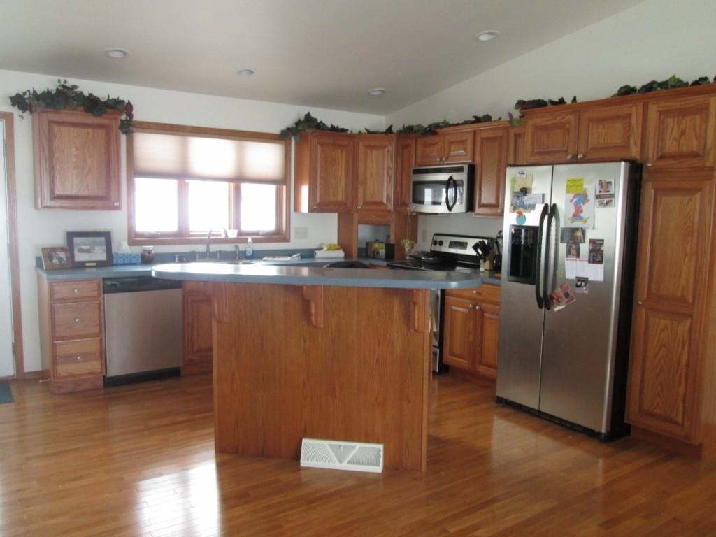 Very nice newer home in great location close to schools and park. Main floor features an open concept living area including hardwood floors, a kitchen including stainless steel appliances and a living area with a corner fireplace. Master bedroom has hardwood floors and includes a bath with a walk in shower and jetted tub. Finished walk out lower level has a family room including a wall mounted TV and a 4th bedroom with a double closet. This is a beautiful home with great access to Highway 151.