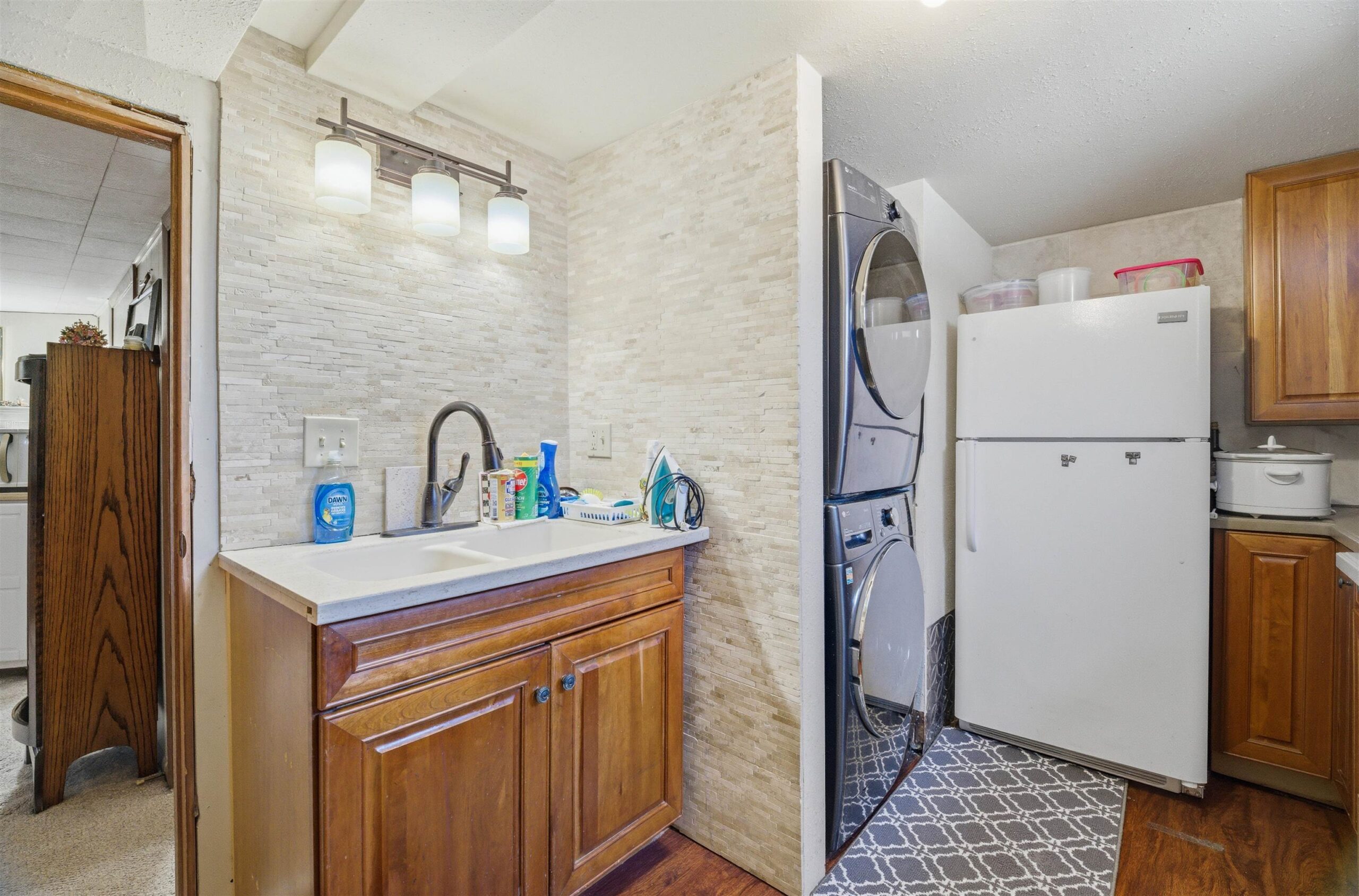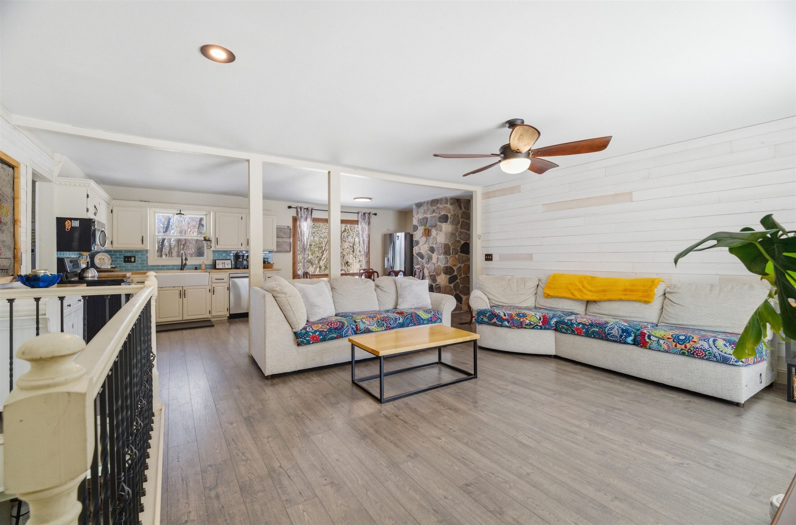 This full brick walk-out ranch has been totally refreshed w/todays style! Situated on a wooded ravine lot adjacent to Brainerd Bridge Park & bordering the Waupaca River this home feels like a retreat! Step inside to an open-concept main floor featuring a combination great room, kitchen, & dining area perfect for entertaining or just relaxing. Tucked behind the living area is an updated full bath w/dual vanity & 3 sizeable bdrms. Mudrm off the garage includes laundry & seperate 1/2 bath. The LL is finsihed w/rec rm w/FP, 4th bdrm, den & an efficiency apartment w/FR, 2nd full bath, full kitchen w/laundry & 5th bdrm (no egress) for blended living. Come enjoy Waupaca's natural beauty w/access to 22 spring fed lakes, unique dining, charming shops & thriving businesses.