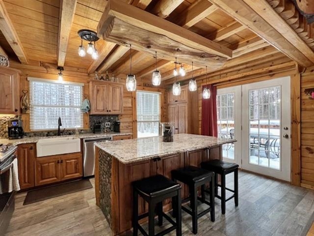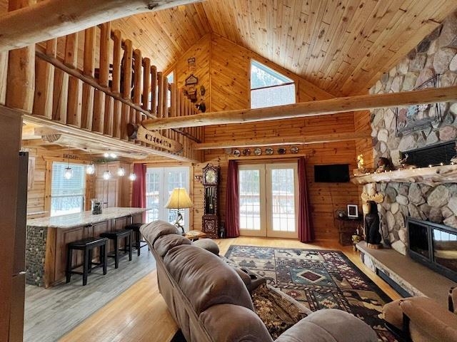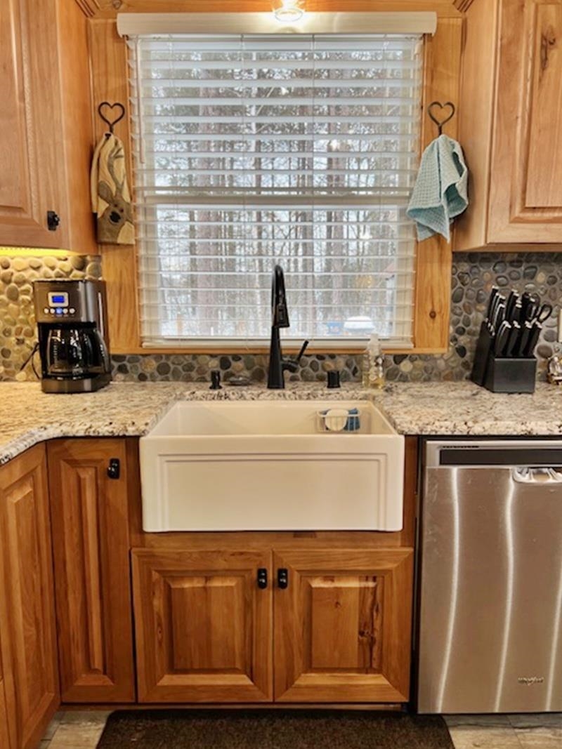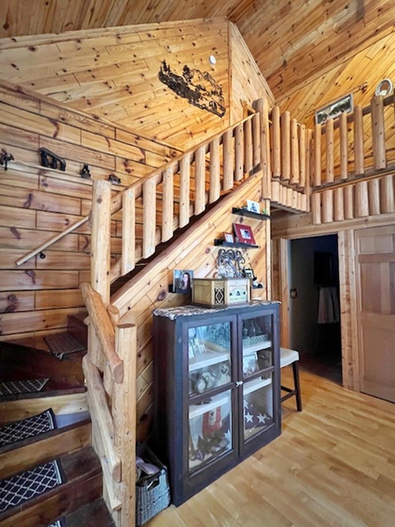 Updated 3BR, 2BA log home offering the peaceful Northwoods setting you’ve been looking for. Open-concept main level features gorgeous woodgrain, upgraded kitchen with new hickory cabinets, granite counters, and updated lighting. The living room has a soaring ceiling w/cross beams and fieldstone wood-burning fireplace. Cozy family room and first-floor laundry. The upper level includes a reading nook and primary suite with jetted tub and walk-in shower. Full walk-out basement with workshop. GFA heat plus new energy-efficient wood furnace. Expansive deck overlooks wooded 1.5 acres. Fenced kennel and garden, attached 1-car garage with two lean-tos for extra parking. Located on a quiet dead-end road with year-round access, direct ATV trail access, and only 1/2 mile to Nicolet National Forest.