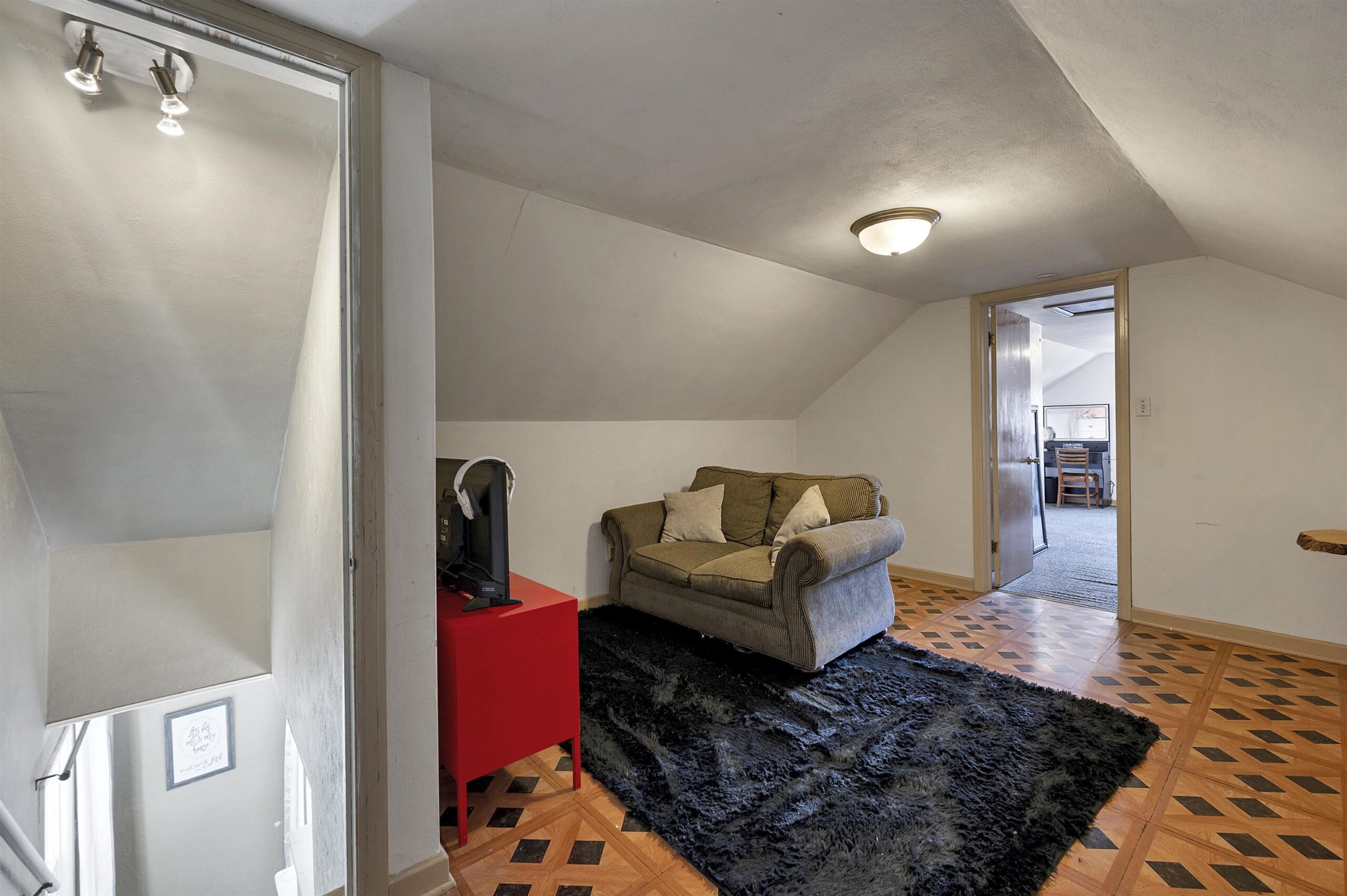 Three bedroom home in a great location close to schools and the park! The spacious living room features a large window that fills the space with natural light, creating a bright and welcoming atmosphere. The open kitchen offers plenty of counter space and cabinets for storage, making it perfect for everyday living and meal preparation. The upper level includes a bedroom and an additional room that has the flexibility to meet your needs including an office space, game room, and more. Huge two stall garage provides ample space for vehicles and extra storage. Updated windows. Home exterior = Permastone.