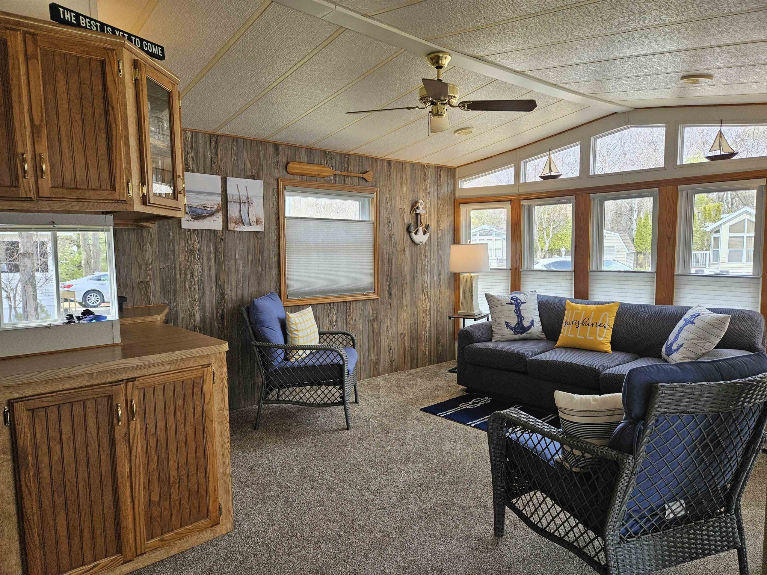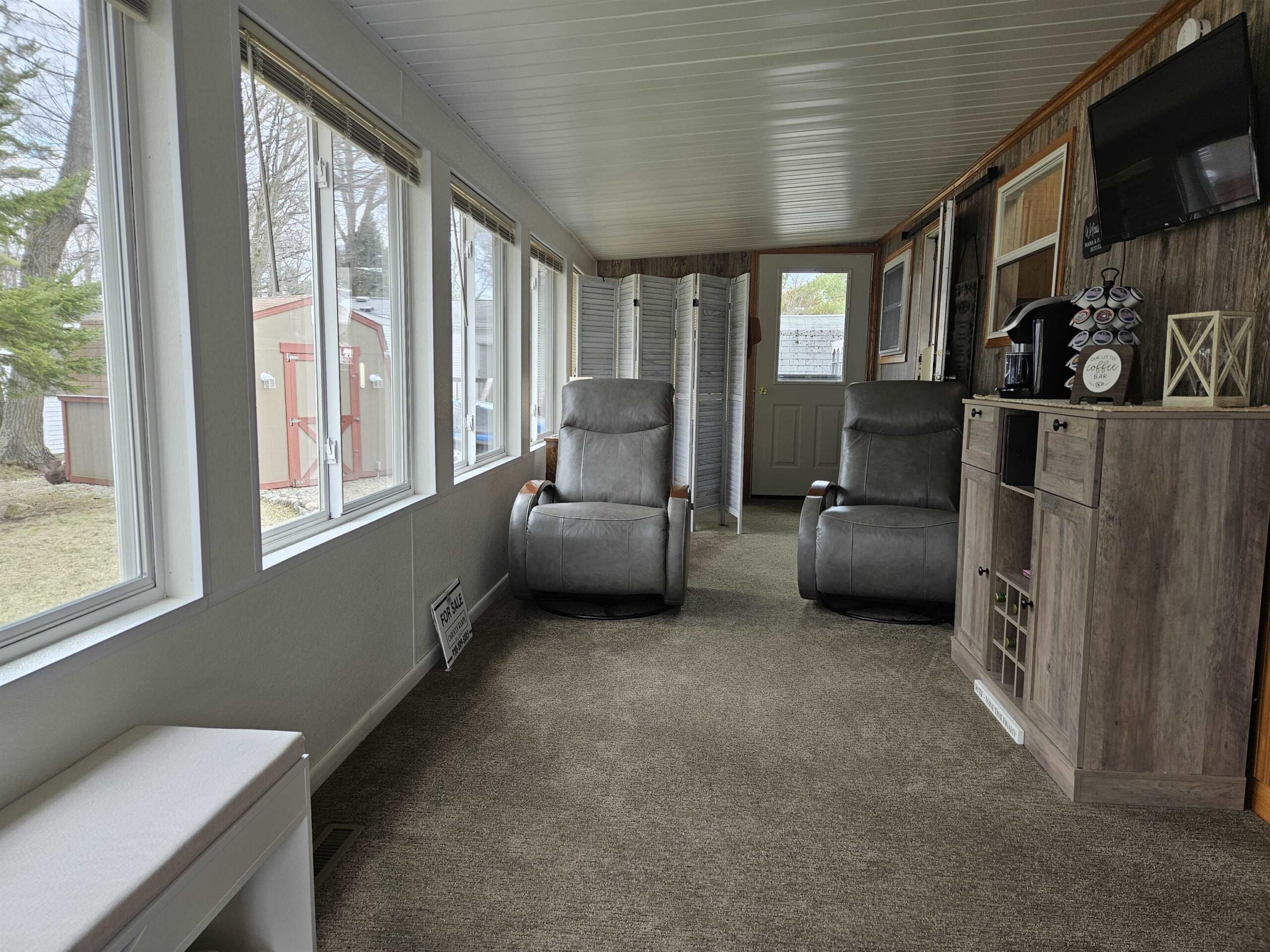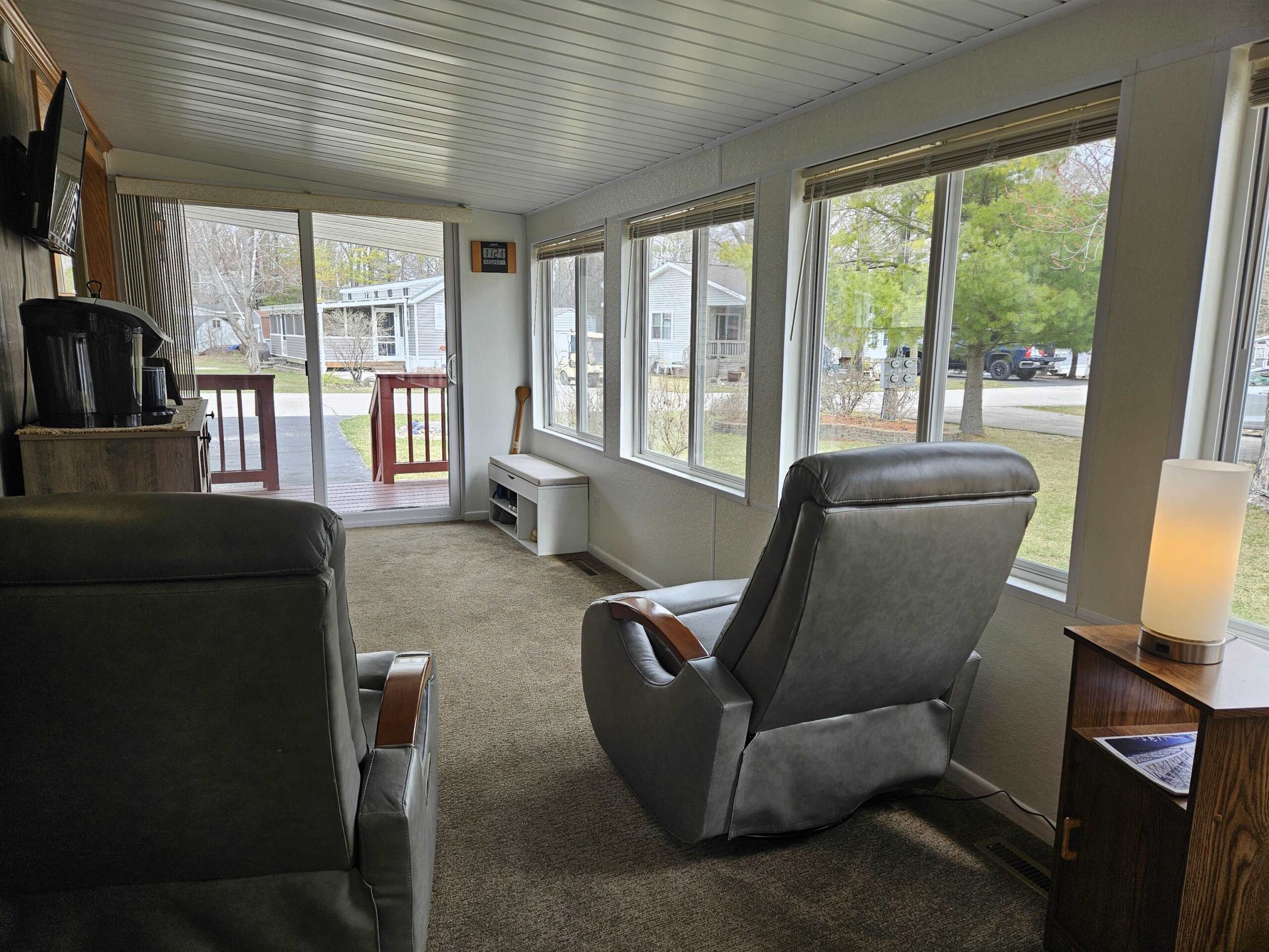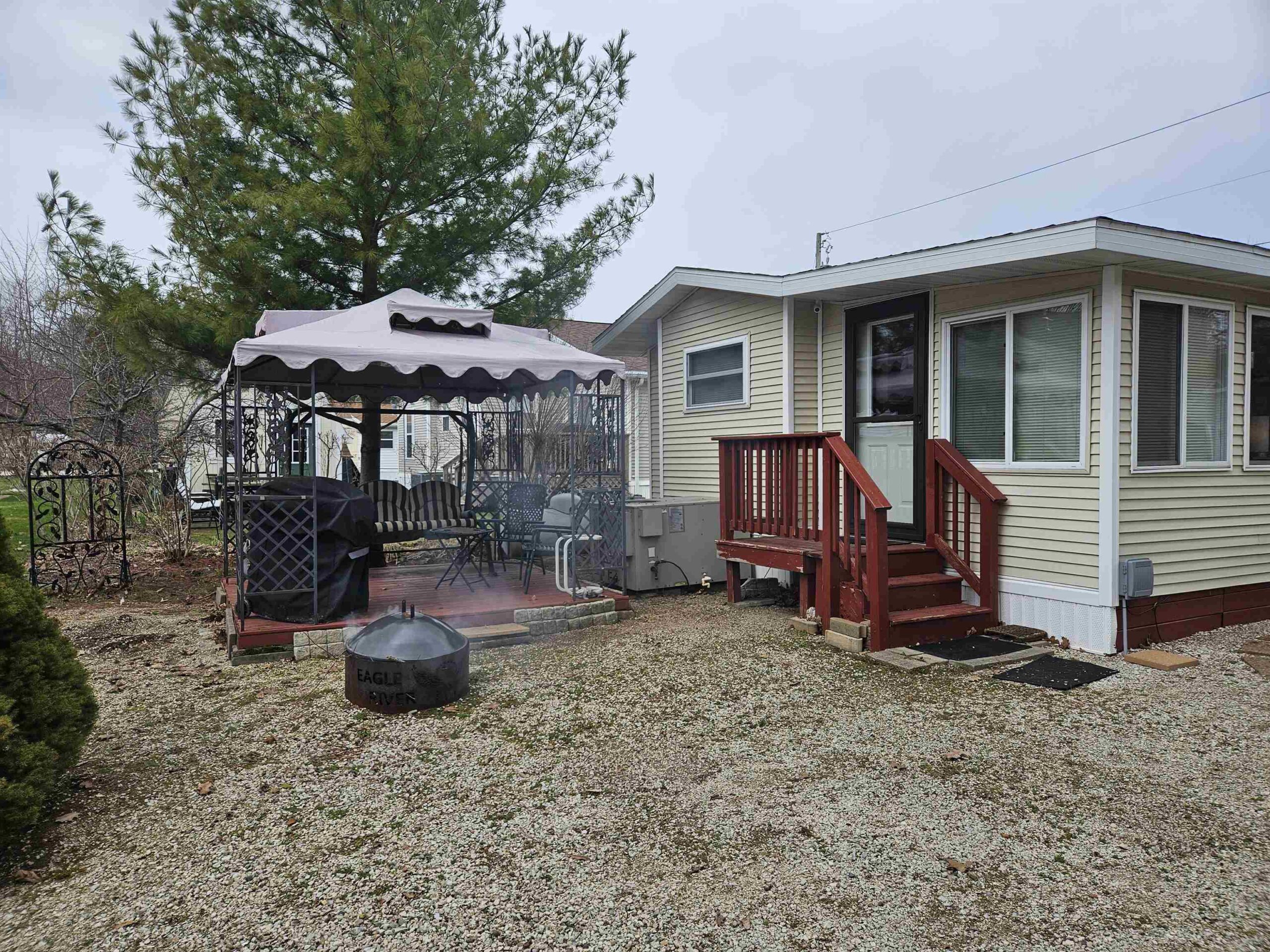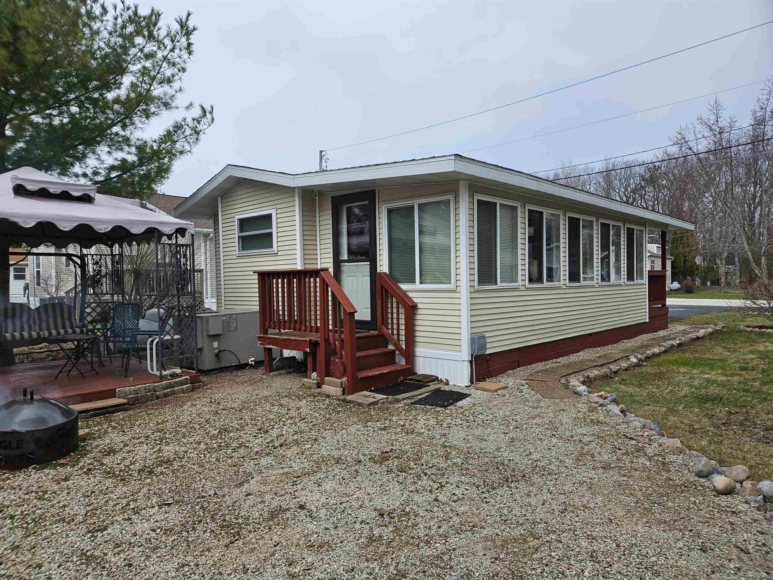 CHARMING TURNKEY Door County retreat in Hidden Ridge Resort Condominium, Sturgeon Bay. This inviting seasonal standalone unit features abundant cabinetry, generous counter space, and large pantry. Bright 4-season sunroom expands the living space—ideal for relaxing or guests/sleeping space. Set on an extra-large lot in the upper community. Enjoy a covered front porch, back porch, private deck, gazebo, and fire pit. Offered fully furnished—move-in ready. $135,000. Community building open year-round with indoor pool, hot tub, shower facilities, kitchen/living room, library. Steps to Potawatomi State Park and all Door County attractions. A true Door County destination—your own private escape designed for relaxation, connection, and lasting memories, all at an affordable price. Call today!!