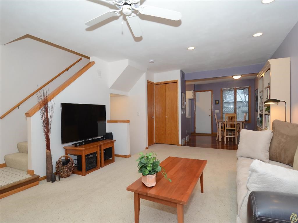 Many recent updates on this lovely townhouse! New solid surface counters, disposal & sink in kitchen, new his & hers sinks & SS counters in upper bath! There's more: New furnace, H2O heater & softener in 2014; upgraded shower tile; double closets w/organizers; vinyl windows; cherry flrs; large bdrms; cute patio area; home warranty! Pool & club house for summer fun! Strong, active assoc. & 30-yr fixed financing options make this a super buy! Close to shopping, parks & walking paths! See parkwoodvillage.org