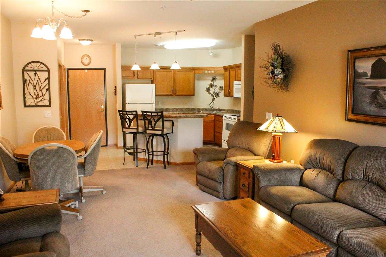 Great 1 bedroom condo on the first floor! Open floor plan with breakfast bar in kitchen, in-unit full size washer/dryer, underground parking, large bedroom with walk-in closet, huge linen closet in the bathroom, and additional storage available in basement and off the patio. Small pets are welcome. Private patio right off the living room with lots of green space. Don't miss out on this conveniently located condo that is close to parks and shopping.