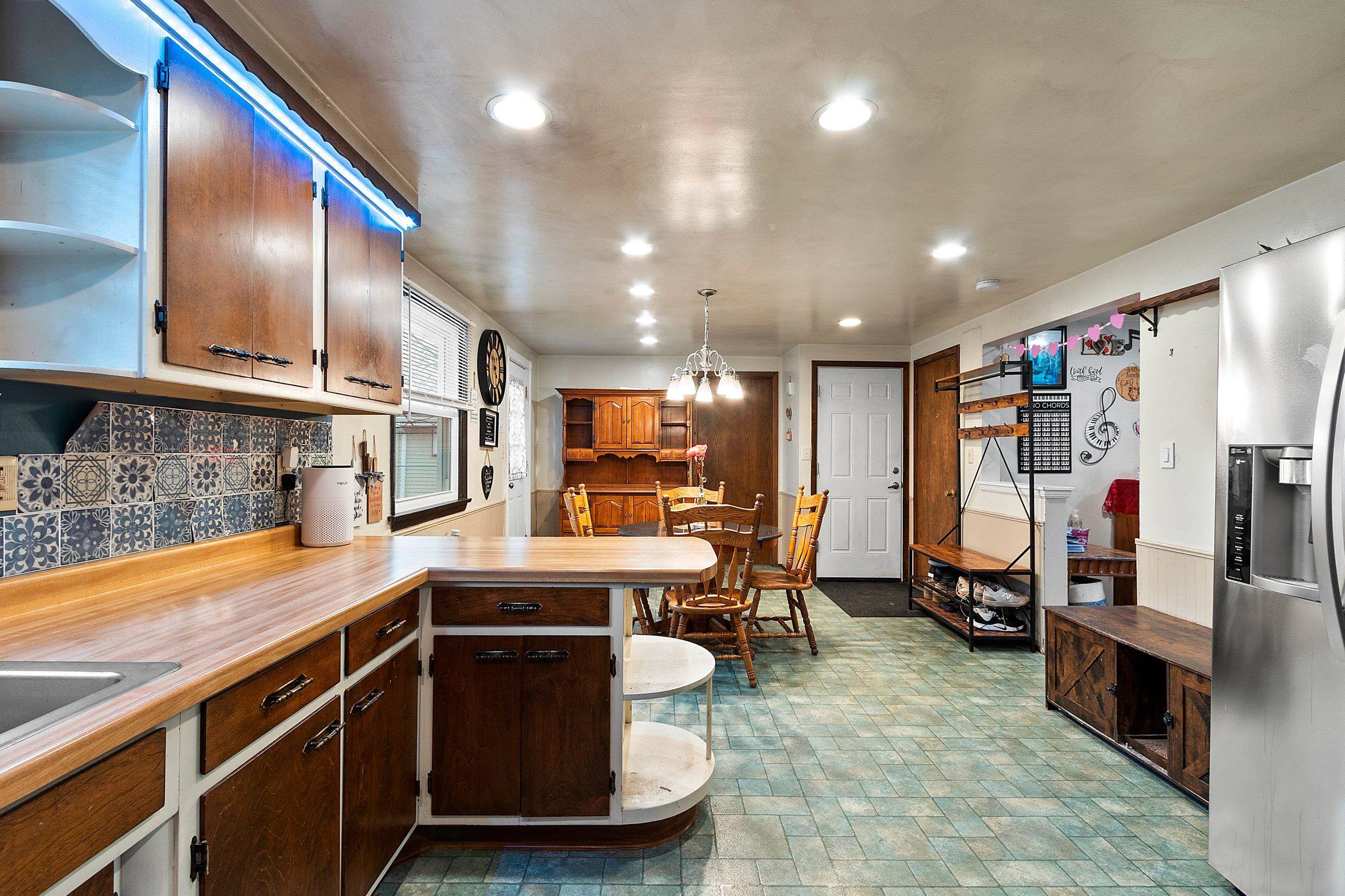 3 Bed, 1 Full Bath just steps away from Packer District- You will not want to miss this one! Spacious Front Liv Rm, Large Open Kitchen & Dining- Back door leads to Fenced in yard- Patio w/ pergola, storage shed (was built out of the old Lambeau field bleachers) SS Kitchen Appliances Included, Large Lower Rec Rm w/ Bar.