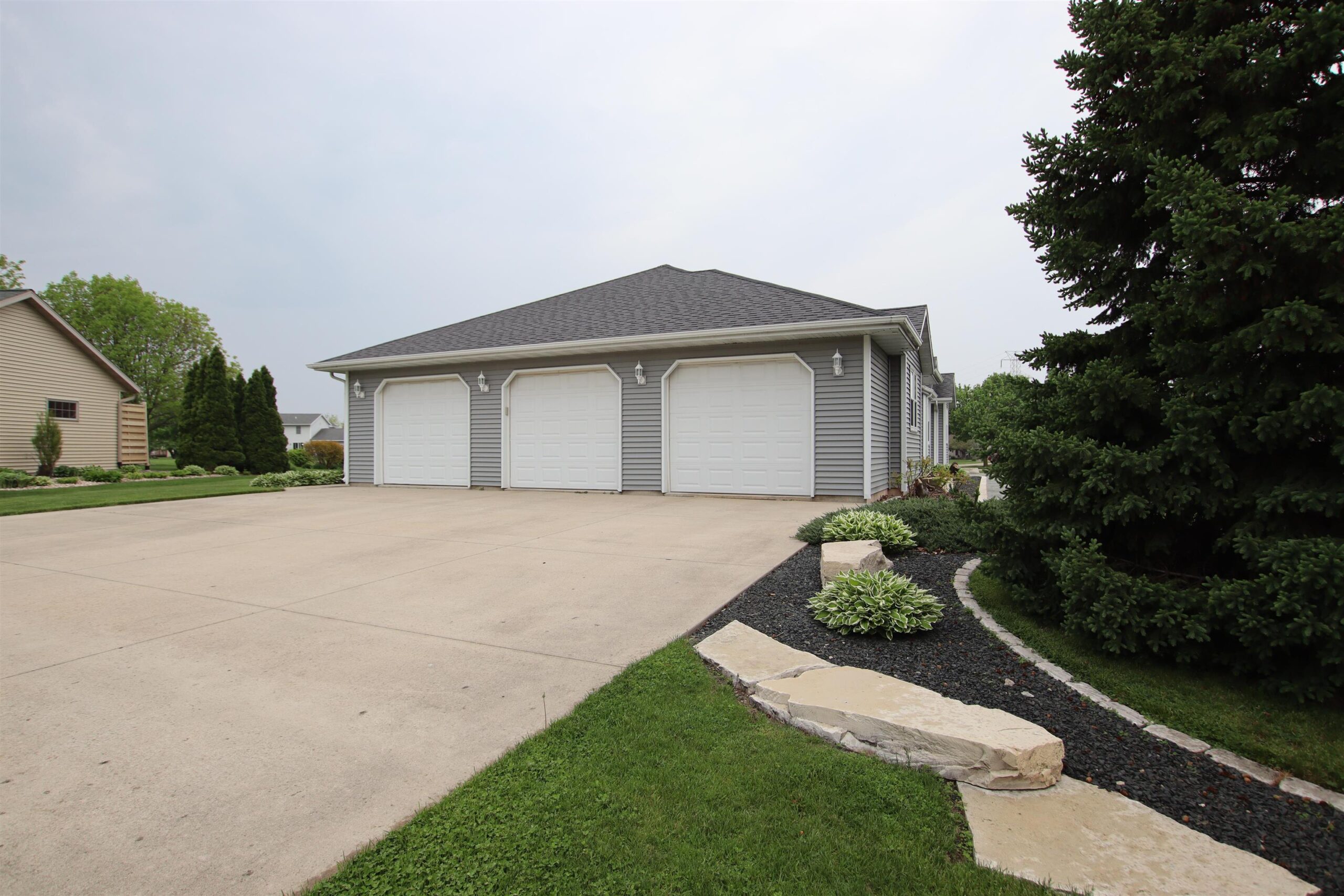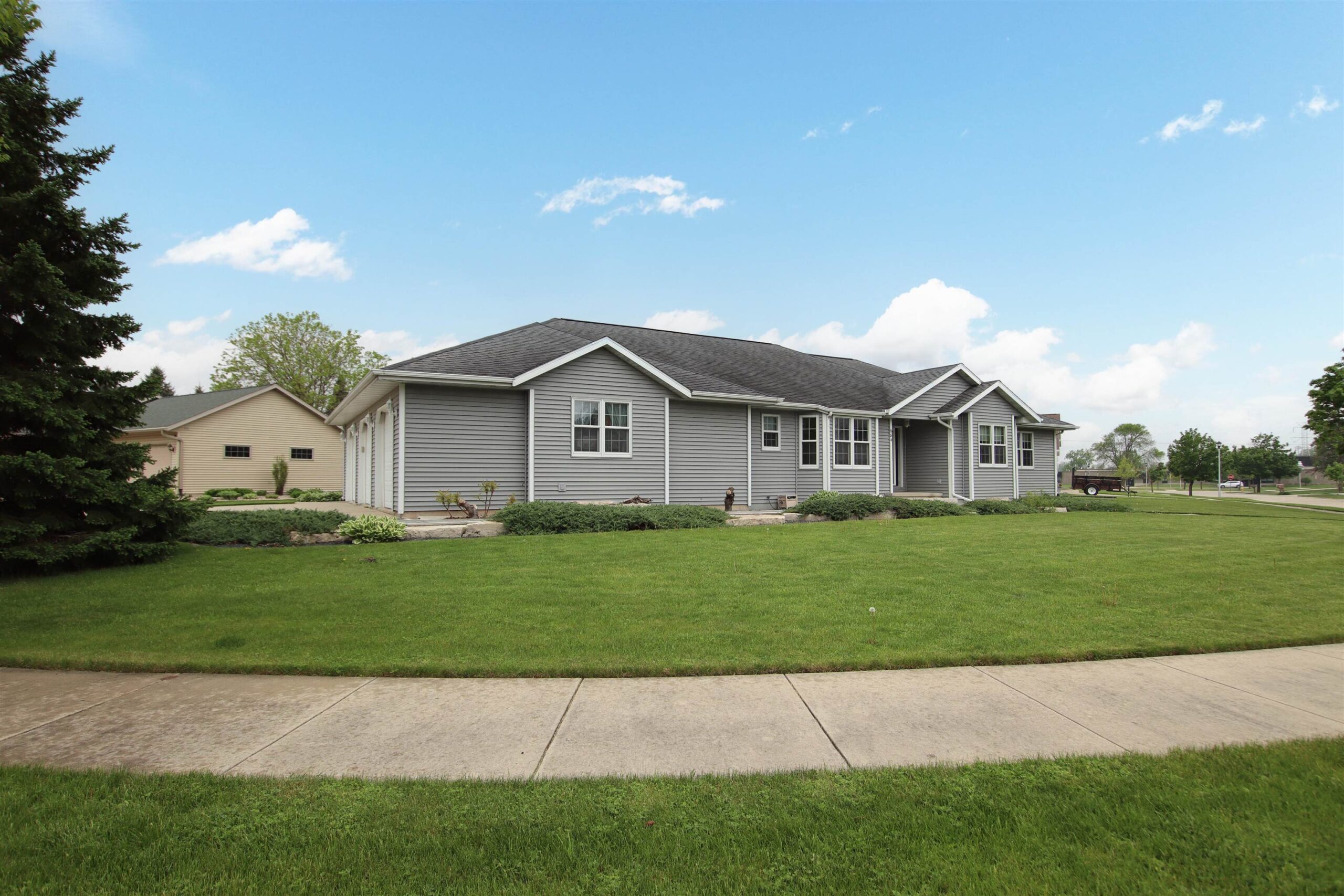 Spacious NE Ranch located just steps from Lakeshore School, Lakeside Park, and Festival Foods! This classy home offers an easy layout for living. Front door opens to foyer & sunny backyard views. Great room has gas fireplace trimmed in stone. Kitchen features cherry cabinets w/ large peninsula. Patio doors lead to the outside entertaining space w/ intimacy of your own yard & the sense of community that comes from being part of a neighborhood. Other features including 3 bdrms w/ potential of a 4th, main floor laundry, private master suite w/ walk in closet. Lower level has a huge rec room area w/ tall ceilings, additional office/work out/hobby space large 3 car garage & storage galore. 1/2 BA in lower needs ceiling. Showings to begin 5/20. Buyer to confirm sq. ft., if material.