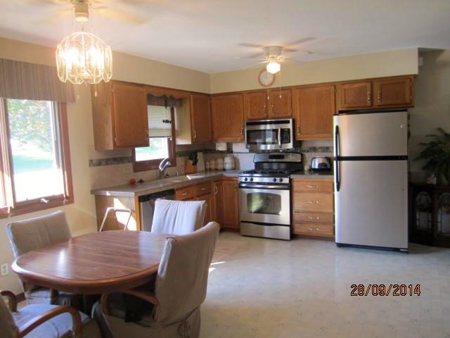 Better than NEW Ranch w/GREAT LOCATION! Close to schools, pool, clinic, dntown, Lake,Bike Tr, 15 mins to Madison. Lot is .32 acre, backs up to hills of country! Huge Updtd Kitch w/New cabinets, countertops, stainless steel appl,Lg LR w/sim Wood Flrs, Deck off LR overlooking beautiful landscd yd. LL has walk-out, ready to be finished,w/bath hookup. Outside is 2 Brick Patios w/electrical hookup for entertaining day/nt. Several flowers,strawb patch,asparagus, rhubarb. Quiet Street, Great Neighbors! DON'T WAIT!