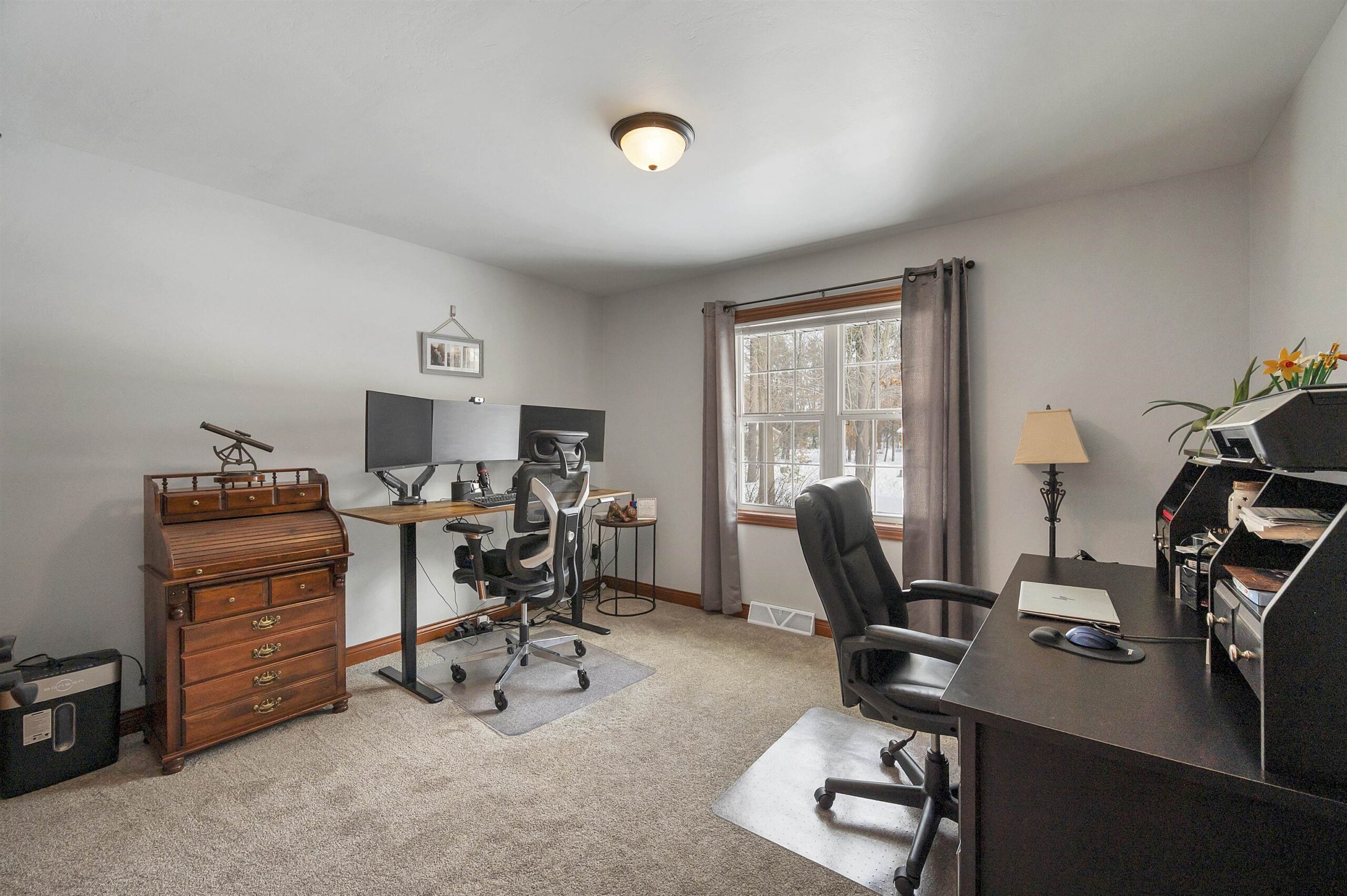 Beautiful split-bedroom ranch situated on 1.5 sprawling acres in the well-desired town of Little Suamico. This 4-bedroom home features an airy, open floor plan highlighted by newly stained wood flooring and a large kitchen with a walk-in pantry. The spacious primary suite offers vaulted ceilings, a large walk-in closet, and a private ensuite with dual sinks for convenience. Downstairs, the finished basement adds a massive rec room, a fourth bedroom, a half bath, and a versatile flex space. Basement also features a separate climate control for extra comfort. The property also features a detached 30x30 garage with an oversized 12x16 door, providing ample space to accommodate all of your recreational vehicles or additional vehicles.