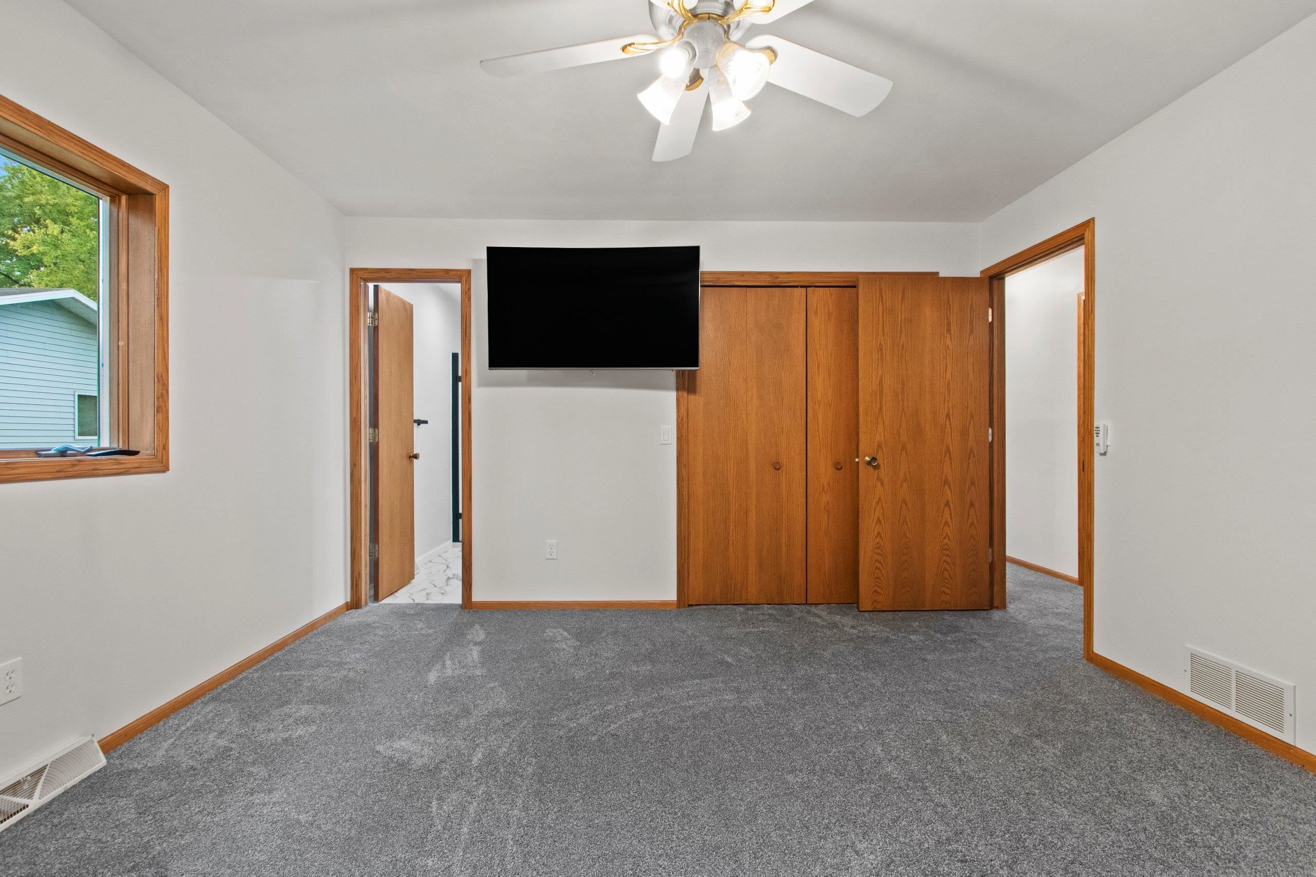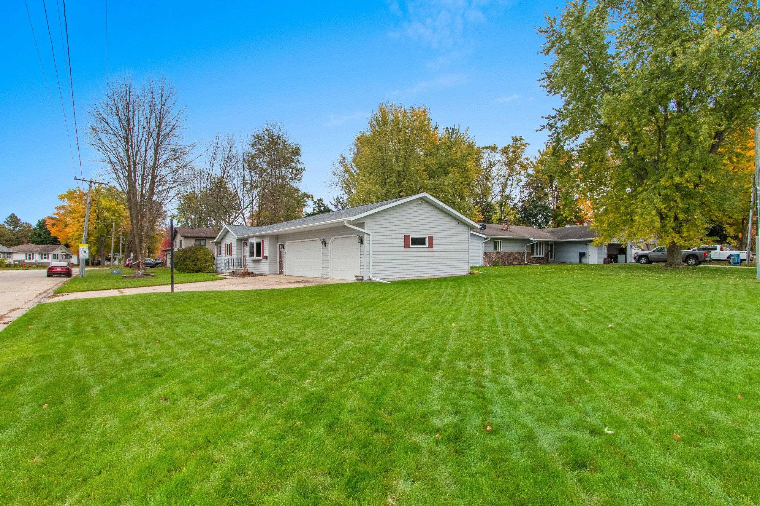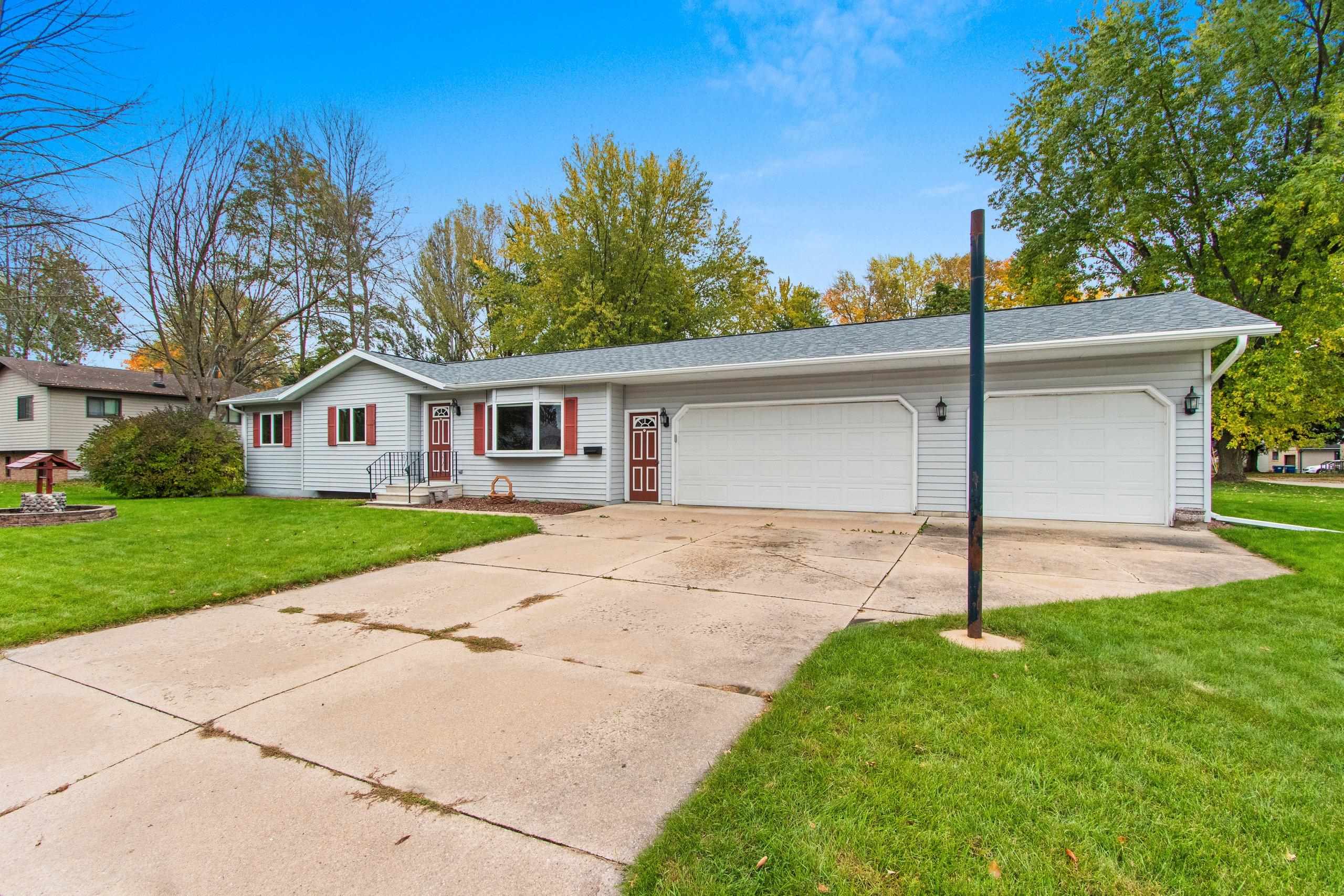 Rare find! Updated ranch home with a 3.5-stall attached garage, located within walking distance to schools and parks. This one-owner home offers 3 bedrooms, 3 baths, a finished lower level with office, and a spacious side yard. The primary suite features a tiled shower and new vanity, and recent updates include roof and gutters (2021), furnace, A/C, and water heater (2017), new garage doors, new carpeting throughout (2025), and fresh interior paint. An electric car charger is also installed in the garage. All appliances are included, and pride of ownership shows throughout—move-in ready!