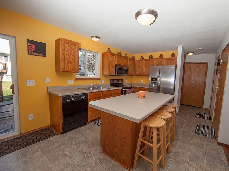 Quality built, lovingly cared for home is move-in ready! 2013 updates include: Refinished kitchen cabinets; new Stainless Steel refrigerator, glass top oven, & microwave; under cabinet lighting; cherry laminate flooring & custom white faux wood blinds in living room; blinds in upstairs bedrooms & downstairs bath; painted entire interior of home; new washer & dryer; stained deck; new garage door opener; professionally landscaped. Finish basement to fit your lifestyle. Near park, shopping, & golf course.