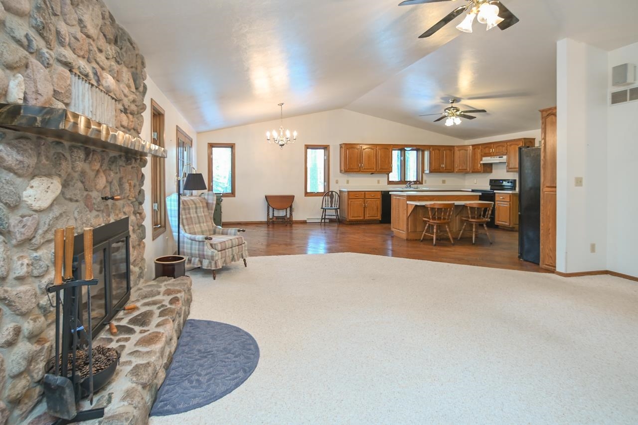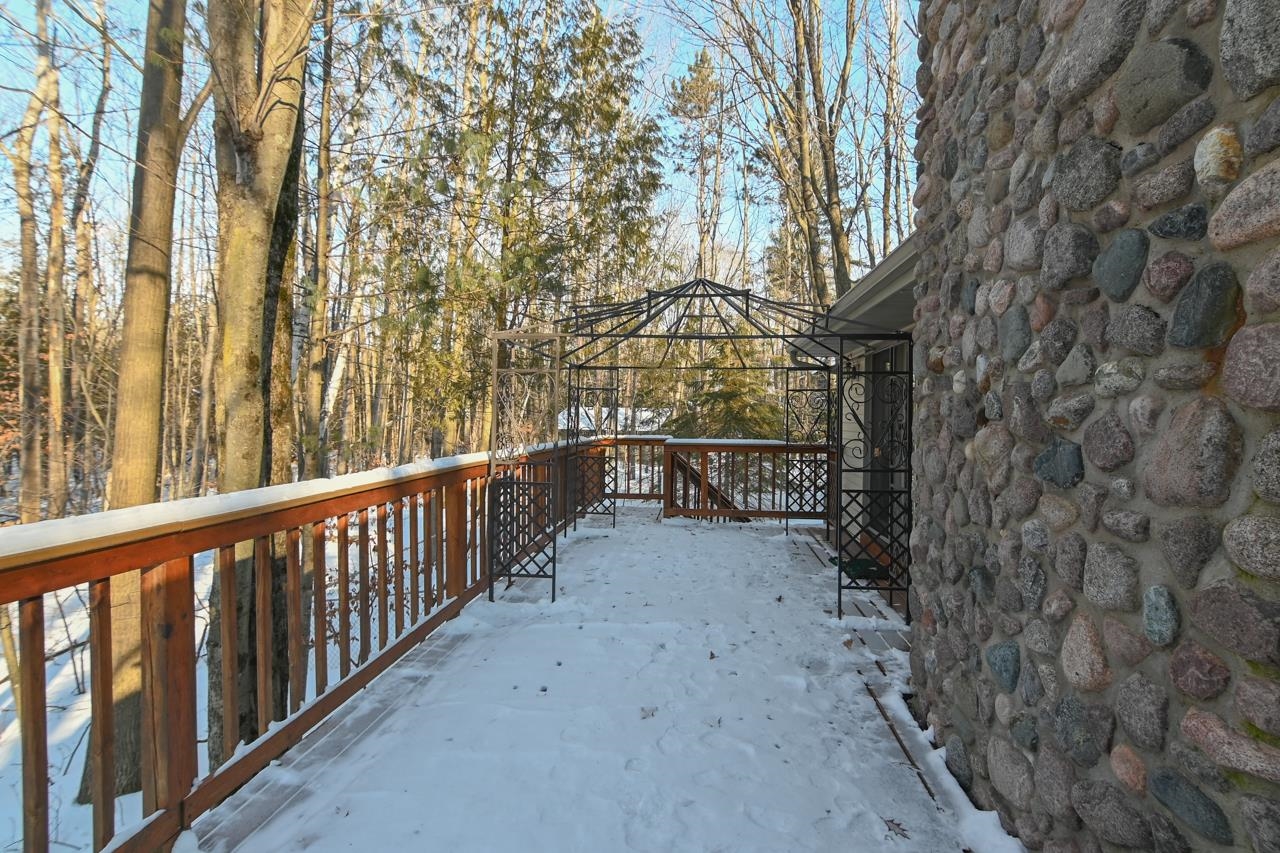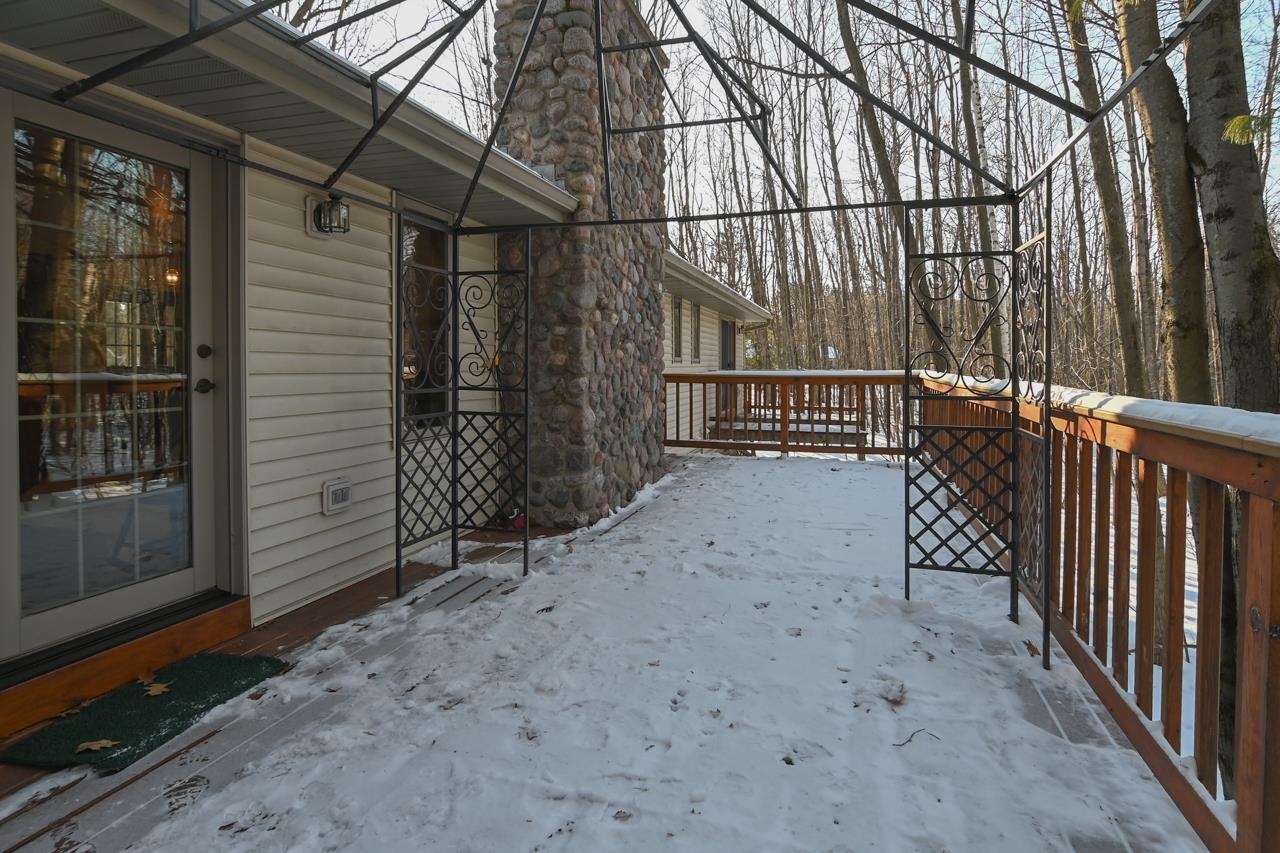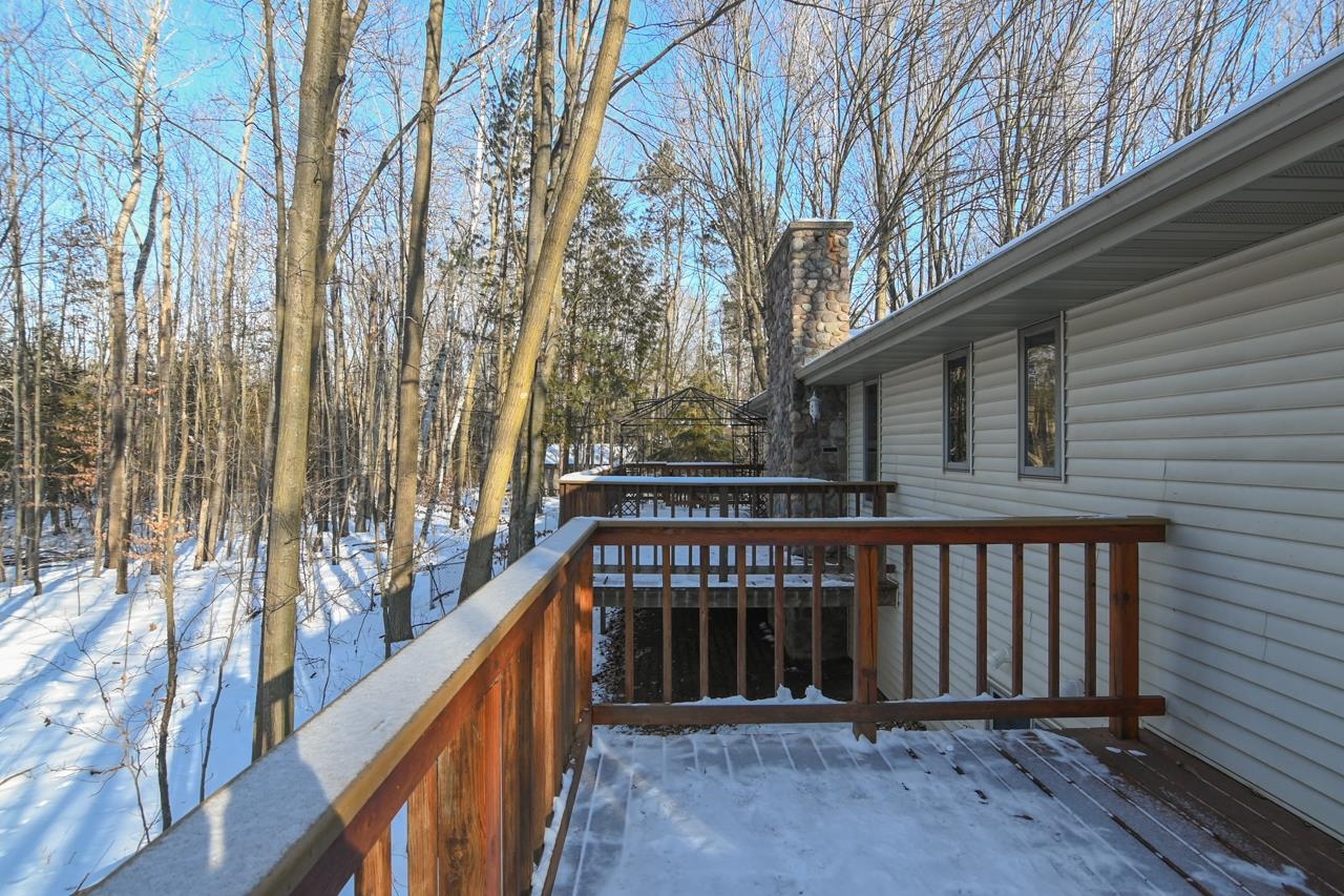 Exceptionally clean one owner 3 bedroom 2 bath ranch home. This home sits on a 3.66 acre wooded lot in the Pulaski School district with convenient access to both Green Bay via Hwy 41 and to Pulaski. The home features an open concept kitchen and living room with wood burning fireplace. Views overlook an elevated deck facing the wooded backyard. The mud room greets you as you enter from the 3 stall garage. The master suite features a private bath and your own personal deck. The full basement is accessed from the garage and could be converted to a living room, game room, etc. Wildlife sign greets you as you walk behind this home and there is also a fenced in area for your pets! Call today for your showing of this exceptional property