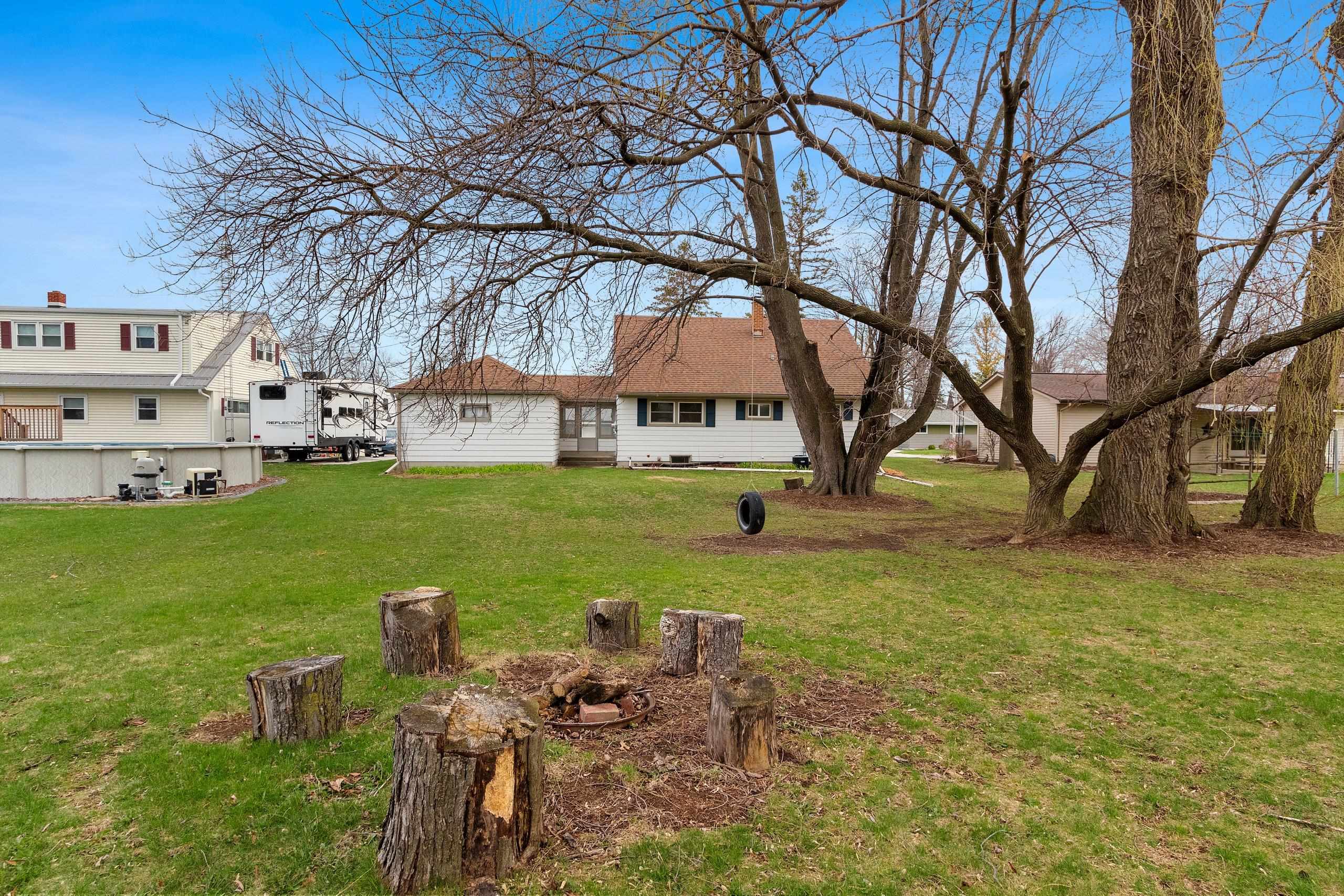 This updated 3BR 2BA on a double lot has it all & more! The main floor features living room, kitchen, 2 beds & a full bath. Bed #3 & a flex space are located on the second floor. On the lower level, you'll find a massive family room with egress window, walk-in closet, full bathroom & another flex space complete with wet bar. Basement has great potential to be utilized as a 4th bedroom/primary suite. The backyard boasts a sprawling green space, complete with mature tress w/tire swing! This spacious 1.5 story is located within walking distance of the Hilbert Public School & just a short drive from all of your Fox Valley amenities! 2nd parcel number 13148. Tax Amount accounts for both parcels. LL has painted concrete block walls.