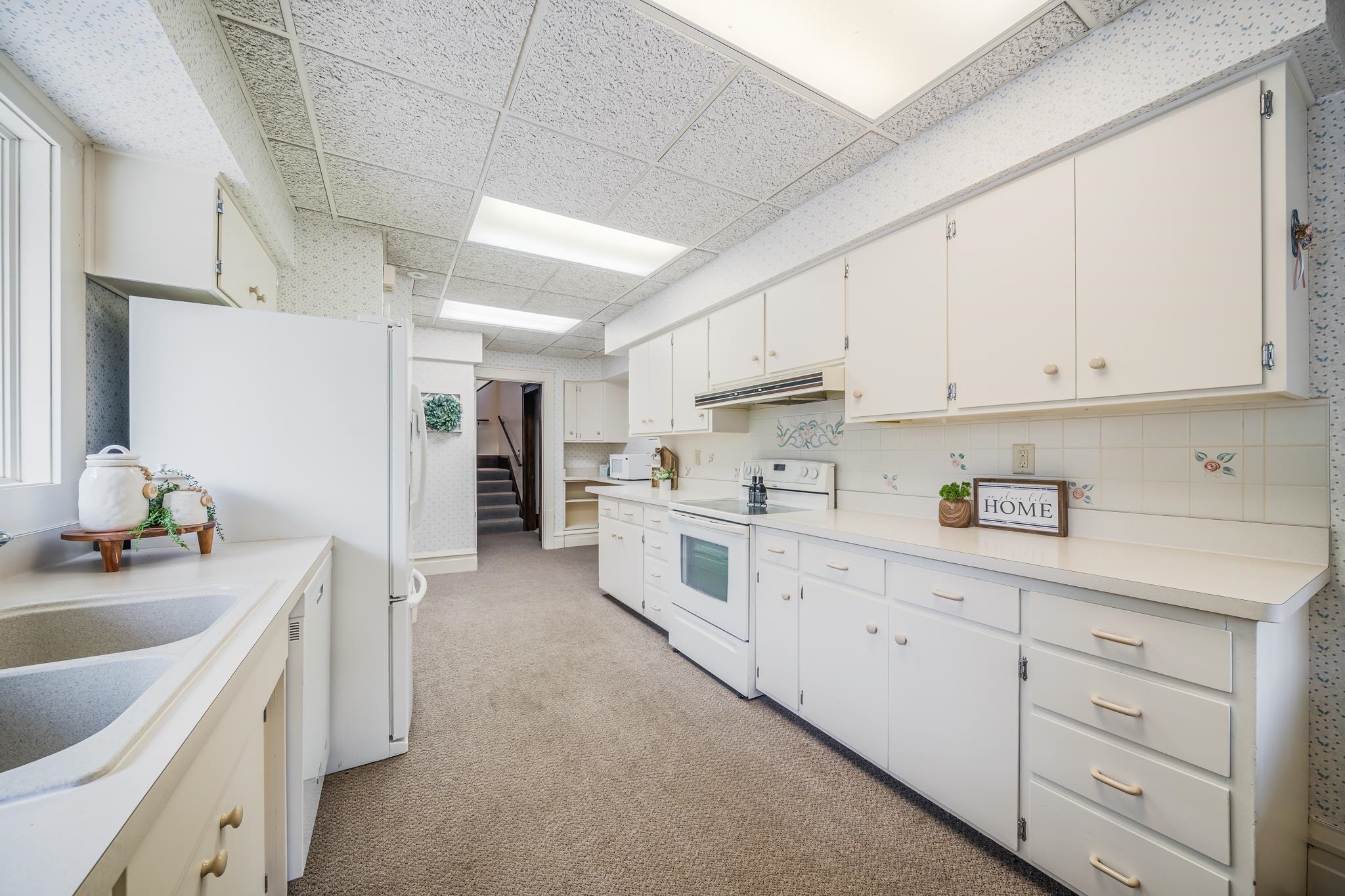 Oven/range, refrigerator, dishwasher, refrigerator in basement, dining room table/chairs, hutch