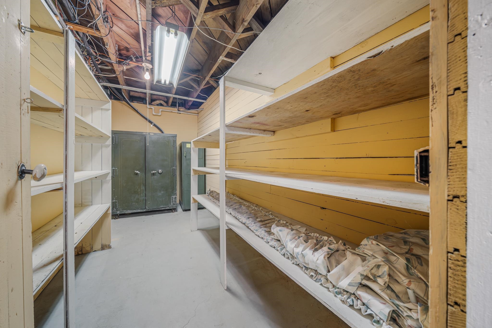 stackable washer/dryer on main levelsafe and file cabinet in basement.