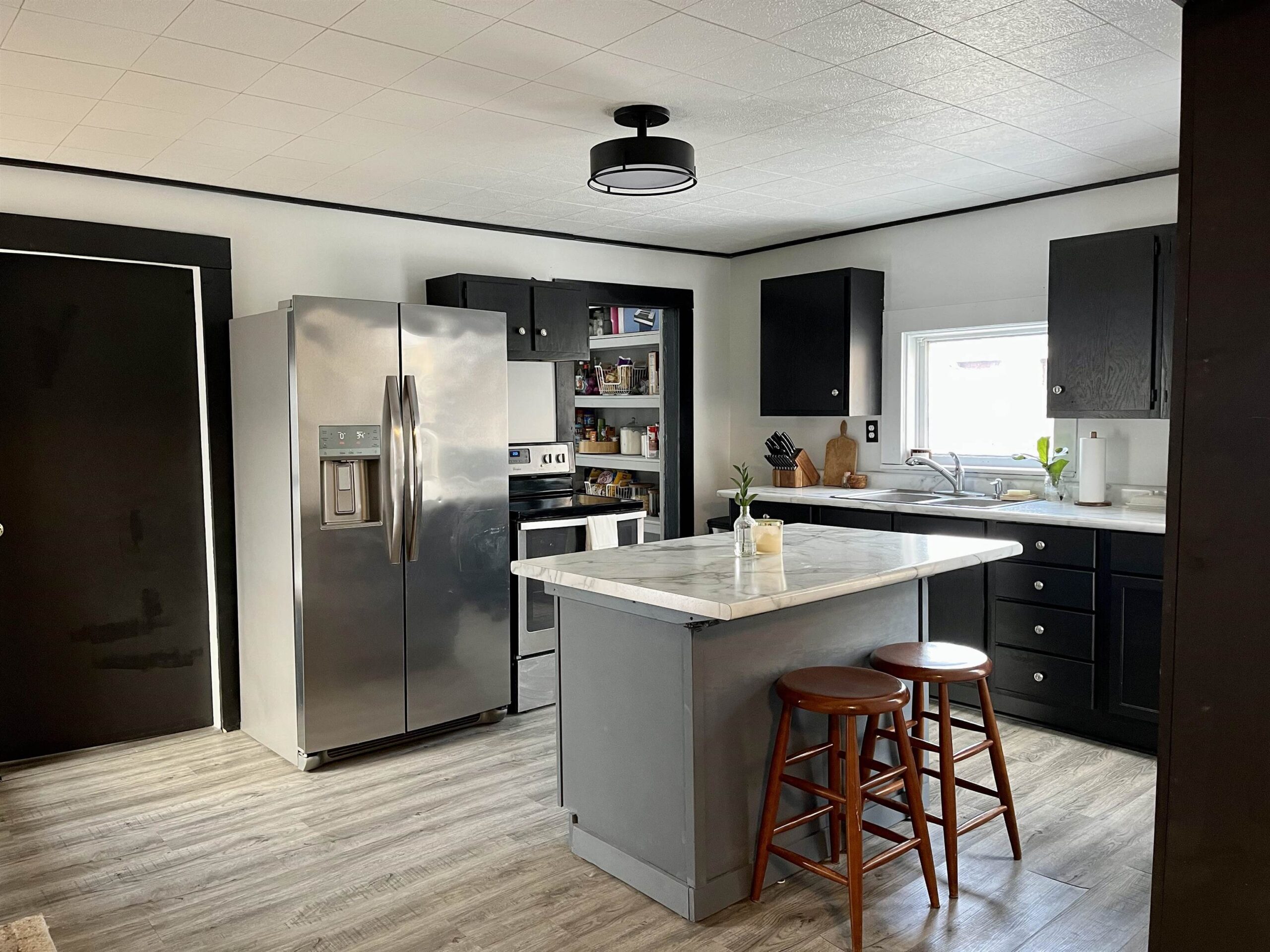 Nicely updated 3BR, 1BA home located in the City of New London! This inviting property offers a freshly painted int. new flooring & several new windows. The main level features a lg. ba., conv. main-floor laundry & spacious pantry/utility rm. for added storage & functionality. Enjoy relaxing in the enclosed front porch/ entertaining on the patio. Upstairs, the generously sized primary BR offers great potential for a future WIC. The home also inc. a detached 2 car garage & is situated in a very convenient location close to local amenities. Please note the home is located in a floodplain. At closing, approximately 675 sq. ft. of land will be purchased by the NL PD-lot size on the spec sheet, reflects the adjusted parcel size. Seller to provide 14 mo. home warranty for buyer up to $625