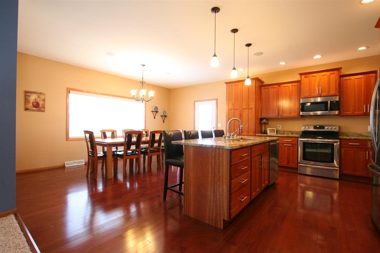 Custom built 4 br ranch home situated on a 1.24 acre hilltop lot! Beautiful finishes and a spacious, open concept floor plan. Kitchen features maple stained cherry hardwood floors, stainless steel appliances, granite counters and gorgeous cherry cabinetry plus a massive dining area with patio doors leading to the maintenance free deck! Master suite has spa bath and a huge walk-in closet! Lower level 4th br & family room, plus 1000 square feet, ready to finish with full walkout and large windows. 3+ car gar!
