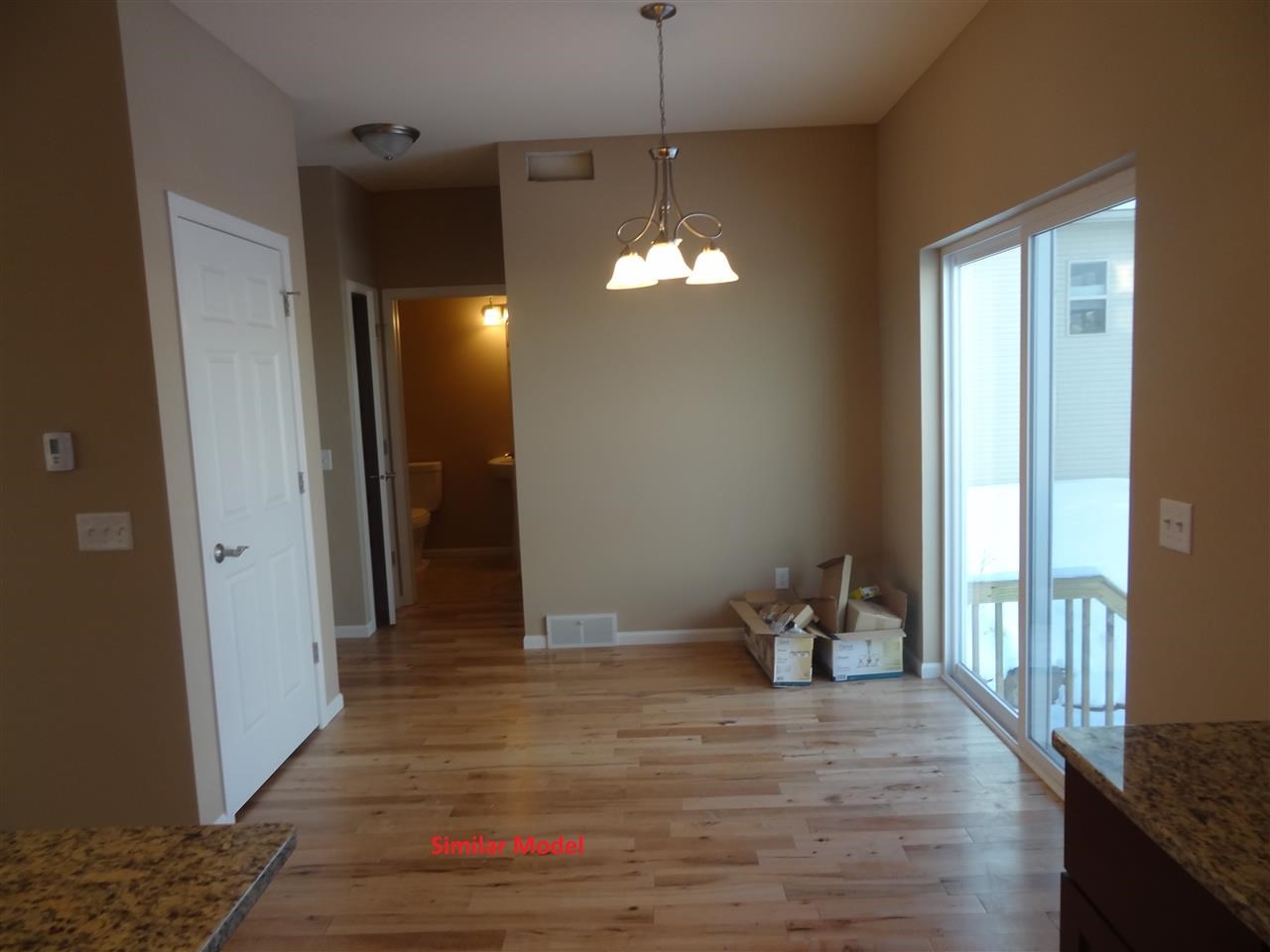 House currently under construction.Finish date of approx June 15th. 250' away from great Glaciers Edge Elementary School! Open 2 story floor plan with 9' tall 1st floor ceiling, tray ceiling in master bedroom. Granite countertops included. Hardwood flooring throughout 1st floor. Amish Custom Cabinets, 6 panel doors, first floor laundry/mud room. Extra 8x13 storage in garage. Both upper baths has double bowl sinks. Window well for future bedroom in basement. Still time to customize some selections.