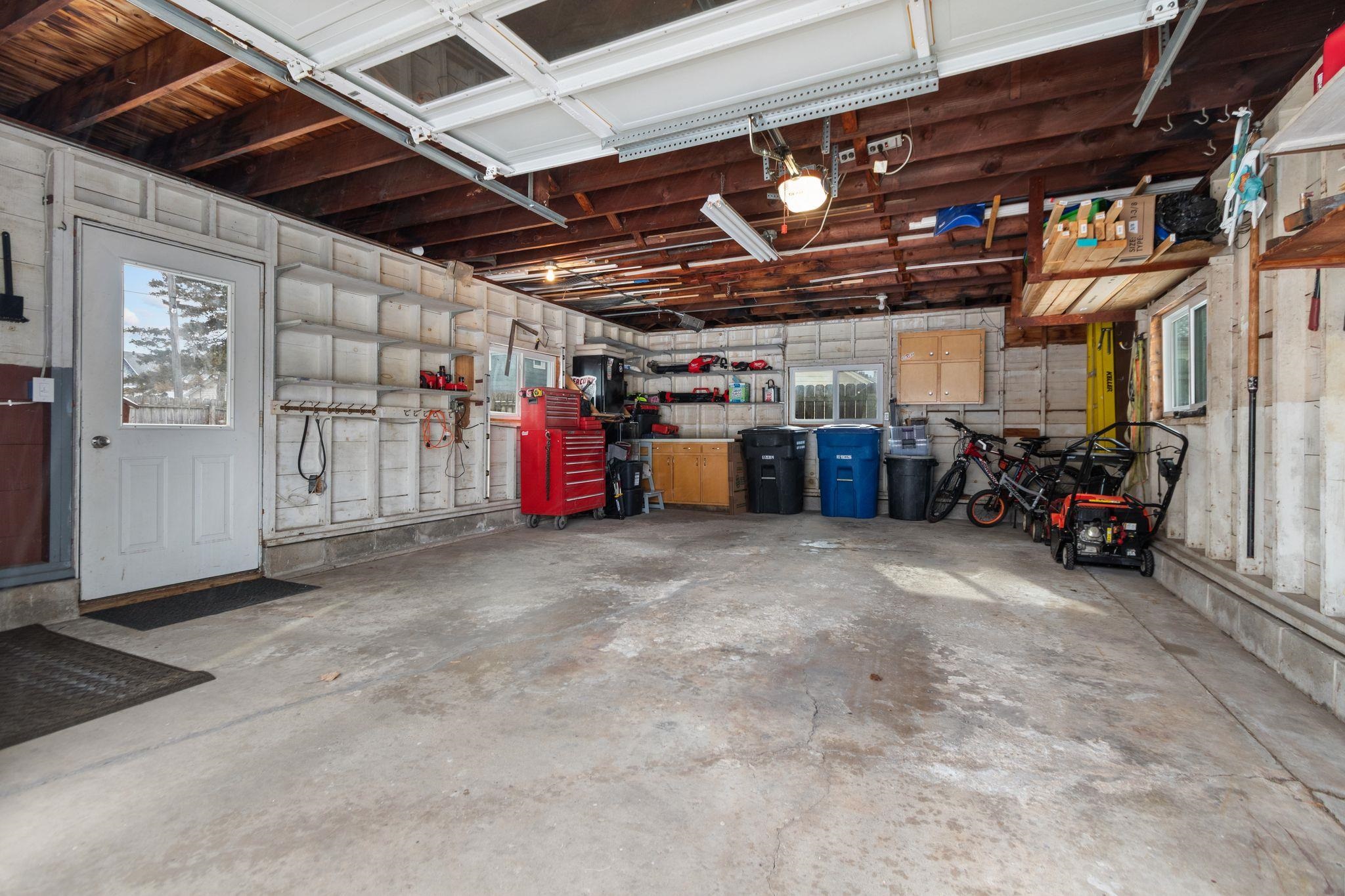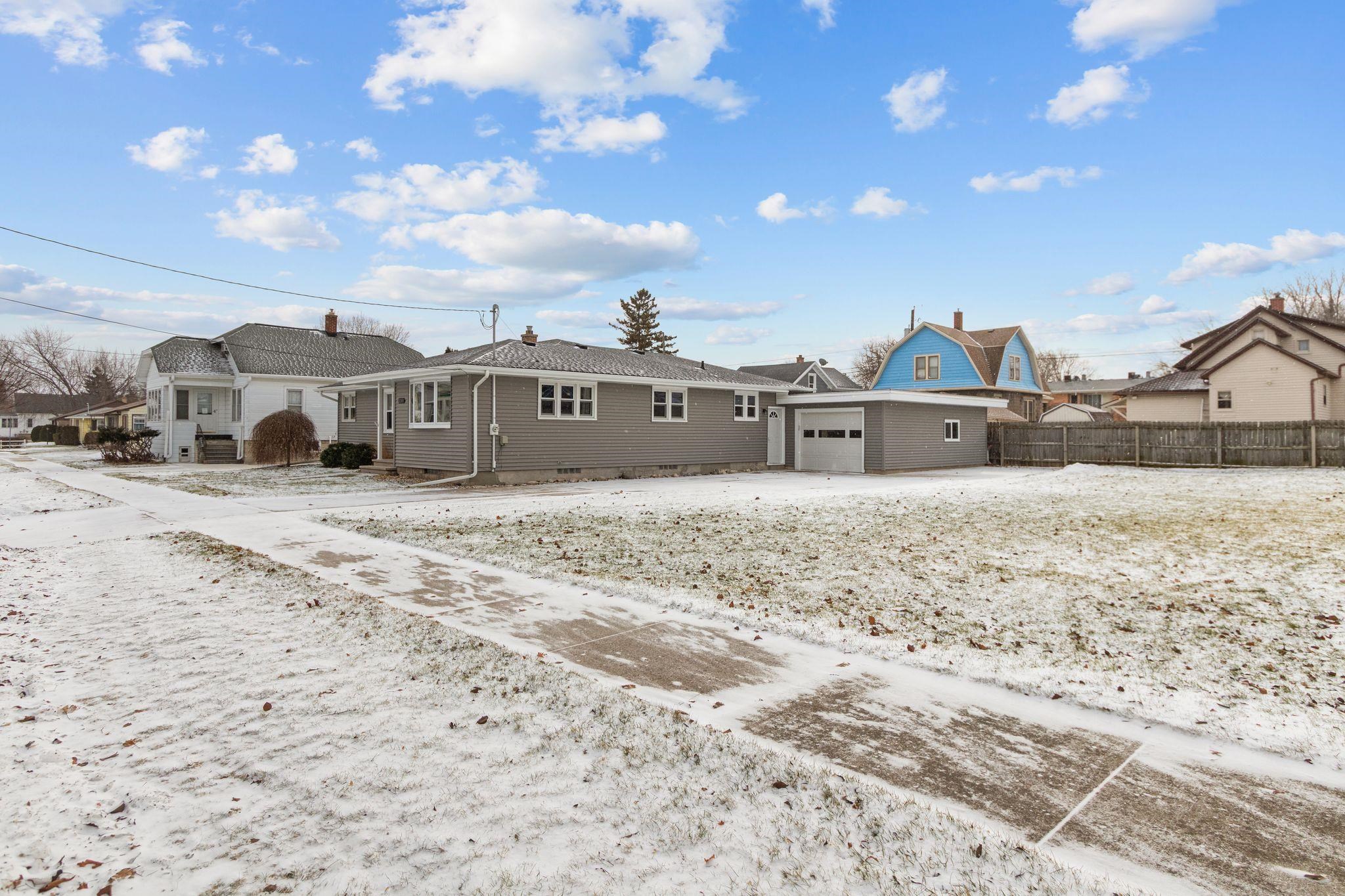 Welcome home to this adorable ranch that blends comfort, space, and natural light in all the right ways. The oversized kitchen is a true standout-bright, open, and perfect for everyday living or entertaining with a sliding door leading directly to a cute, fully fenced backyard ideal for relaxing, pets, or summer gatherings. The main level offers three comfortable bedrooms, one full bathroom, and a cozy living room filled with beautiful natural light. Downstairs rec area's ceiling is unfinished but adds valuable bonus space and includes a convenient half bath, perfect for a rec room, hobby area, or future finishing ideas. An attached garage adds everyday ease, while the double lot provides extra outdoor space and flexibility rarely found at this price point. Welcome to your charming home!