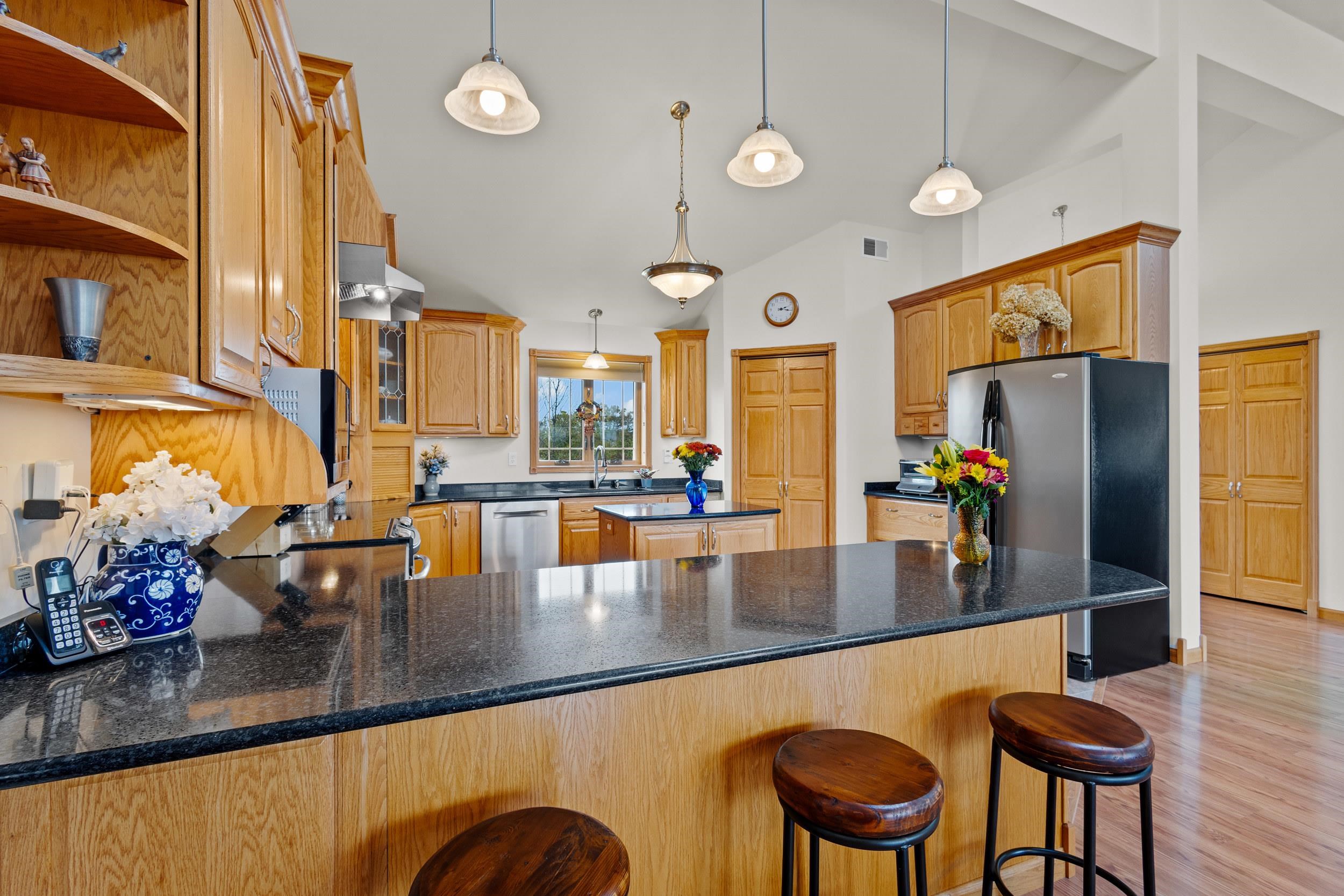• FeaturesAir Exchanger System, At Least 1 Bathtub, Gas, Hi-Speed Internet Availbl, Kitchen Island, Pantry, Split Bedroom, Two, Vaulted Ceiling(s), Walk-in Closet(s), Walk-in Shower, Water Softener-Own, Wet Bar, Wood/Simulated Wood Fl