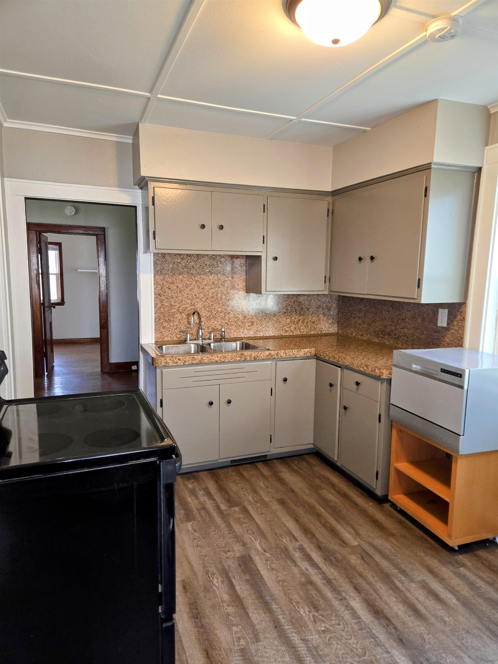Range, refrigerator, table top dishwasher, washer, dryer, shed
