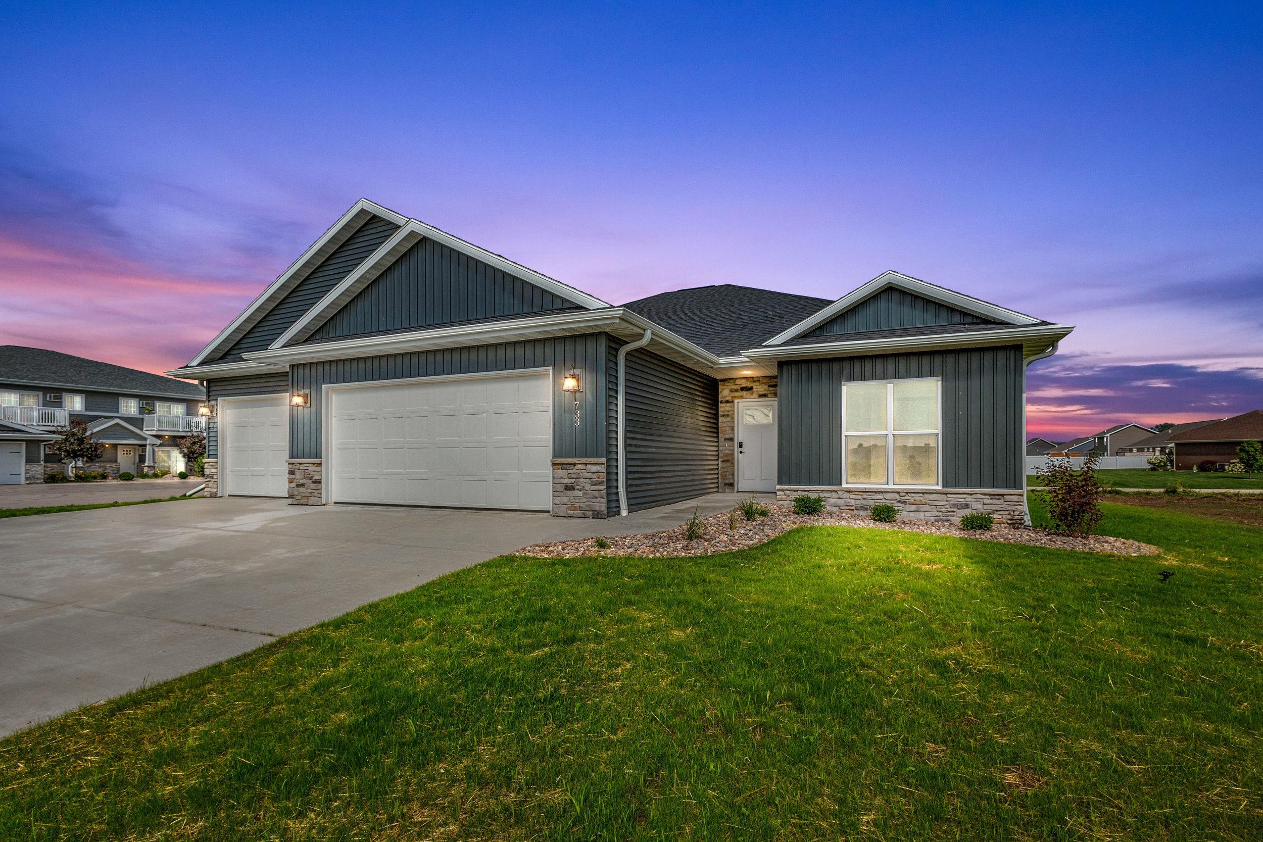CONDO MLS#50322420 This classy 2 bedroom, 2 bath condo offers tons of space for entertaining or relaxing! The kitchen has beautiful custom Flint stained maple cabinets. Carrara Trigato Quartz countertops & Groove Glossy Funk Beige tile backsplash complete this elegant look. Paramount First Light LVP flooring can be found throughout main living areas. Relax next to your 50" Simplifire Allusion Platinum Linear Electric Fireplace surrounded by Precision Fit Alpine stone. The primary bedroom is a retreat with dual entry into the attached primary bath. Monthly association fee is $175.00. Basement offers full bath rough-in and egress window for future expansion. Lawn and shrubbery complete this package of maintenance-free living!