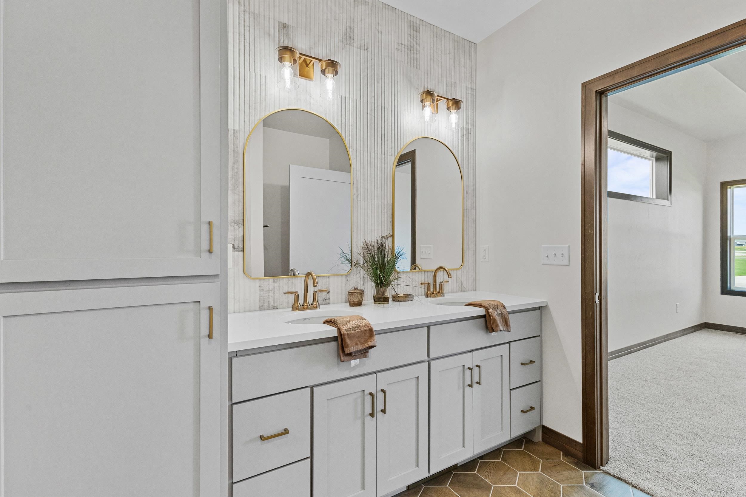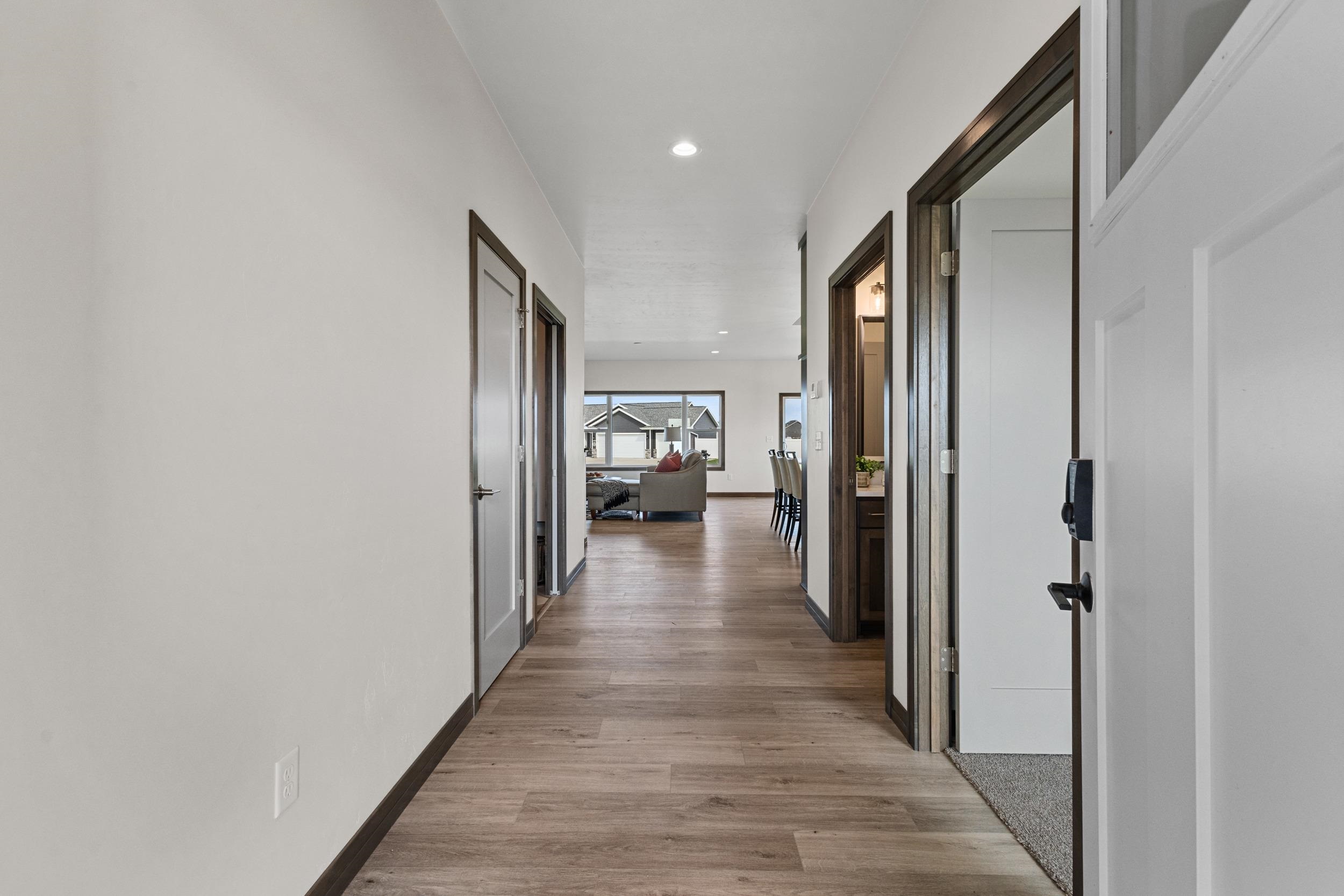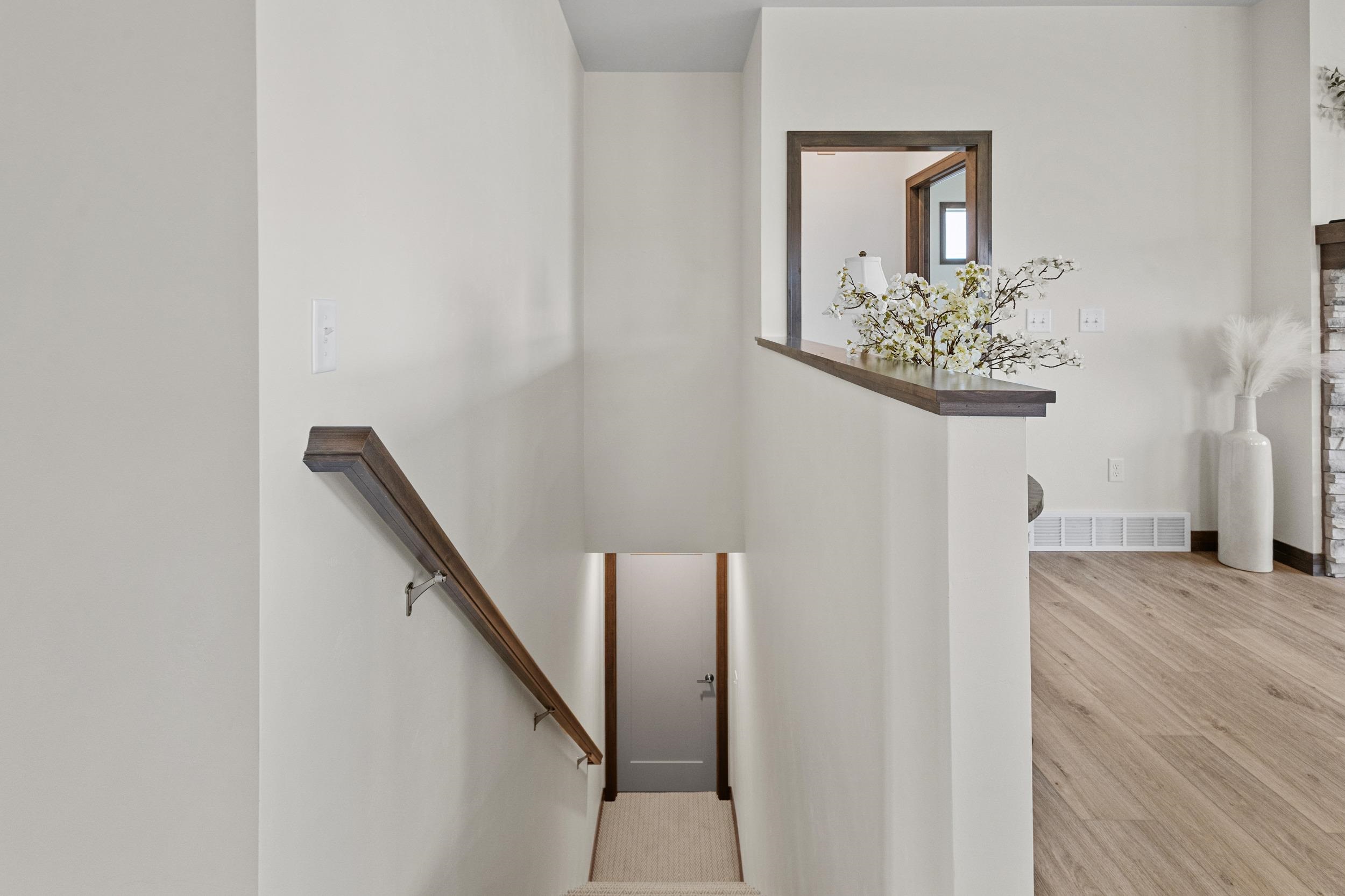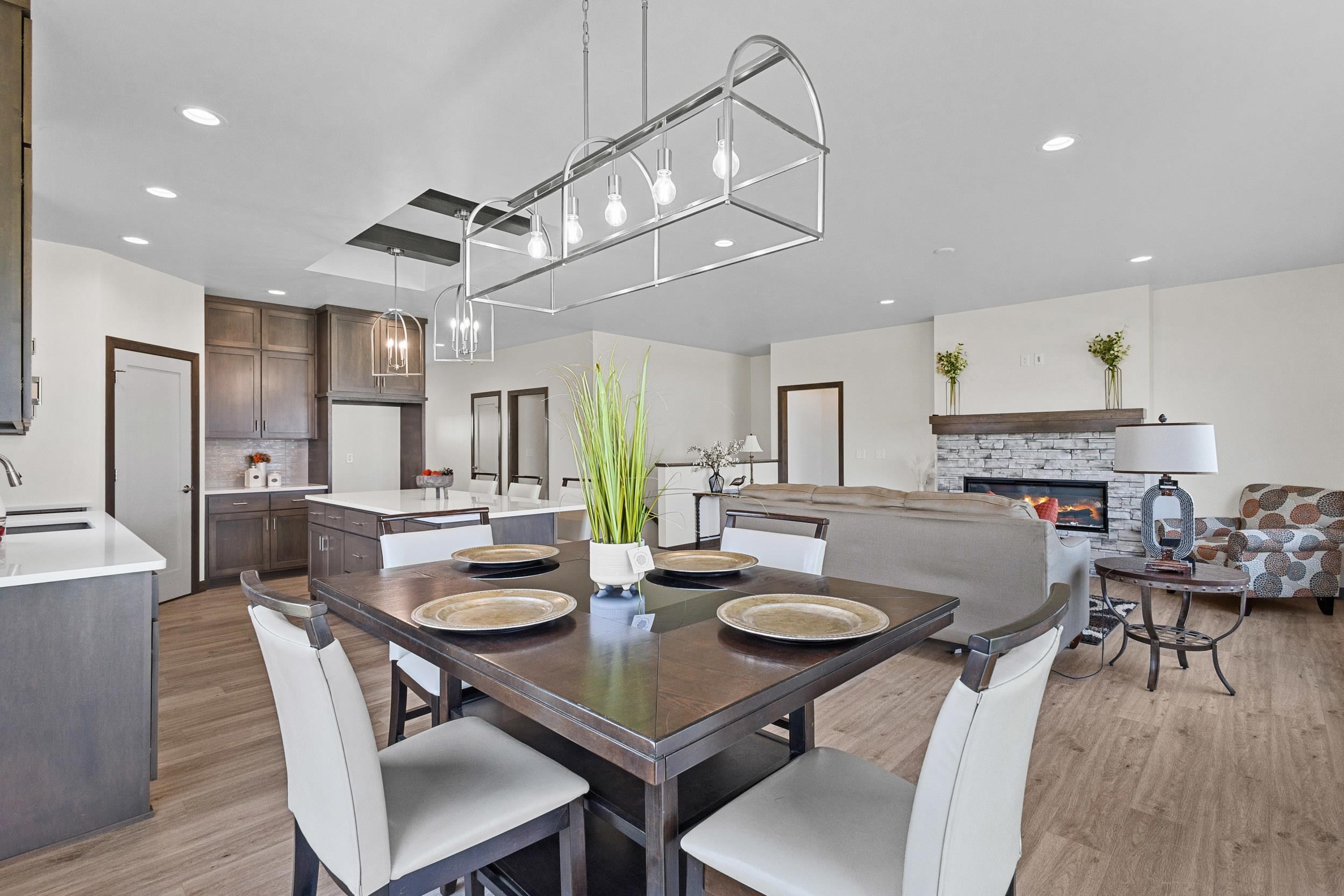 CONDO MLS#50322420 This classy 2 bedroom, 2 bath condo offers tons of space for entertaining or relaxing! The kitchen has beautiful custom Flint stained maple cabinets. Carrara Trigato Quartz countertops & Groove Glossy Funk Beige tile backsplash complete this elegant look. Paramount First Light LVP flooring can be found throughout main living areas. Relax next to your 50" Simplifire Allusion Platinum Linear Electric Fireplace surrounded by Precision Fit Alpine stone. The primary bedroom is a retreat with dual entry into the attached primary bath. Monthly association fee is $175.00. Basement offers full bath rough-in and egress window for future expansion. Lawn and shrubbery complete this package of maintenance-free living!