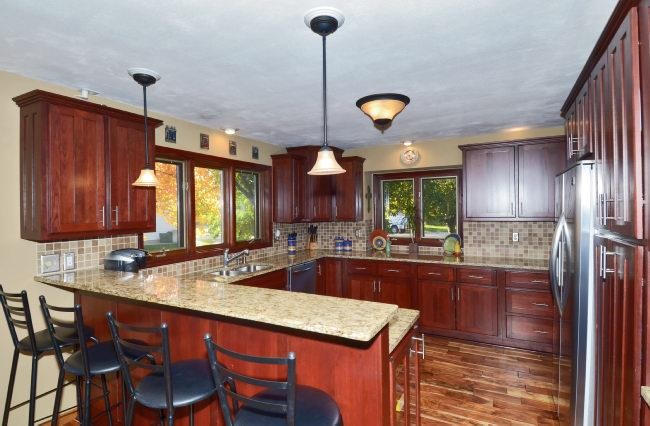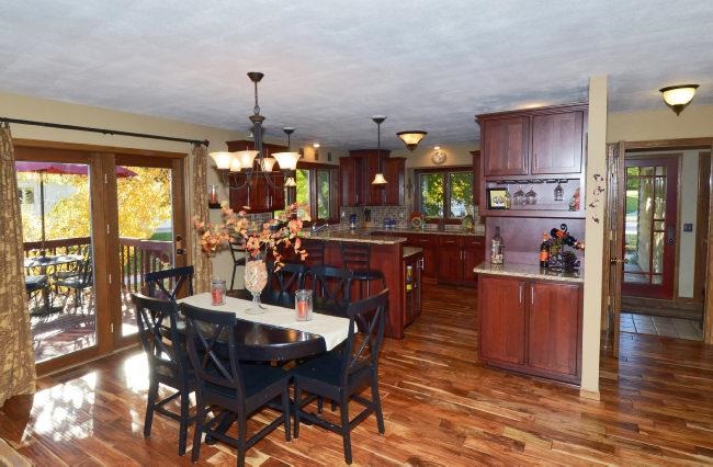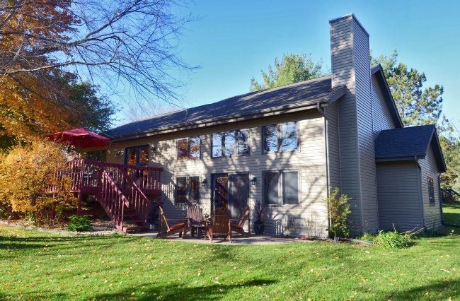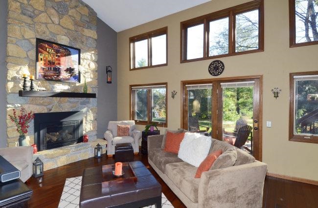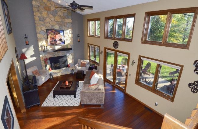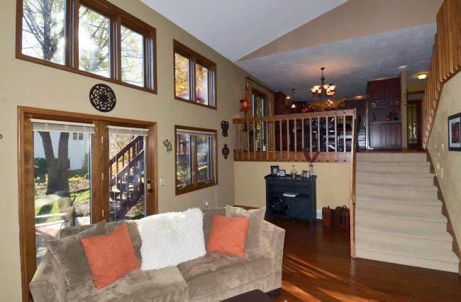 Middleton Schools! Stunning, soft contemporary with a striking natural exterior of wood and stone and a dramatic 2 story stone fireplace with a new high efficiency gas insert. Designer kitchen remodel in 2008 featuring granite counters, cherry cabinets, stainless appliances and Brazilian Walnut floor. Free flowing open floor plan with floor to ceiling windows and Strand Bamboo floor in LR. Meticulously maintained and updated with use of quality materials.