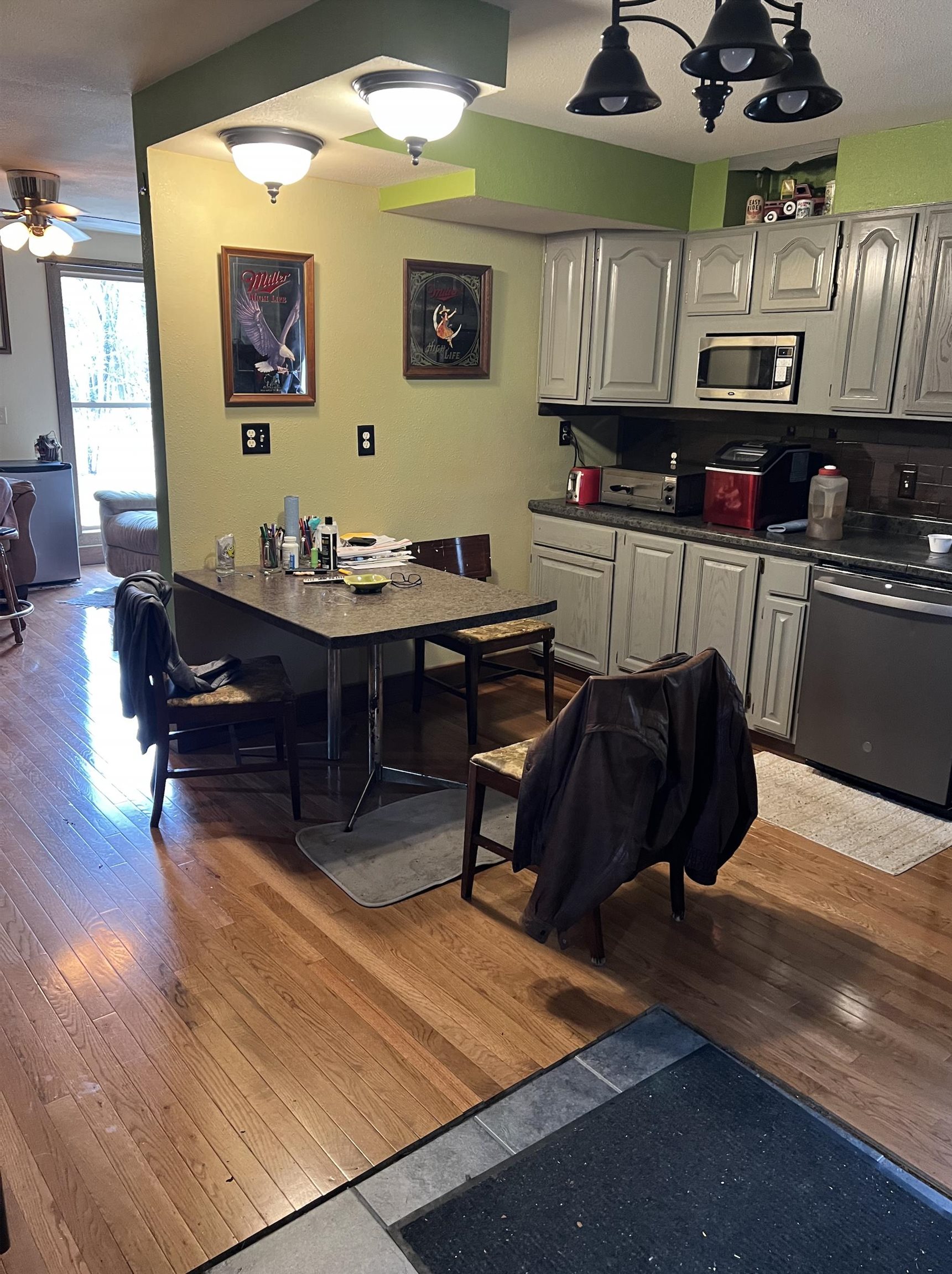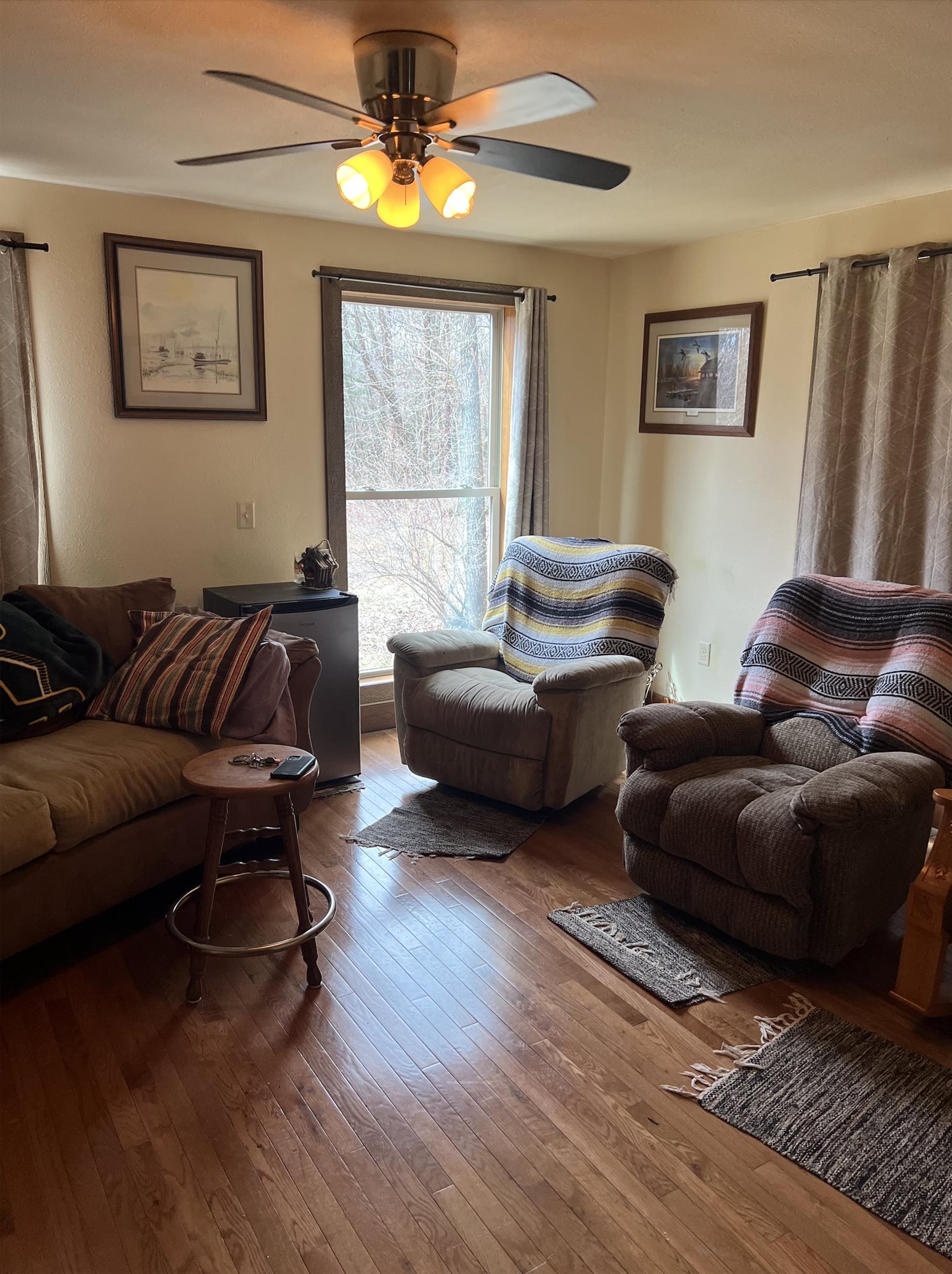 Tucked on 1.88 acres of wooded privacy, this well-built 2018 home offers 900 sq ft of efficient living with hardwood floors, a spacious kitchen, and all appliances included. Enjoy peaceful surroundings with mature trees, natural beauty, and easy access to Hwy 54, just 15 minutes to Waupaca or Stevens Point. A 3 stall garage built in 2008 provides incredible space for storage, hobbies, or projects. Property may be sold fully or partially furnished, including tools, equipment, and outdoor items, or cleared per buyer preference. Being sold as is. A rare opportunity to own a private, versatile retreat with room to work, relax, and enjoy nature.