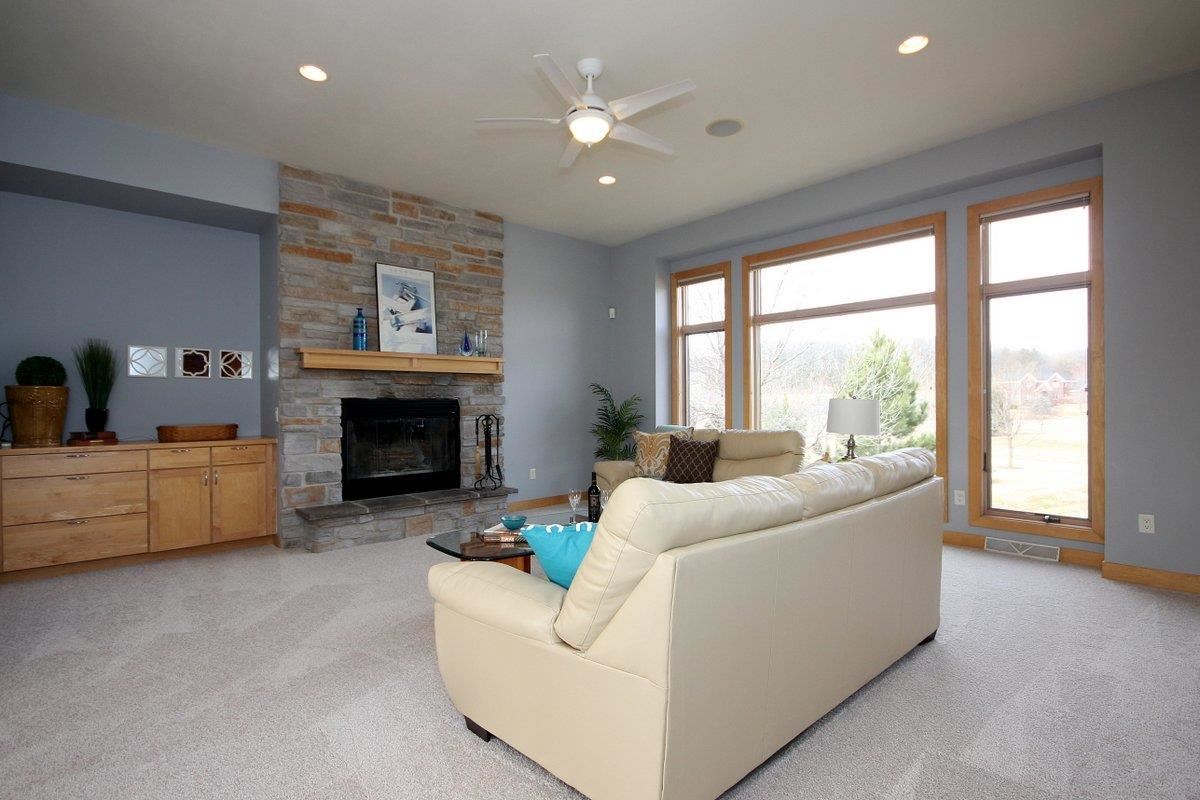 Spectacular transitional ranch on 1 acre backs to greenspace! Gorgeous views & yard! Stunning GR w/floor to ceiling stone FP, walls of windows! Gourmet kitchen w/ pantry, wd flrs, stainless appls, island w/bkfst bar, cherry cabs & granite counters! Lg. Dining area overlooks fabulous yard! Deck & screen porch! Great mstr suite w/walk-in closet, luxury Bath & door to Scrn Porch! 2 addn. ML BRs w/ full Bath! Walk-out LL w/huge rec rm w/ wet bar, wood floors & stone FP! Office, BR4, Theater Rm & full bath!