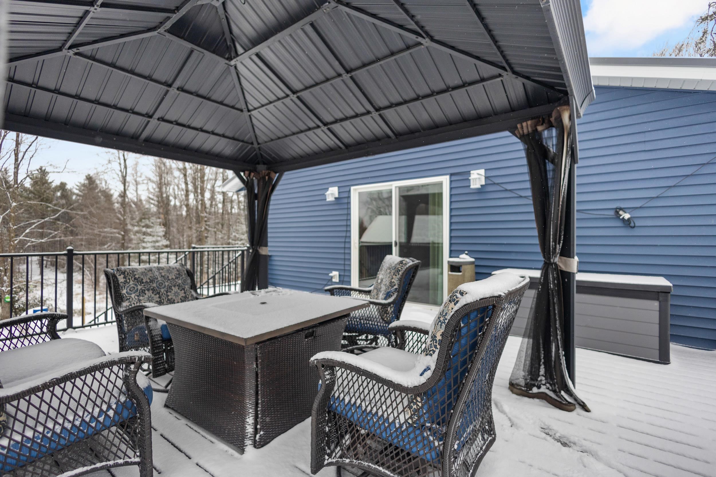 Refrigerator, Stove, Microwave, Dishwasher, Washer, Dryer, Car hoist,500 gallon LP tank, Antenna, Gazebo, Window treatments, Wooden shelving,Fire Pit.