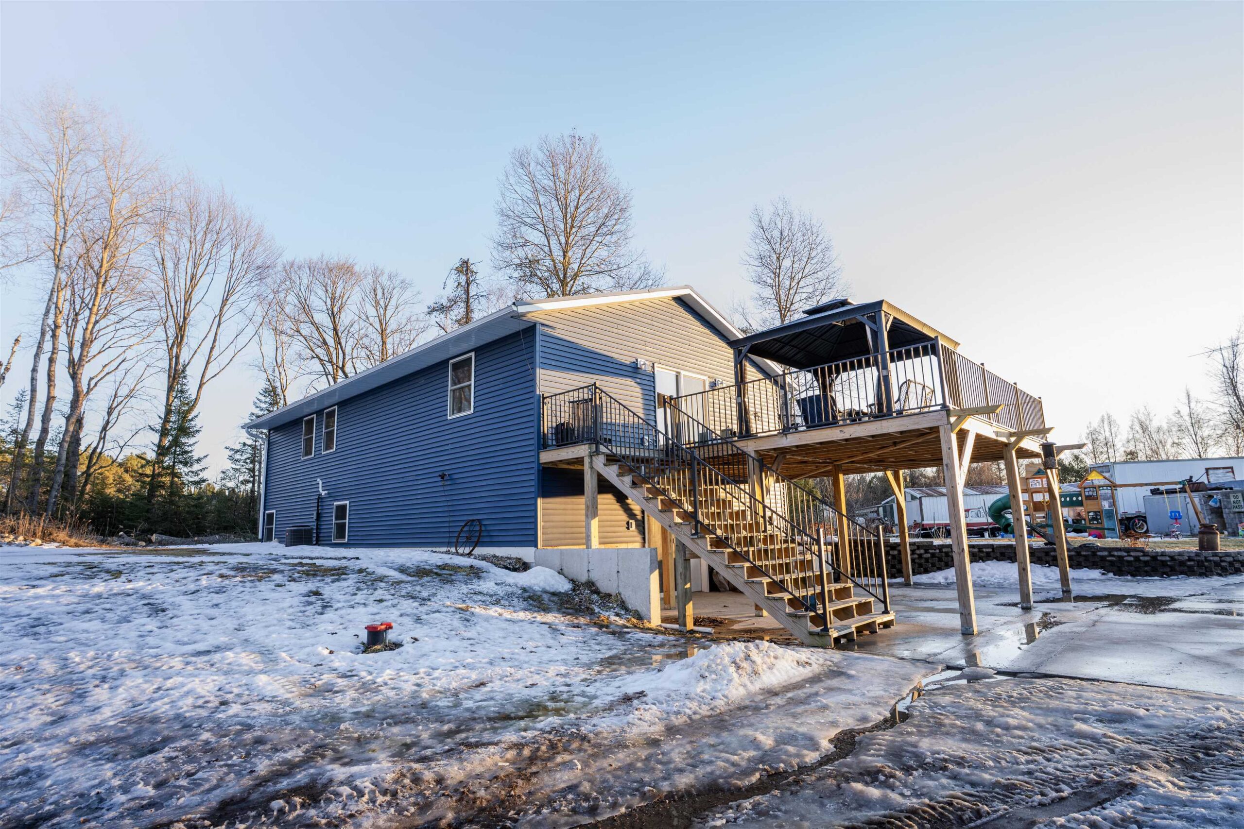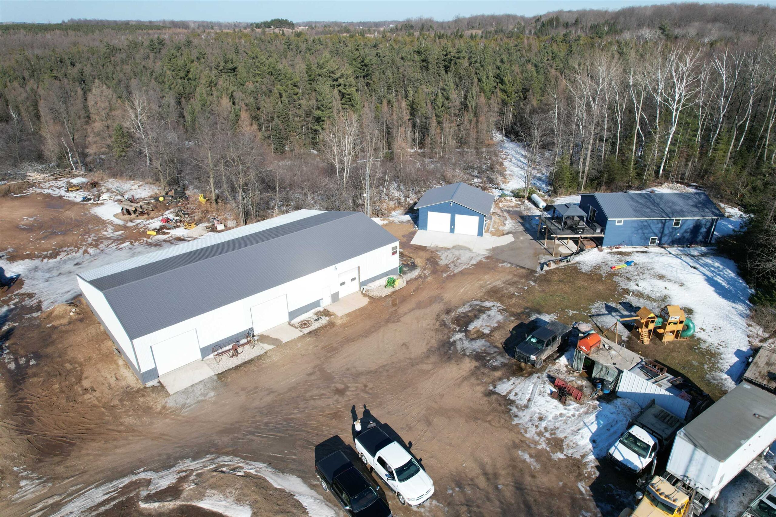 Surrounded by nearly 40 acres of wooded land ideal for hunting, this property offers space, privacy, and extensive upgrades already completed for you. The home features a walkout basement, in-floor heat, and a beautifully updated kitchen with new cabinets and appliances, all topped with a new steel roof for long-term durability. Step outside to enjoy the 20x20 deck, perfect for entertaining or quiet evenings taking in the natural setting. Storage and workspace abound with a brand-new 24x28 detached garage and an impressive 40x90 pole barn, complete with an additional 20x90 cold storage area off the back, ideal for equipment, toys, or hobby use. This property blends modern improvements with expansive acreage. Parcel 026282801333 and 026282801333A being sold together.