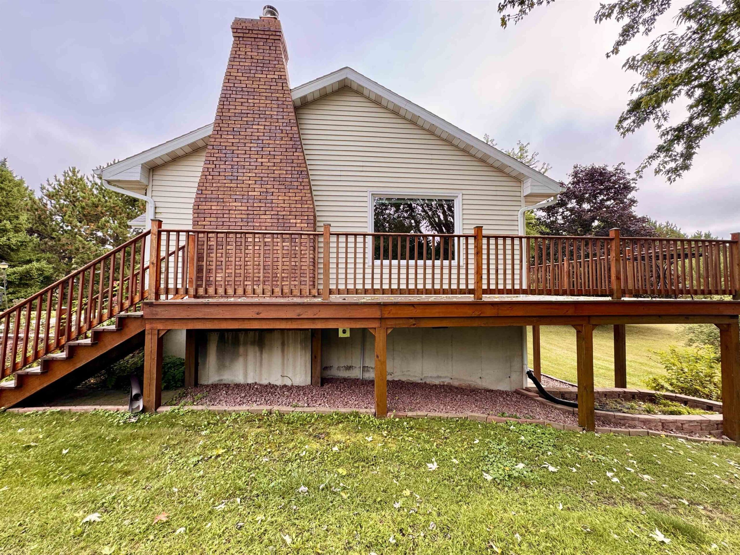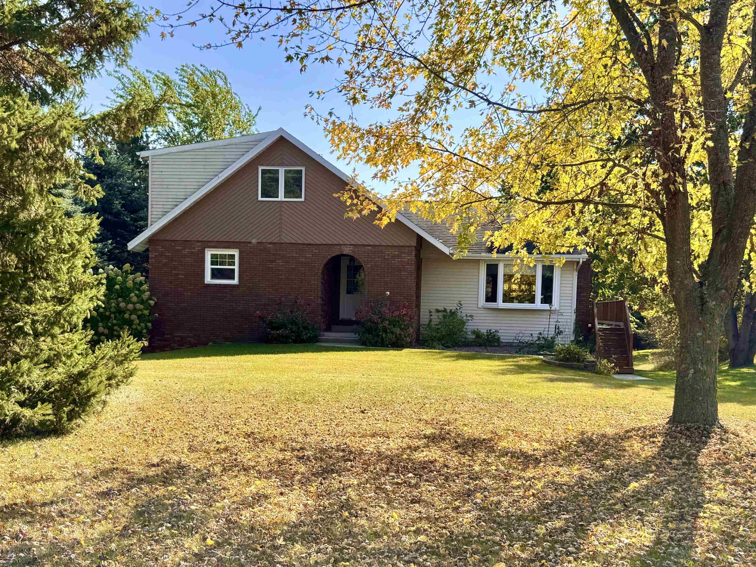 Welcome to this charming 4-bedroom, 2-bath, 1.5-story ranch nestled on 1.9 acres in the sought-after Pulaski School District! Surrounded by mature trees for privacy and highlighted with two fruit trees, this beautifully landscaped property features a spacious deck perfect for relaxing or entertaining. Inside, you’ll find an inviting layout with a cozy wood fireplace and a kitchen offering ample cabinet space. The finished walk-out lower level includes a wet bar, rec area, family room, laundry, and storage. With two garages, a storage shed, easy highway access, and walking distance to a gas station, this home combines peaceful country living with everyday convenience!